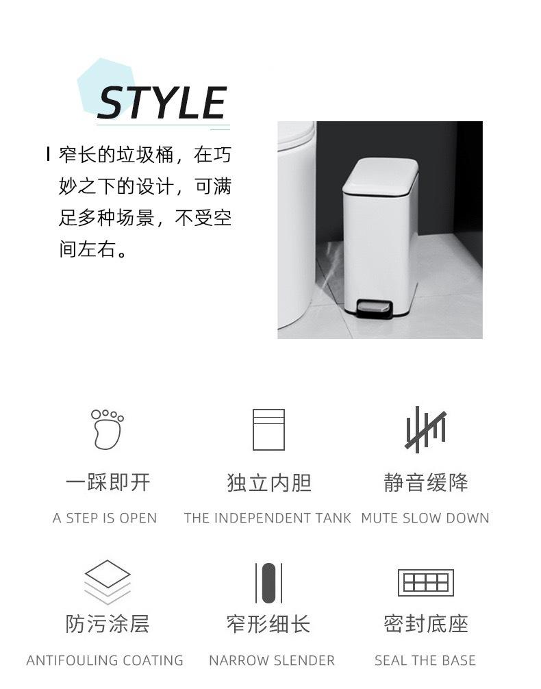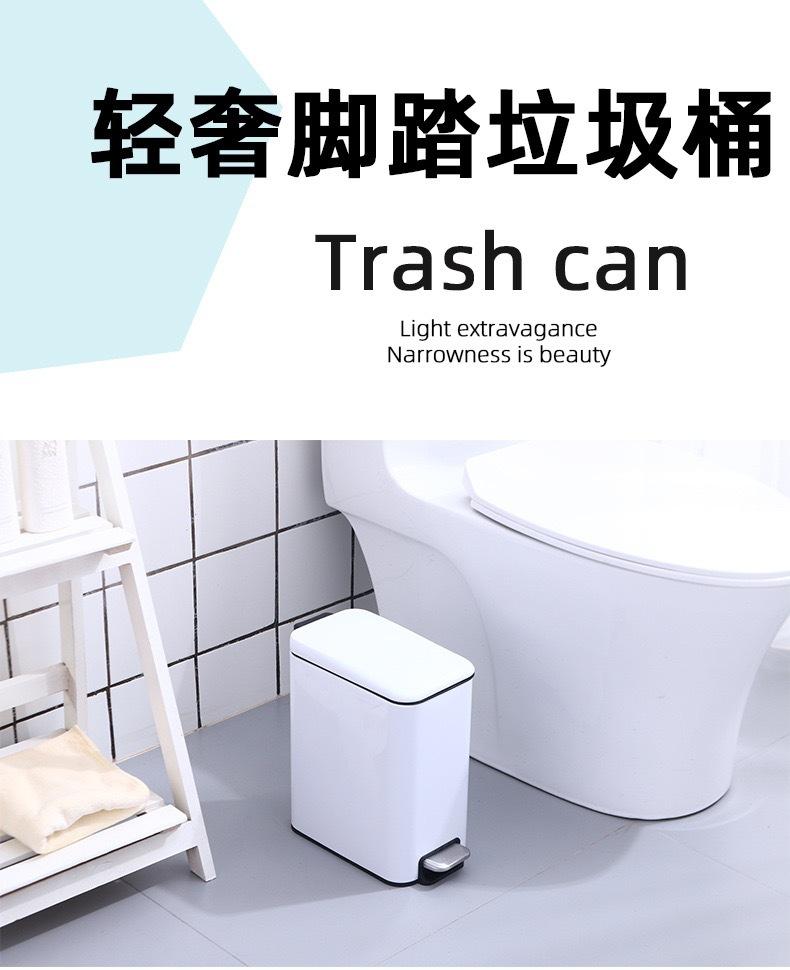 Bote de Basura Cuadrado de Acero Inoxidable Operado con el Pie Hotel Inodoro Baño con Tapa Ranura Estrecha Tubo de Almacenamiento Ranura de Cierre Lento Comercial