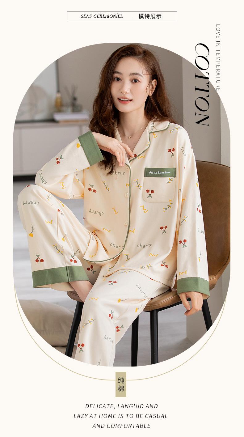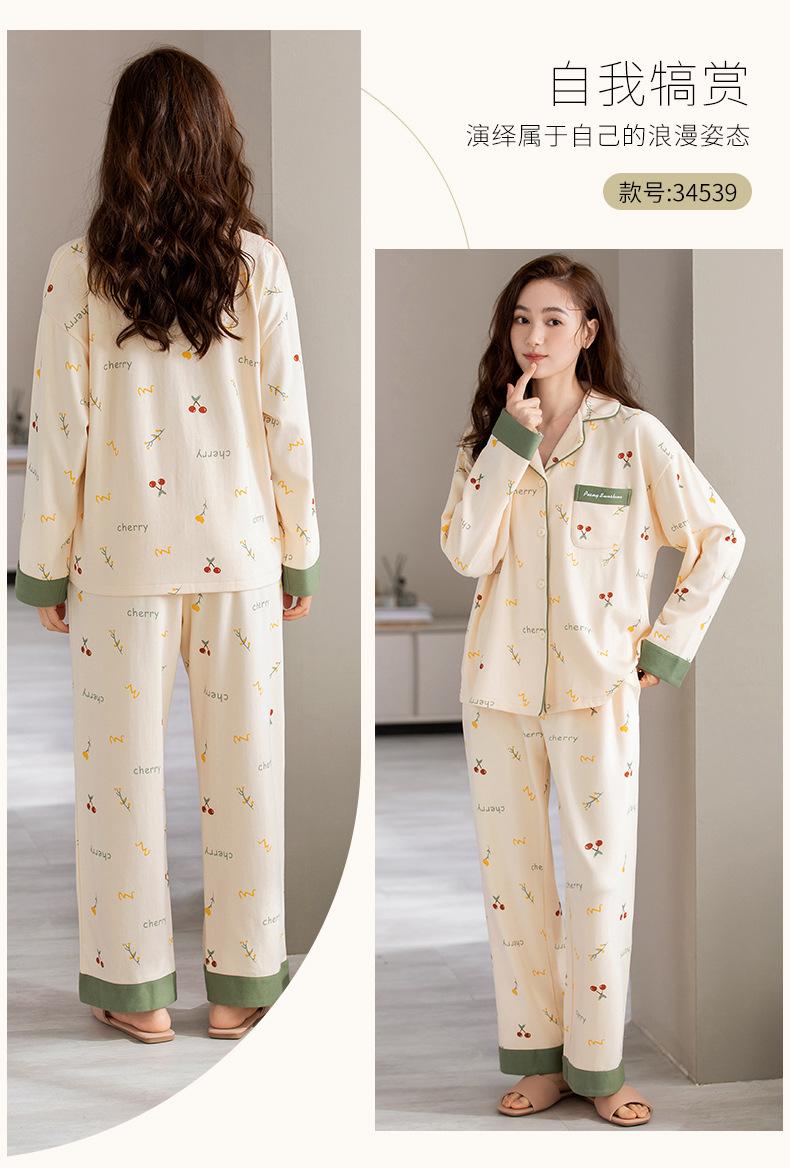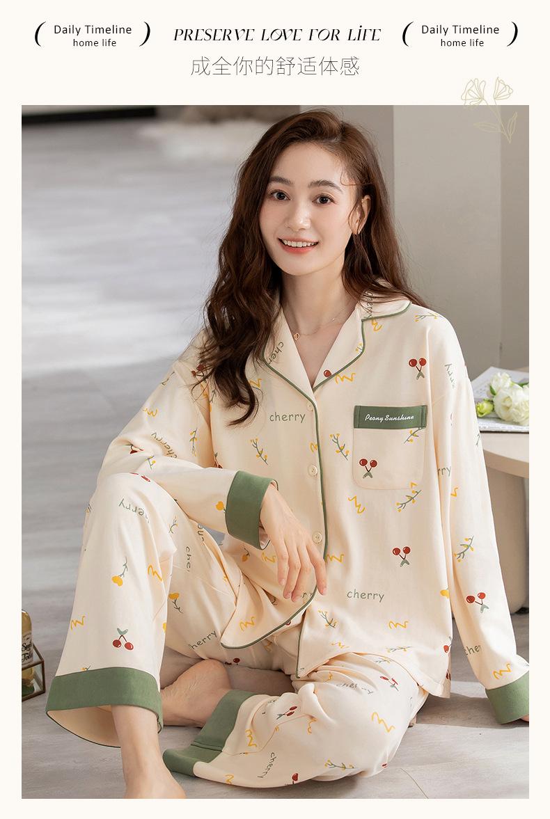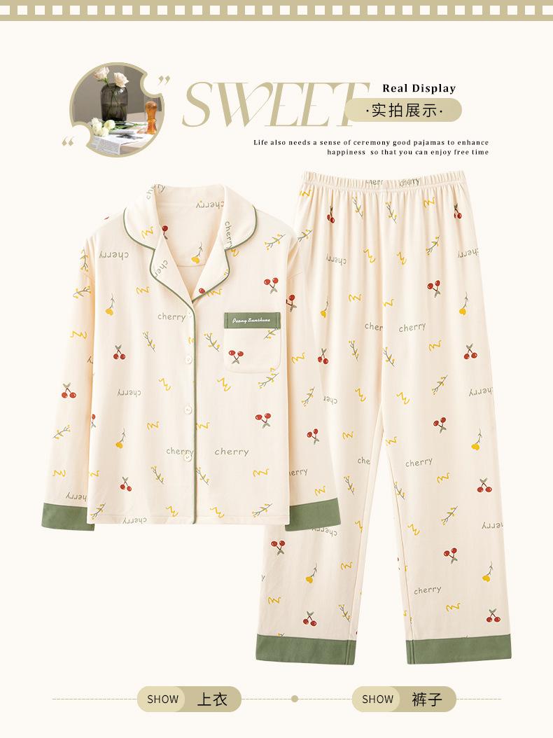 Pijama para Mujer Primavera y Otoño Algodón Manga Larga Pantalones Traje de Dos Piezas Dulce Conjunto de Dibujos Animados Ropa de Casa para Mujer Explosiones Recomendado