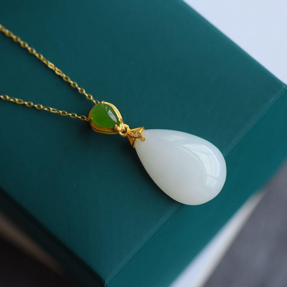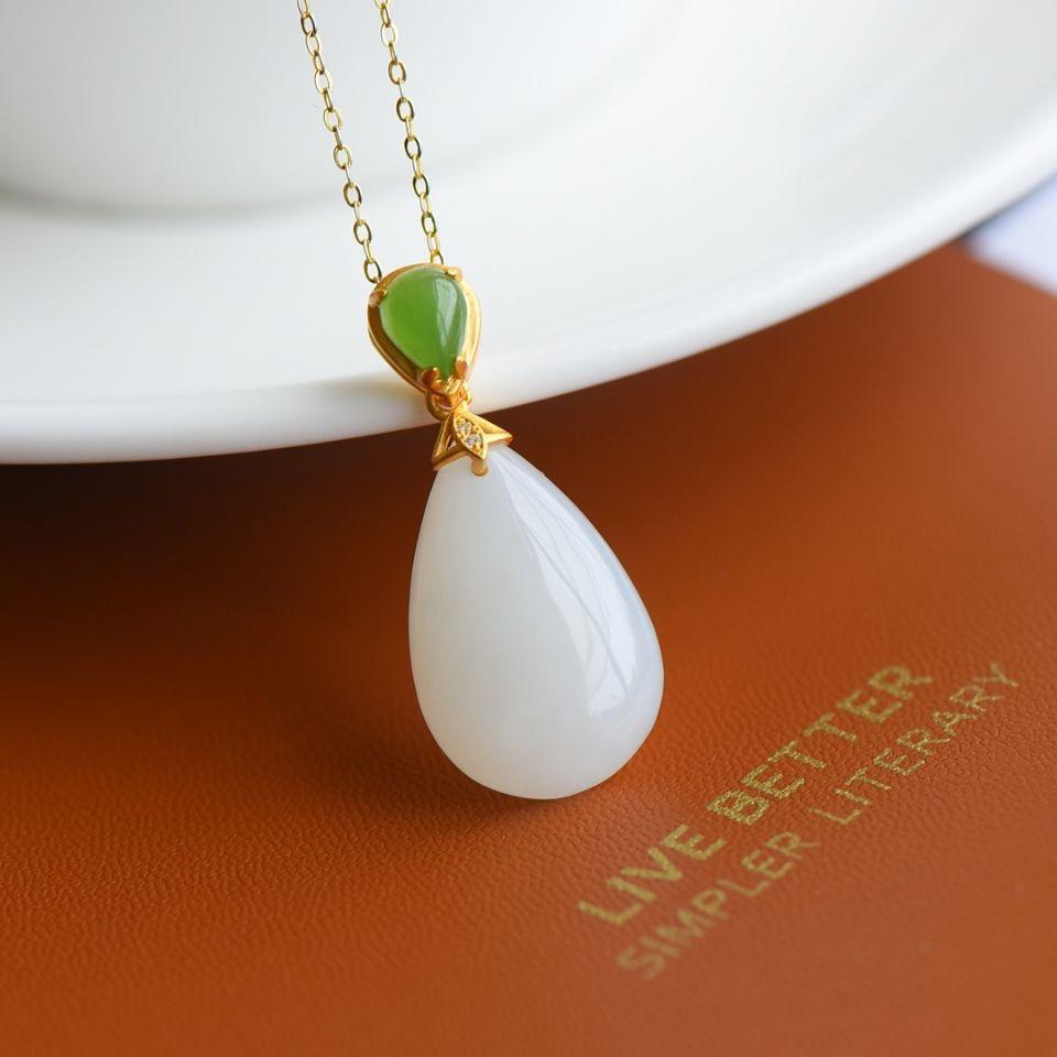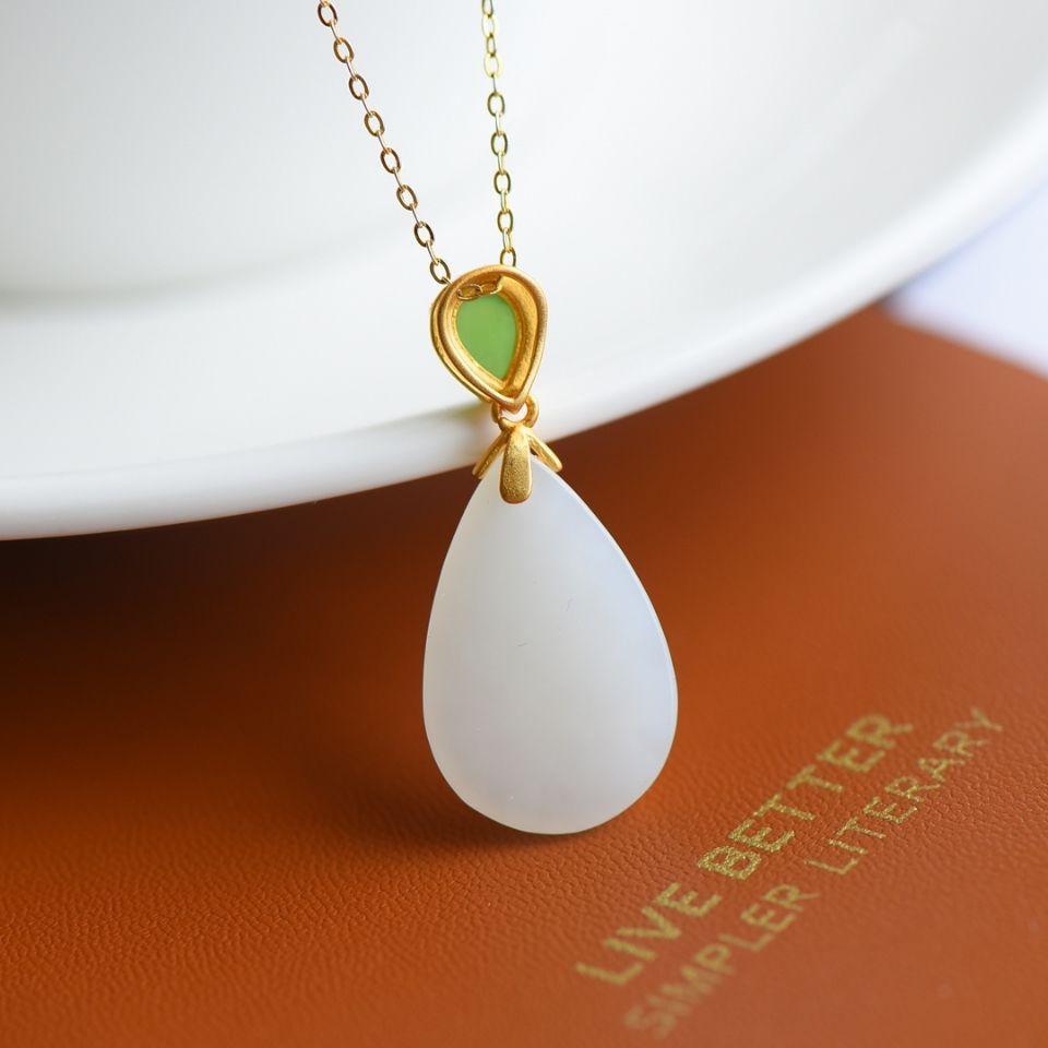 Compra Plata S925 con incrustaciones de Jaspe Hetian natural, diseño de collar con colgante elegante y de personalidad a la moda, cadena dulce para clavícula para damas al por mayor en Joom.pro