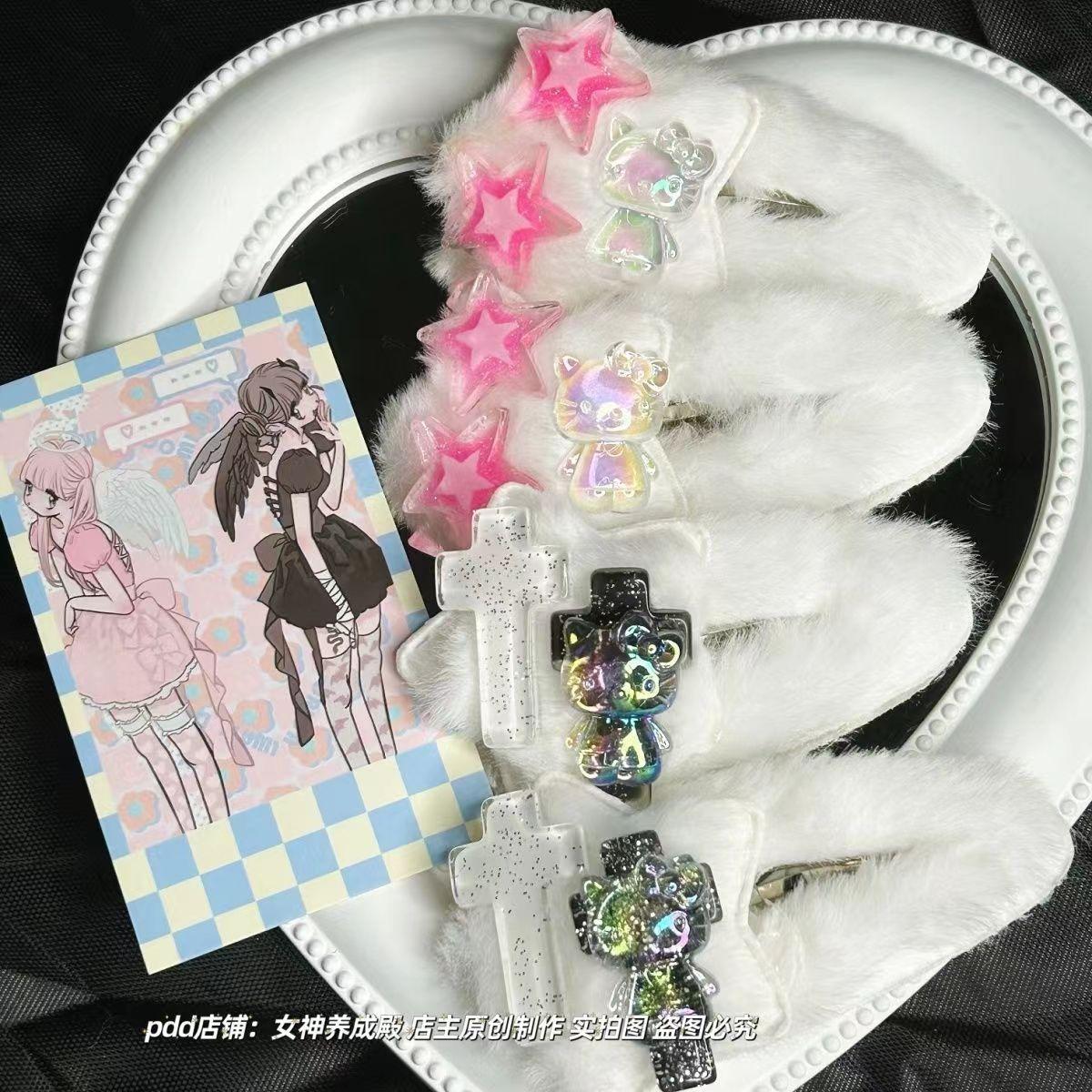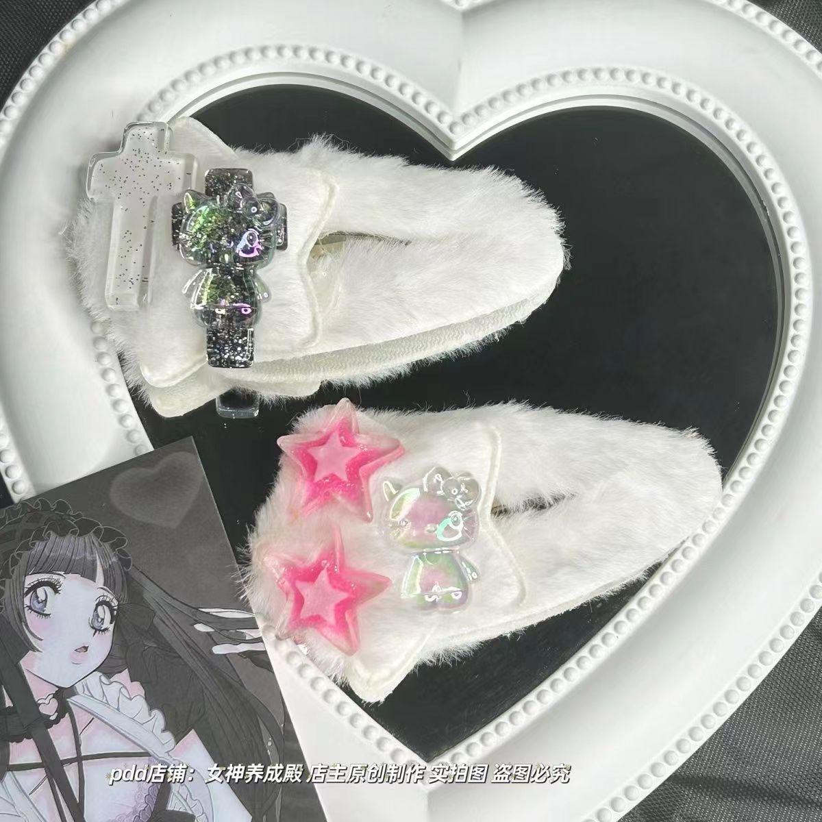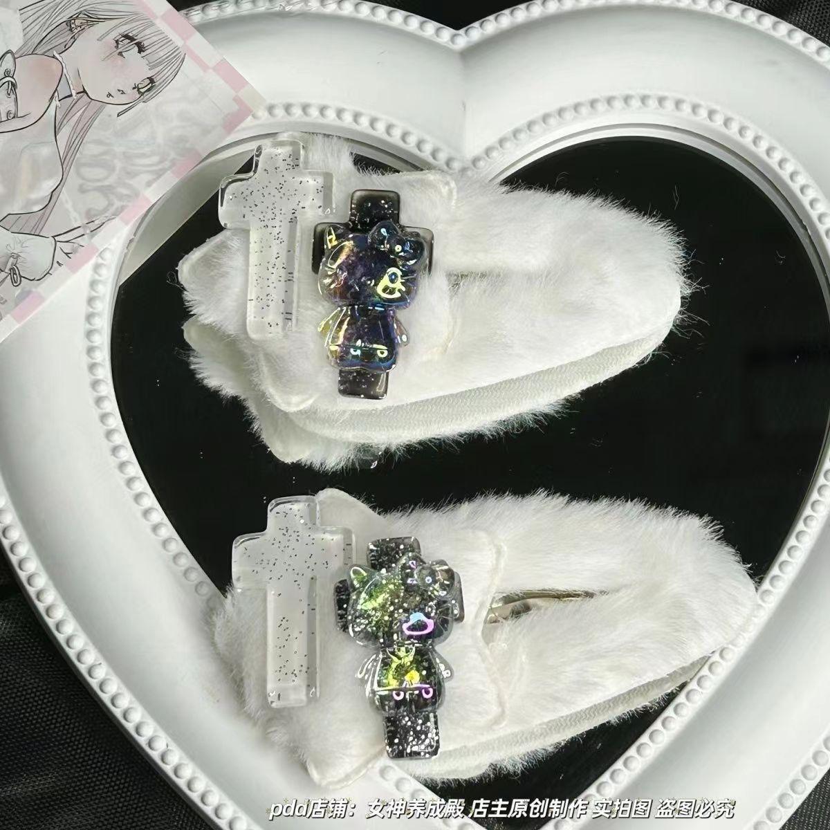 Xiaohongshu Kt Mismo Estilo Y2K Cruz Felpa Pinza para el Cabello Versátil Venta al por Mayor Estilo Dulce Cool Flequillo y Cabello Suelto