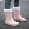 Botas de lluvia cálidas de invierno Botas de lluvia de media caña para mujer cuatro estaciones antideslizantes impermeables zapatos de plástico zapatos de algodón con zapatos de agua de algodón