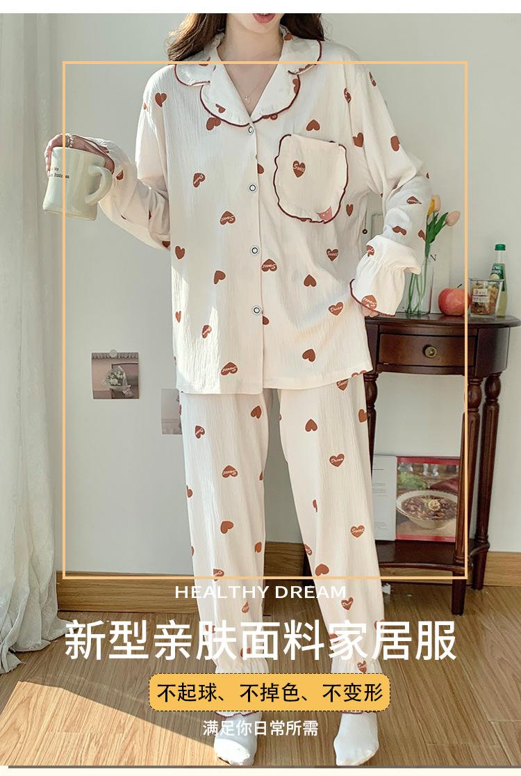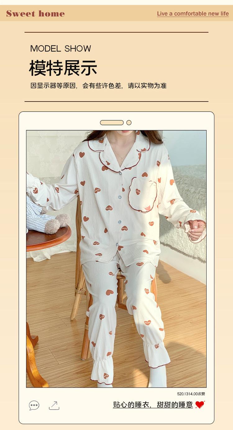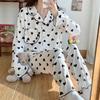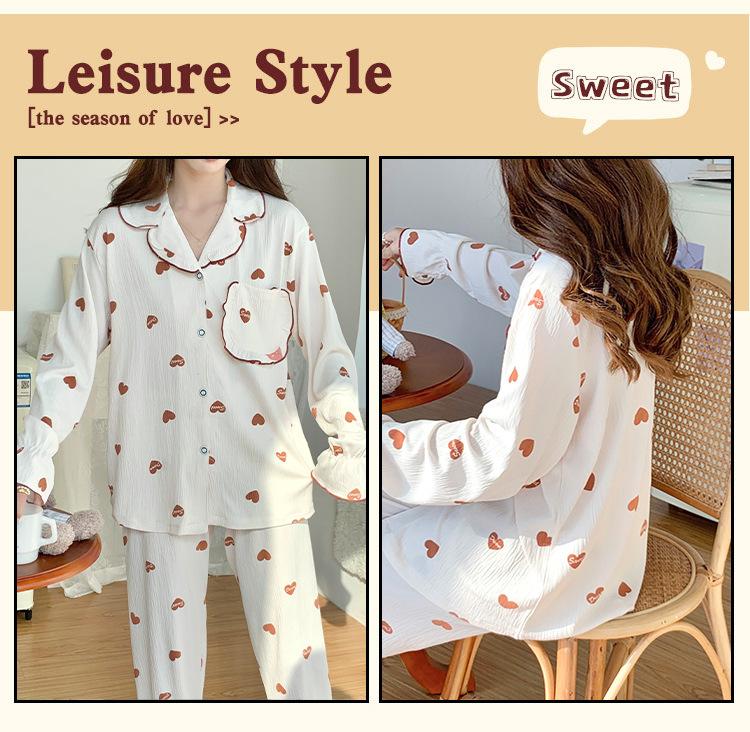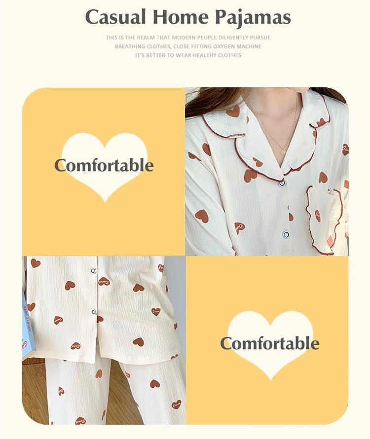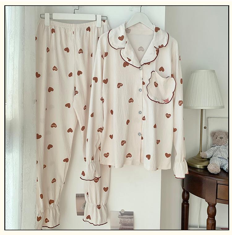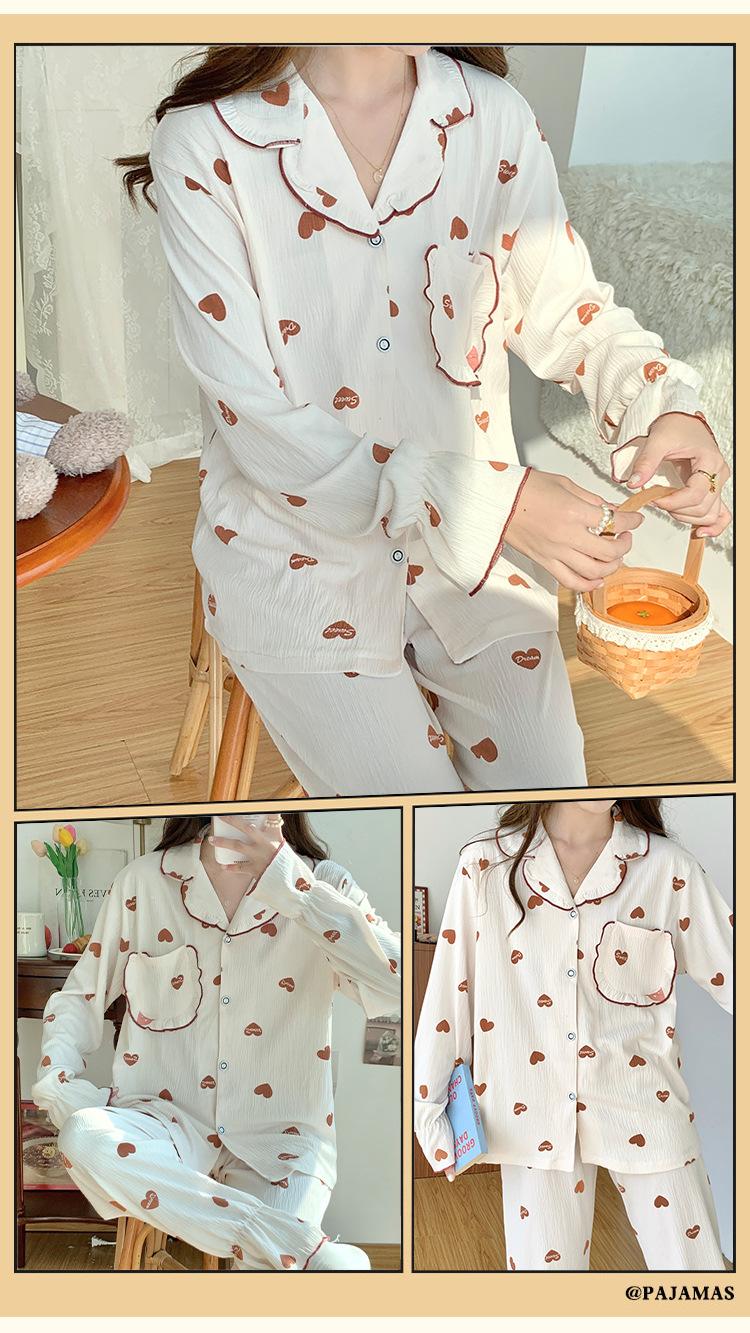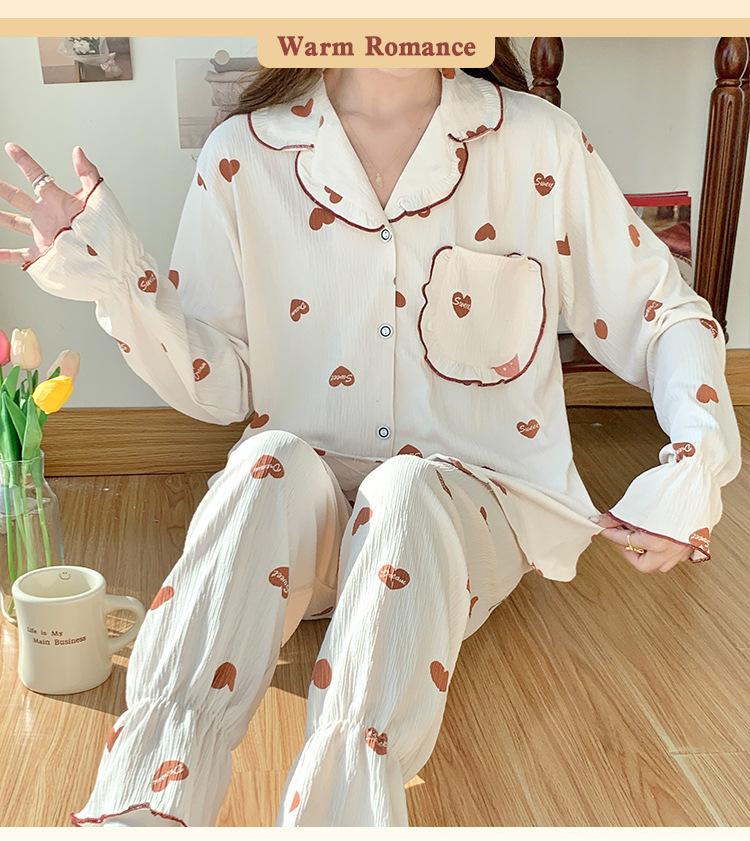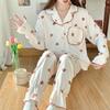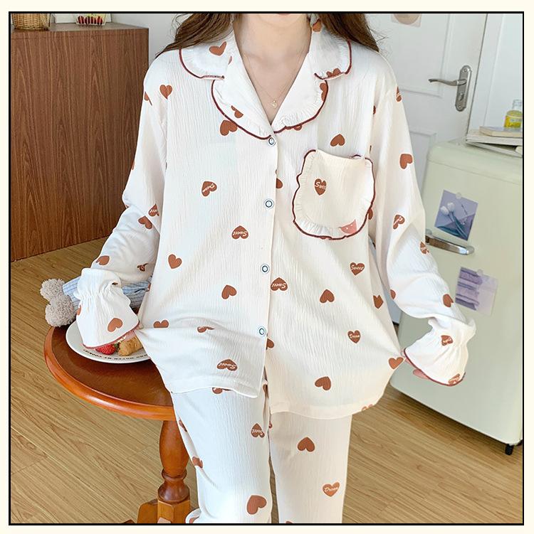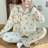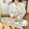 Pijamas nuevos de primavera y otoño para mujer, bonito cárdigan de solapa, manga larga, fino, estilo princesa, conjunto de ropa para el hogar