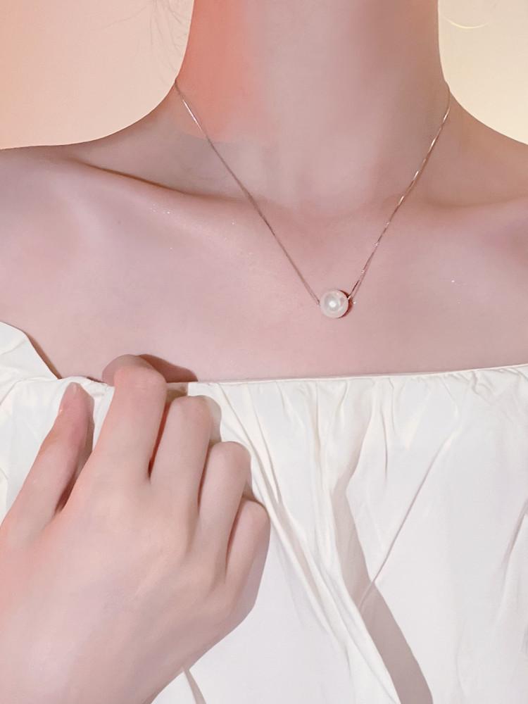 Collar de plata de ley s925 con colgante de perla única para mujer, cadena de clavícula sencilla de alta calidad que combina con todo, accesorios con temperamento