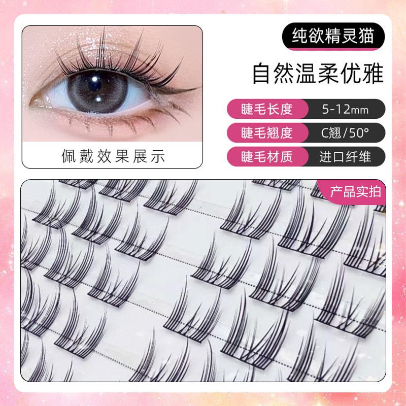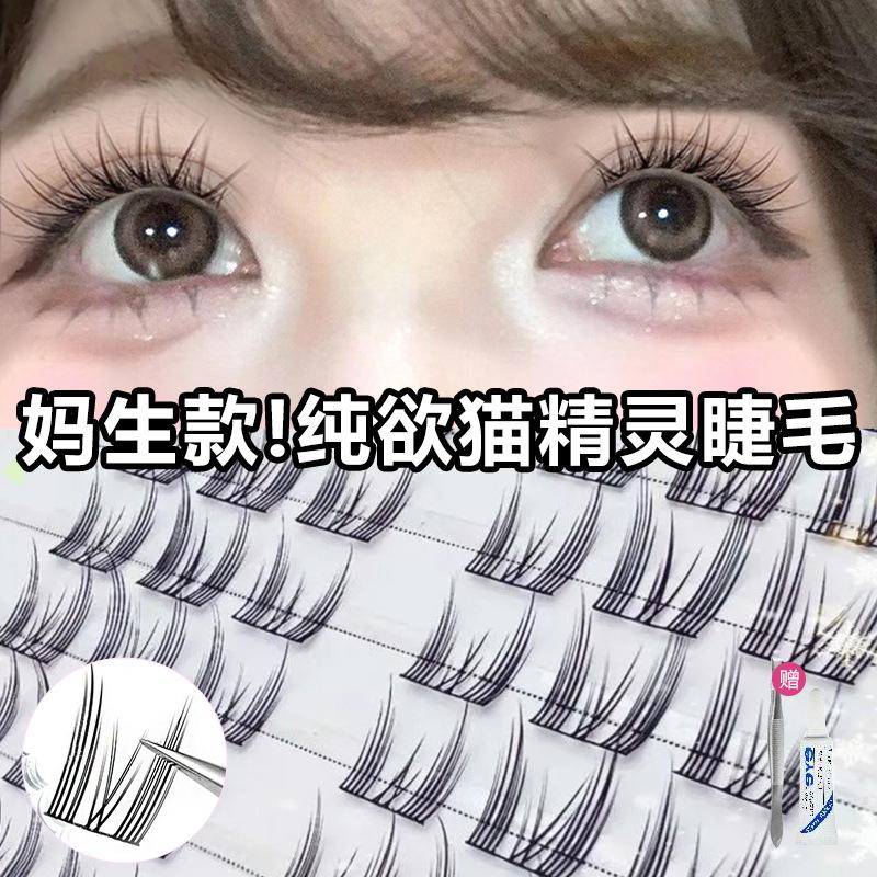 Pestañas postizas Pure Desire Cat Genie para mujer, naturales, orejas de gato superlargas, ojos eléctricos de dibujos animados, pestañas individuales segmentadas para principiantes.