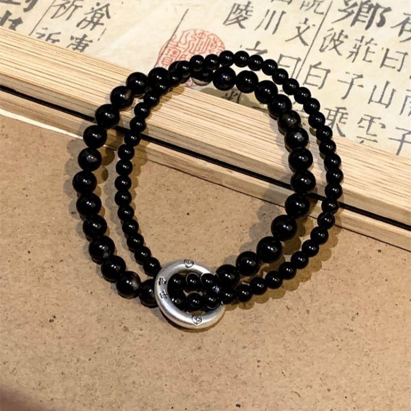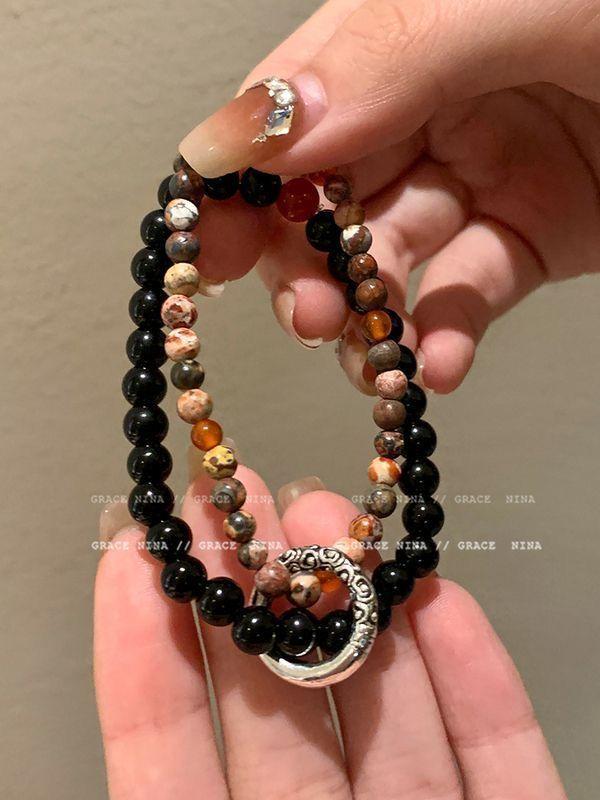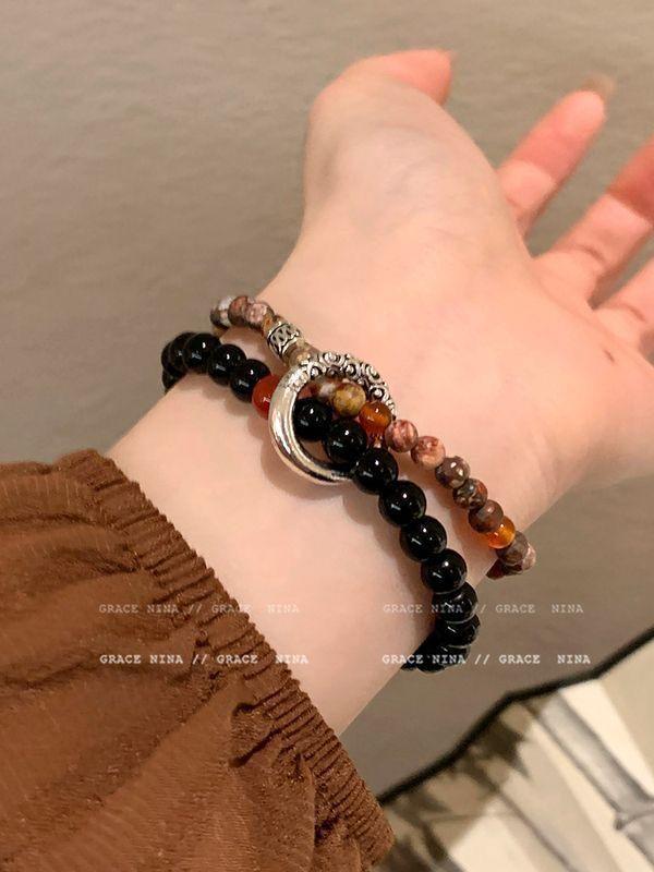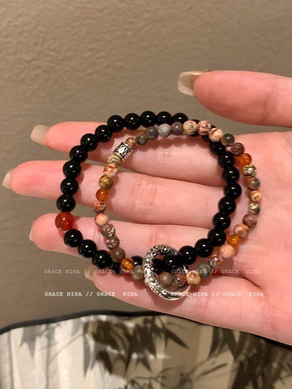 Pulsera China de Doble Color Guofeng Hebilla Ping An con Cuentas Mujer 2024 Nueva Pulsera de Piedra Natural Joyería de Moda para Pareja