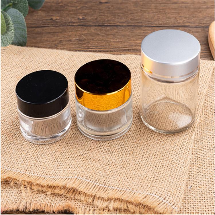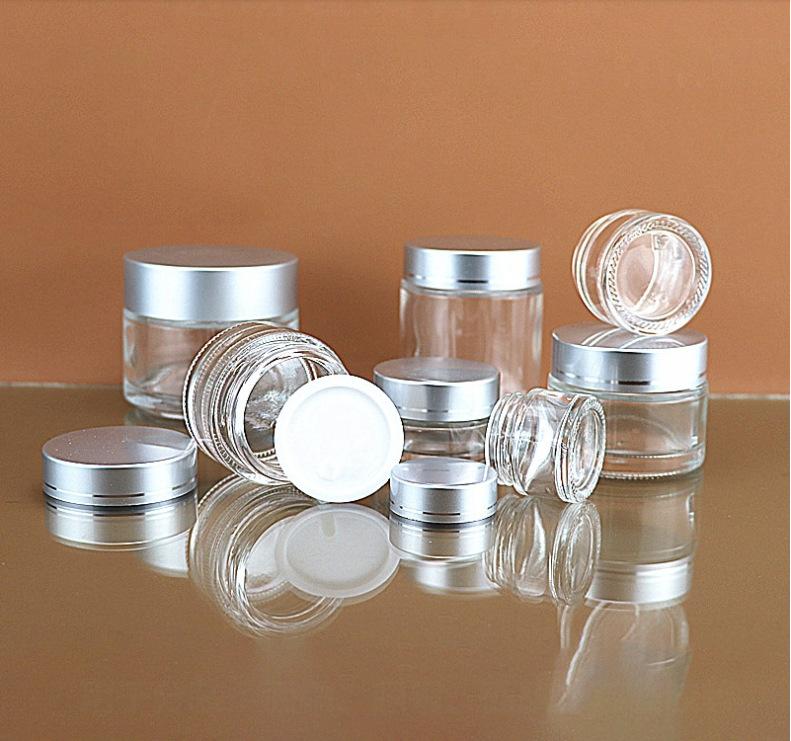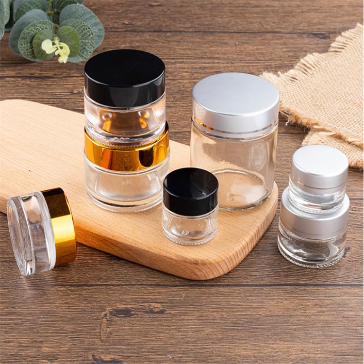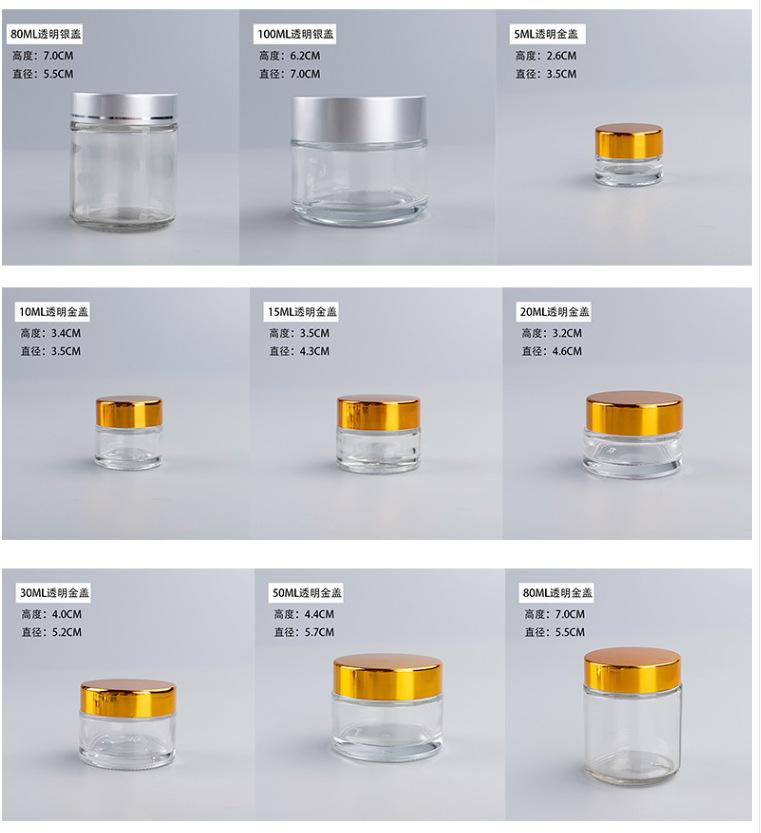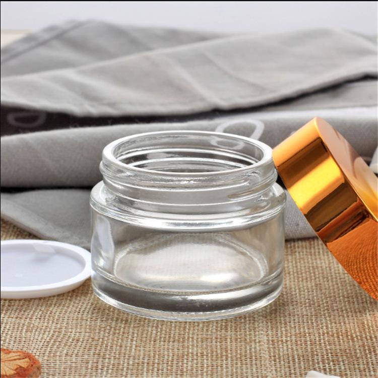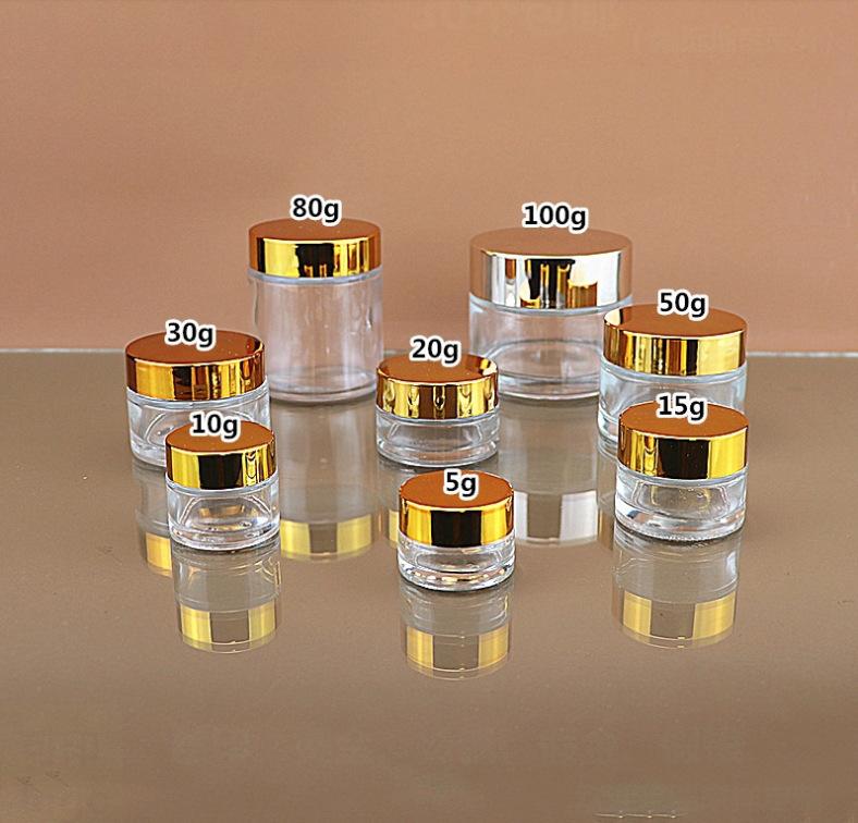 Botella de crema transparente, botella de crema facial de vidrio, tapa dorada, tapa plateada, productos portátiles para el cuidado de la piel, subbotella, muestra cosmética, botella vacía