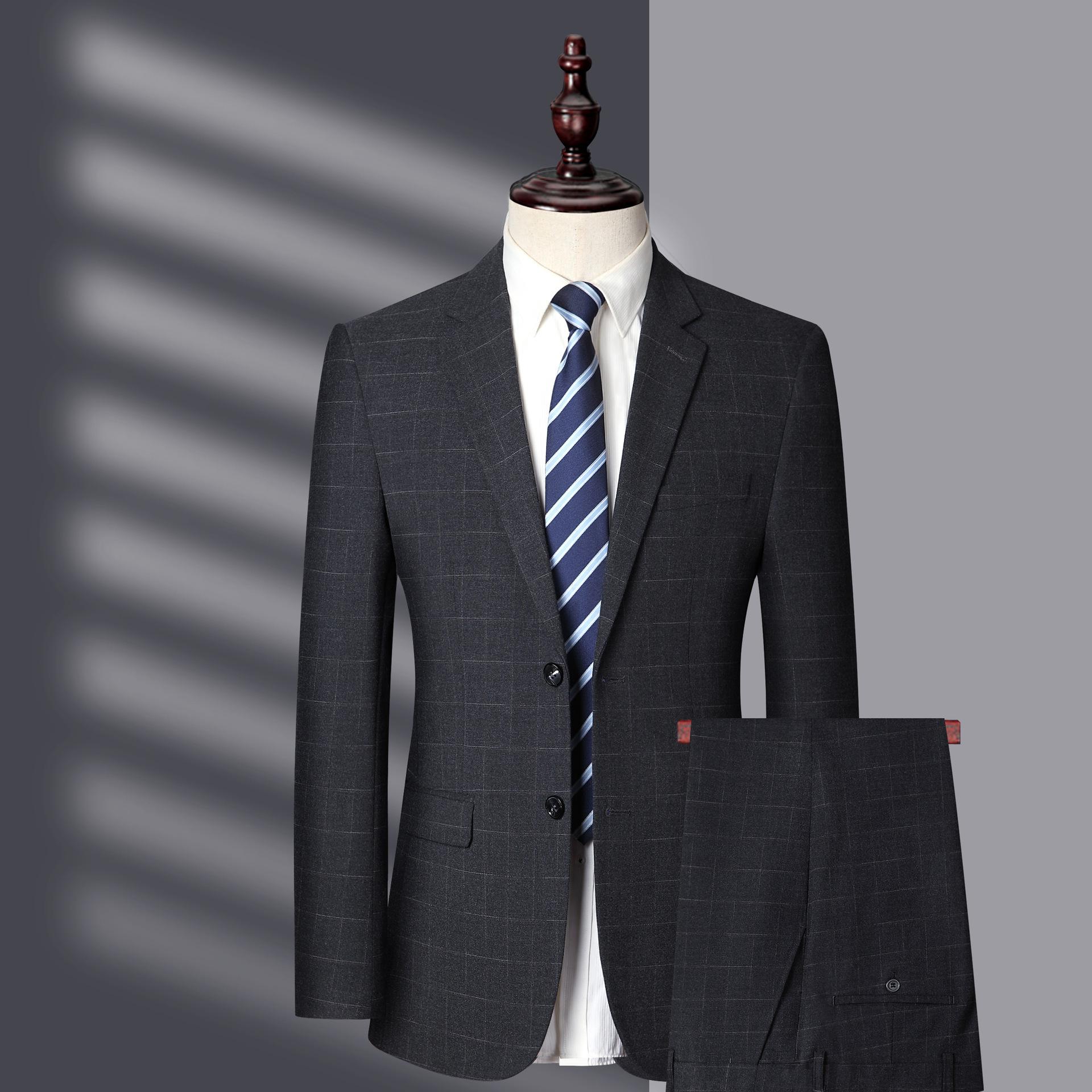 Traje de primavera y otoño para hombre, traje formal de negocios de dos piezas, chaqueta de traje informal ajustada, pantalones de traje rectos para hombre.