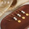 Collar de Cadena de Bolas Redondas de Moda para Hombre Hip Hop Moderno Marca Números Romanos Arcoíris Acero Titanio Colgante Cuadrado Cadena de Lana