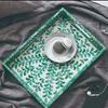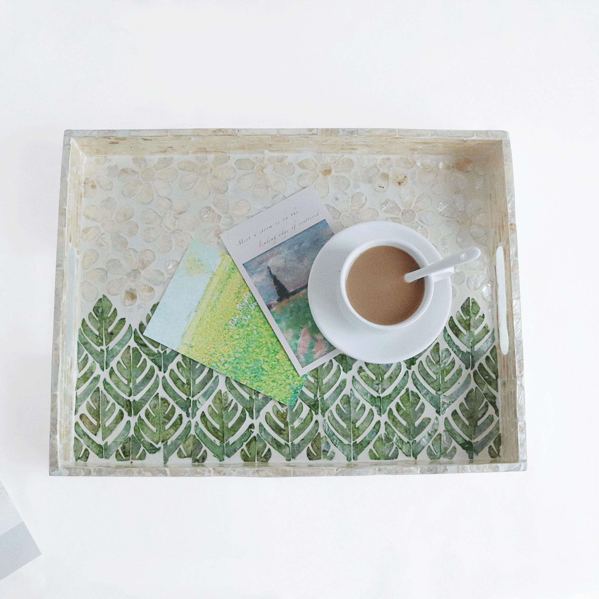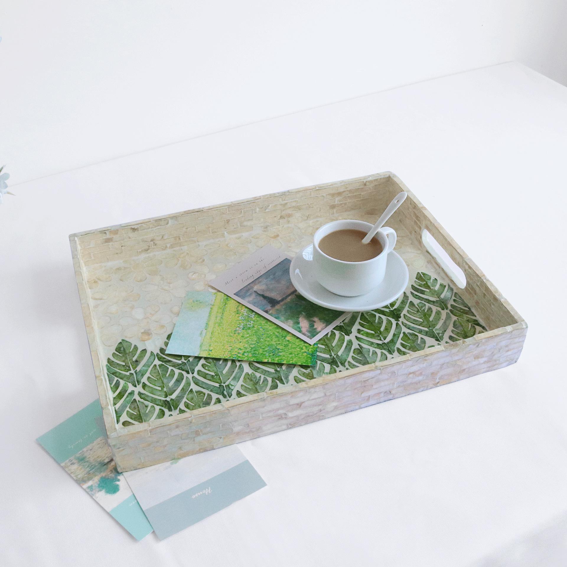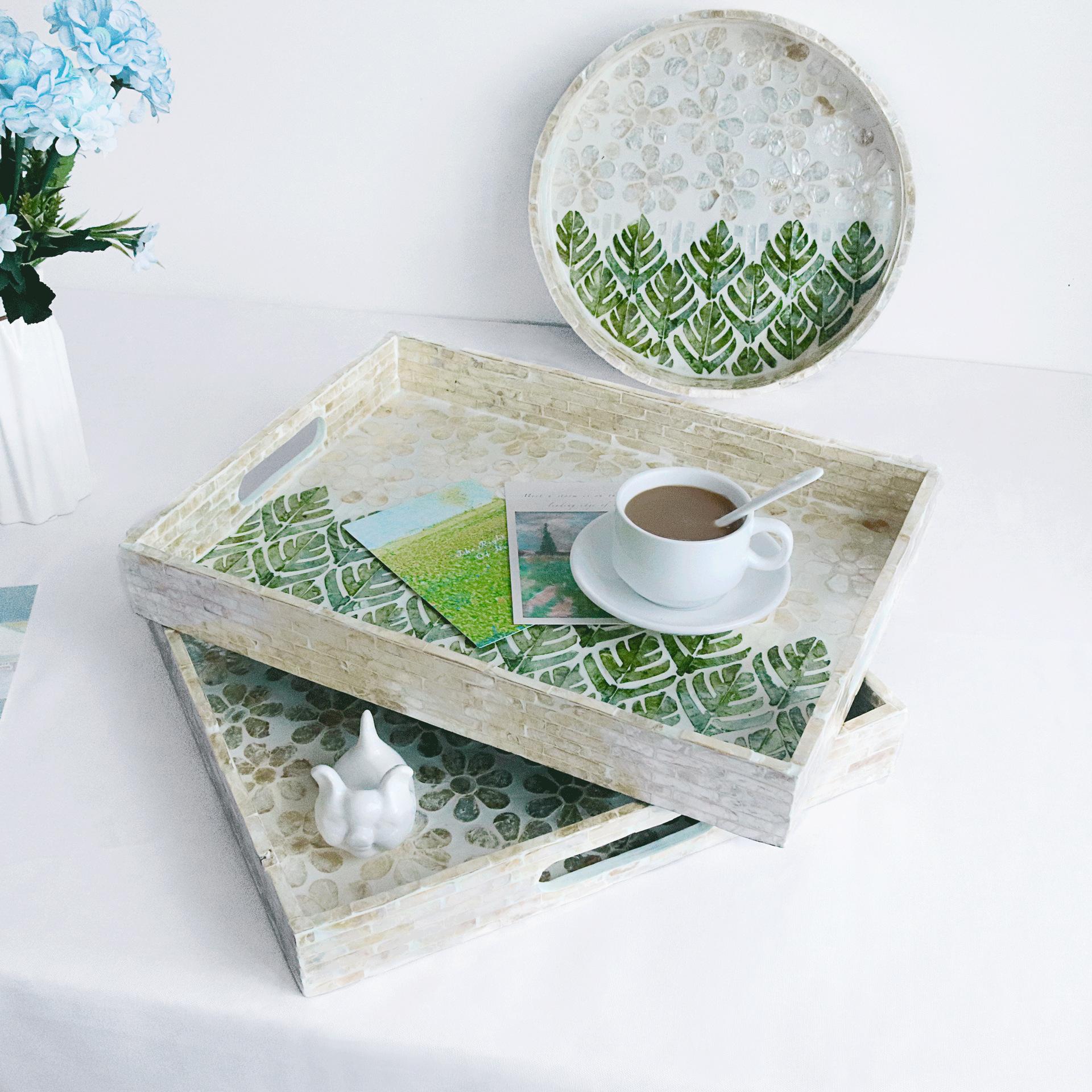 Bandeja de almacenamiento de conchas coloridas de estilo nórdico, bandeja de té cuadrada para el hogar, bandeja de almacenamiento de madera para escritorio, modelo de habitación