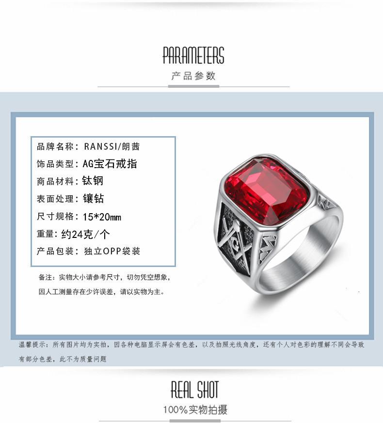 Tendencia Creativa Europeo y Americano Estilo Británico Joyería de Moda Anillo Rubí AG Accesorios de Acero de Titanio Masculinos para Fotografía Urbana Hip Hop