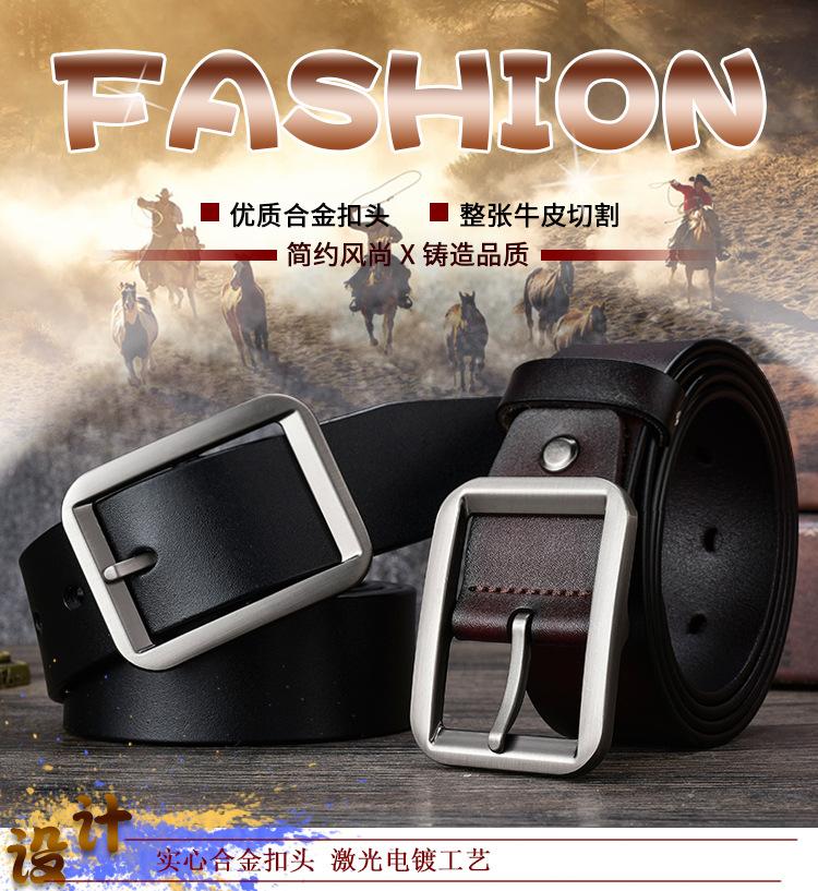 Cinturón de cuero con hebilla de alfiler para hombre, oferta transfronteriza, cinturón de piel de vaca con personalidad, fabricante de cinturones Joker al por mayor.