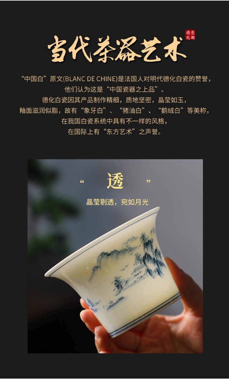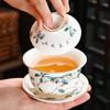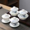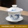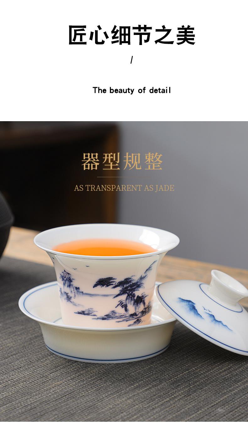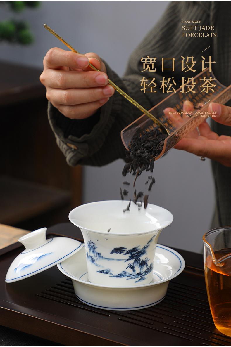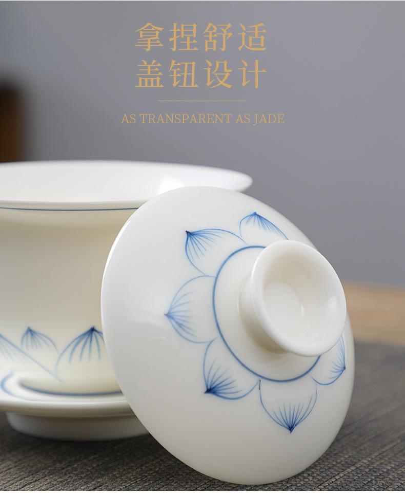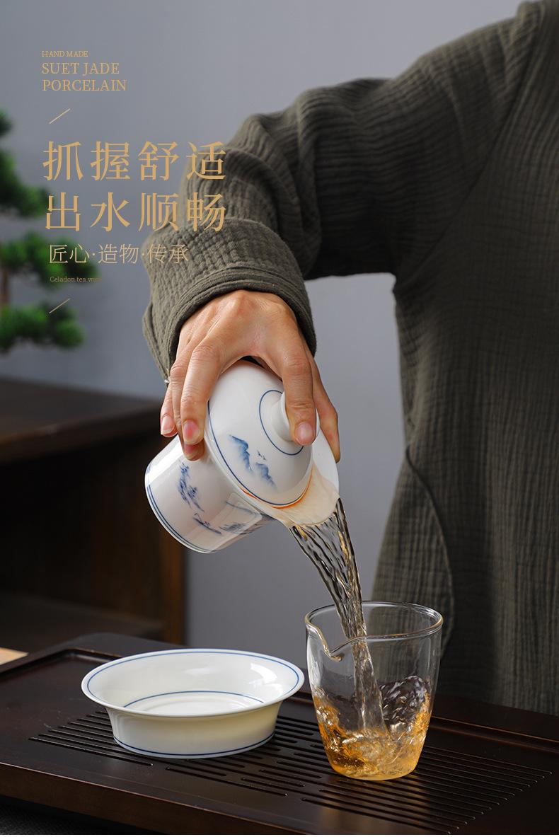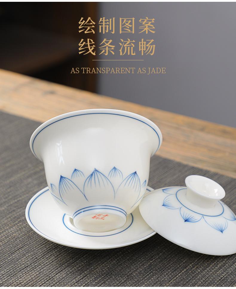 Jade graso de oveja pintado a mano azul y blanco cubierta Tazón sancai juego de té kung fu pintado a mano ceramica tetera tazón de té grande tazón de té individual
