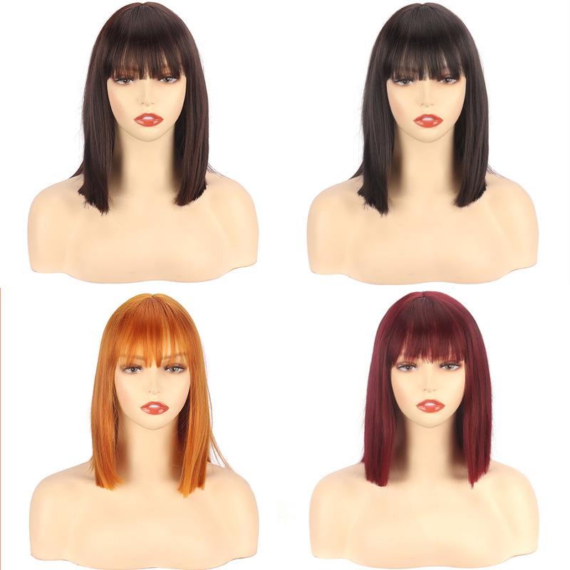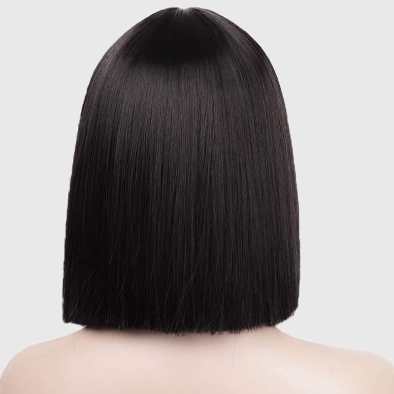 Peluca europea y americana transfronteriza de Xuchang para mujer, cabello corto lacio con flequillo recto y pulcro, corte bobo, talla única, peluca de fibra química, tocado, pelucas
