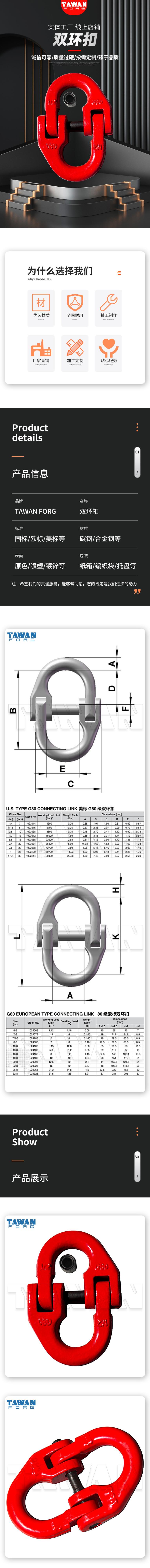 Suministro de fábrica 5.4t hebilla de cadena de doble anillo unión de cadena de elevación 80 hebilla de mariposa anillo de conexión de alta resistencia