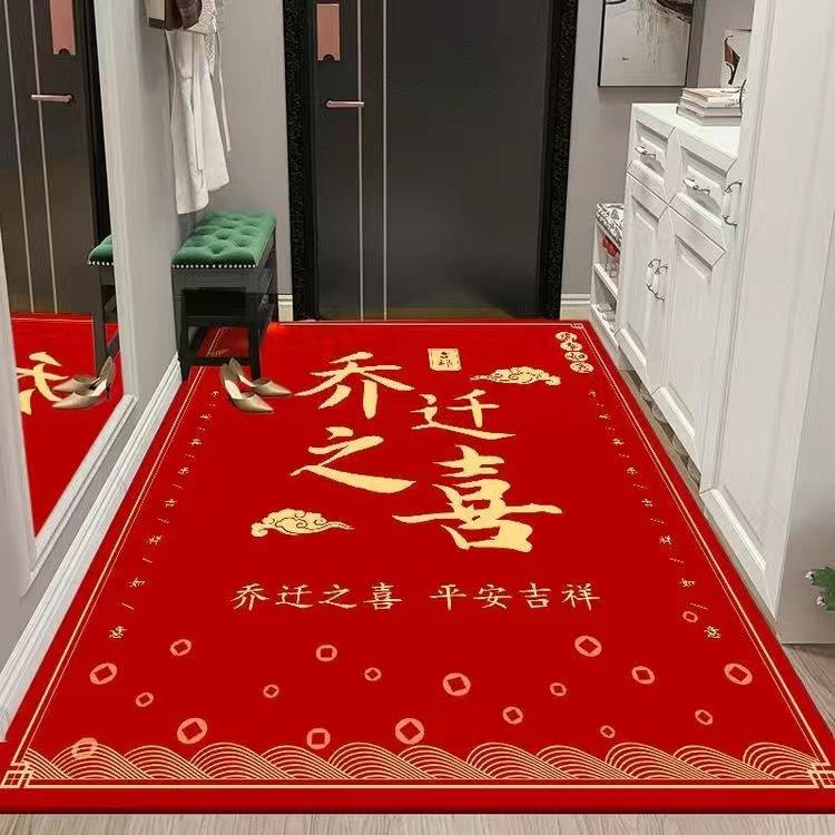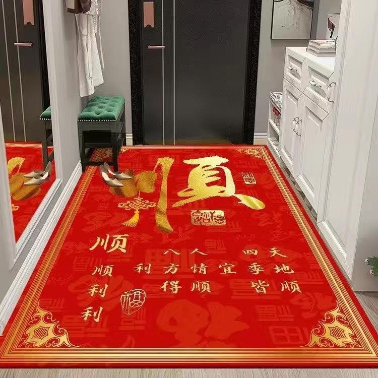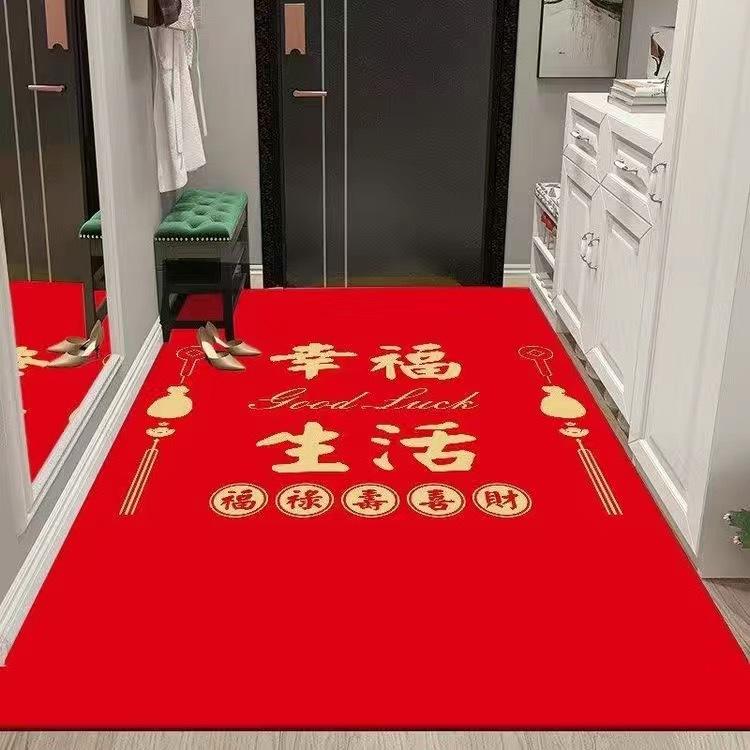 Felpudo para puerta de entrada, antideslizante, rojo, estilo chino, festivo, para el hogar