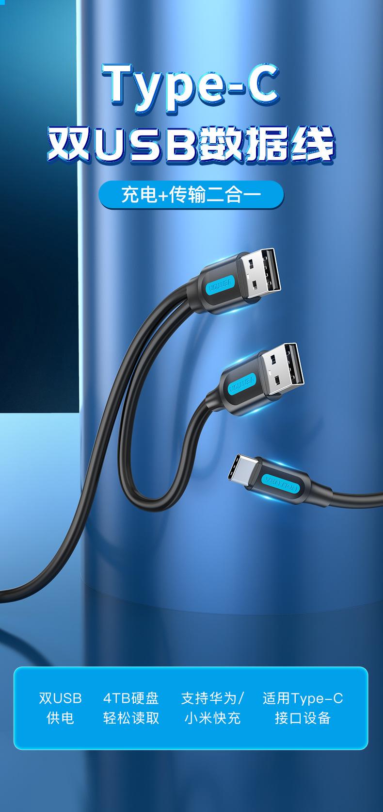 Cable de Datos para Disco Duro Móvil Weixun tipo-c tpc Carga para Teléfono Android Doble Cabezal usb-c Uno-Dos Externo 3a