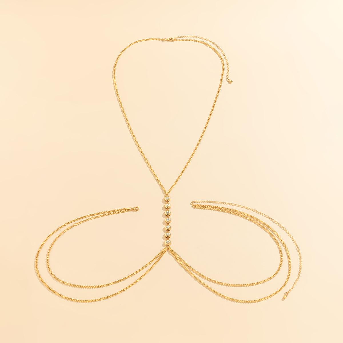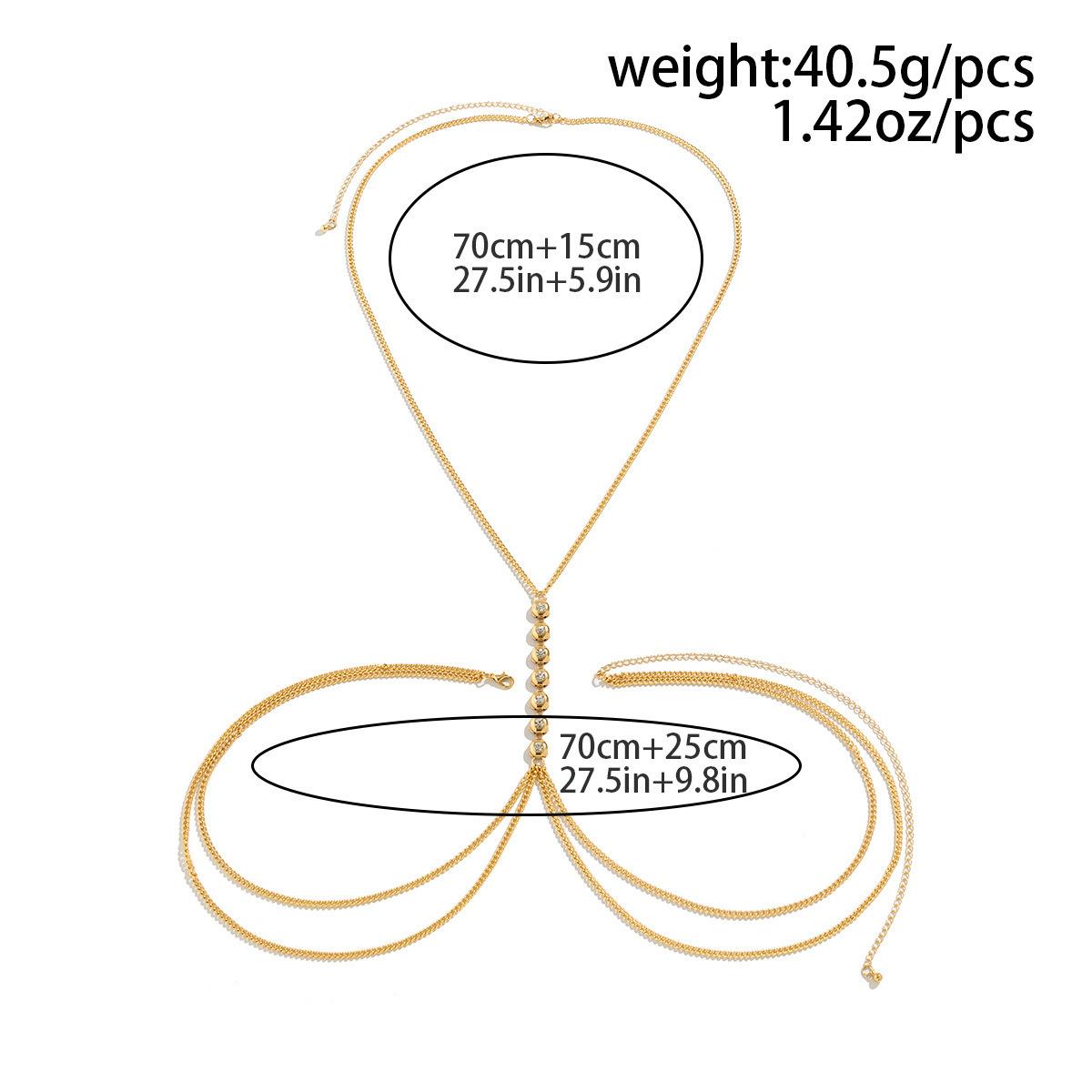 Cadena corporal de joyería europea y americana para mujer, cadena de metal sexy transfronteriza con diamantes, cadena para el pecho del bikini, cadena corporal
