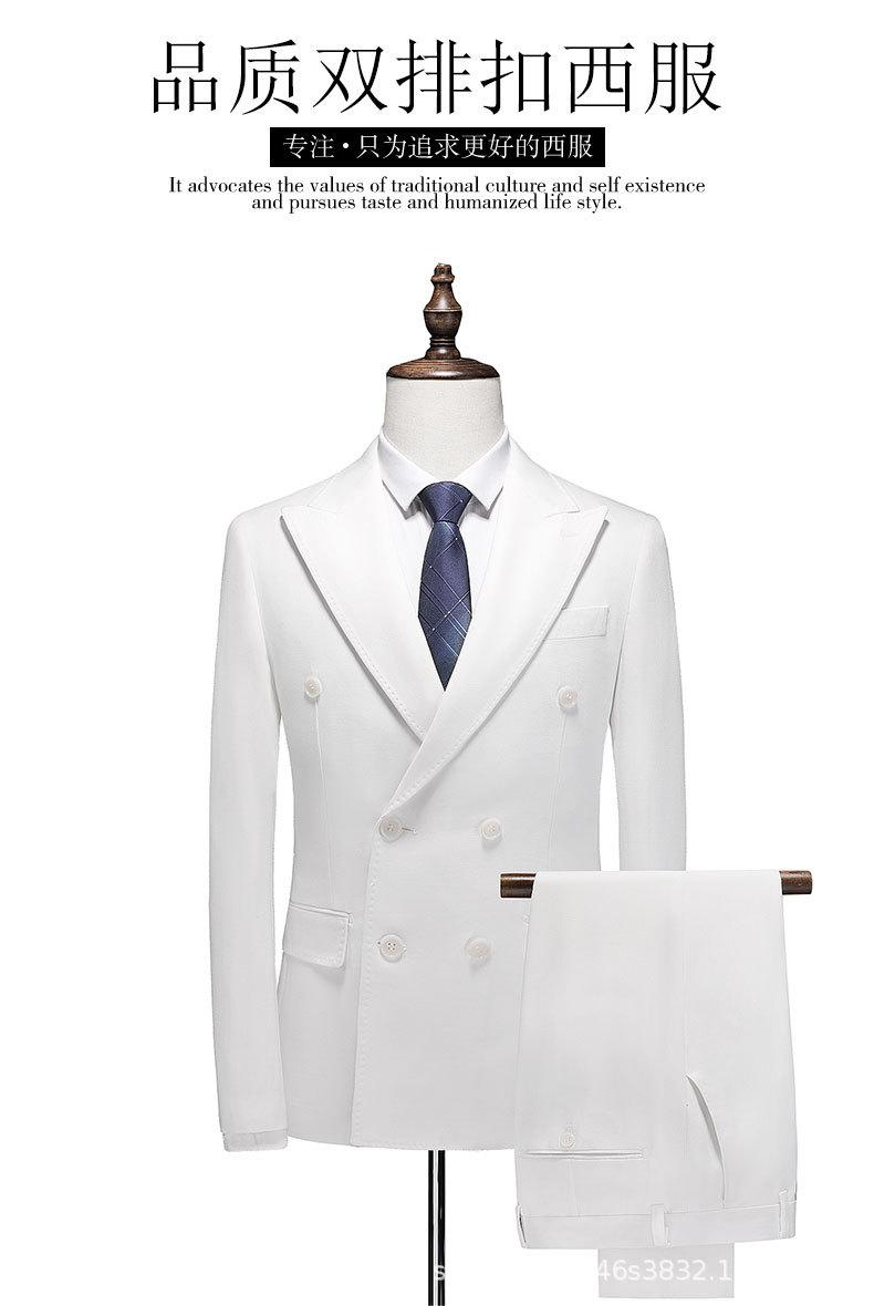 Traje de hombre, traje de tres piezas, británico, cruzado, blanco liso, coreano, ajustado, informal, de negocios, 2211