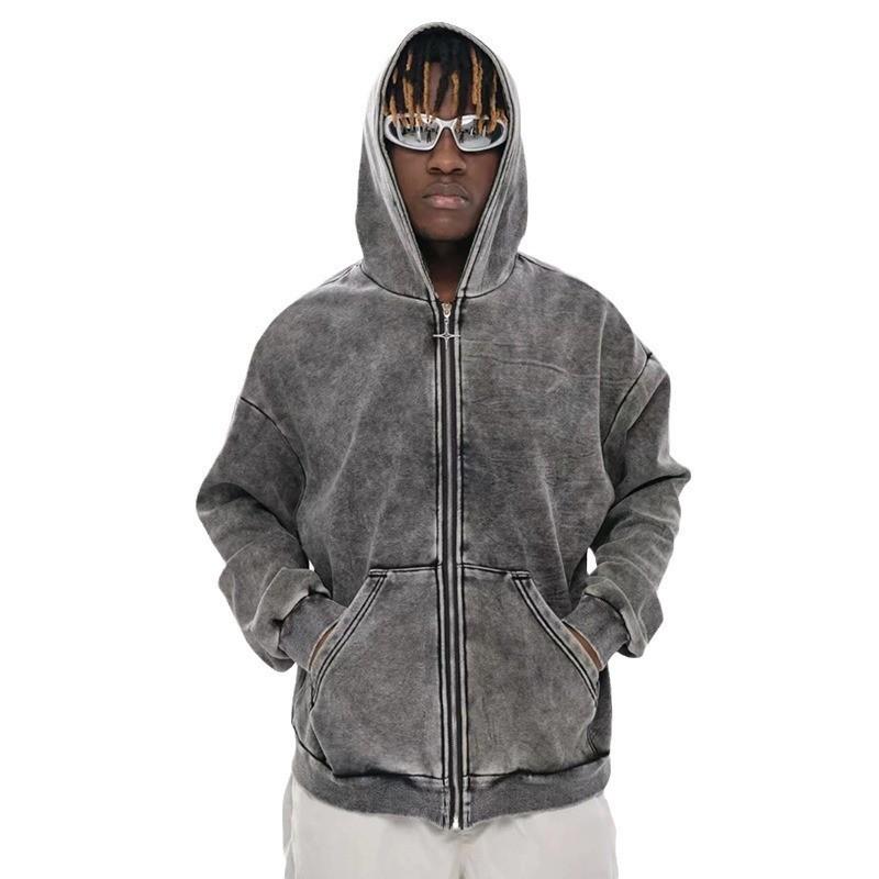 Sudadera con capucha y cremallera para otoño e invierno 2025 para hombre, nueva, holgada y versátil, estilo retro de pareja, marca estadounidense de moda, top