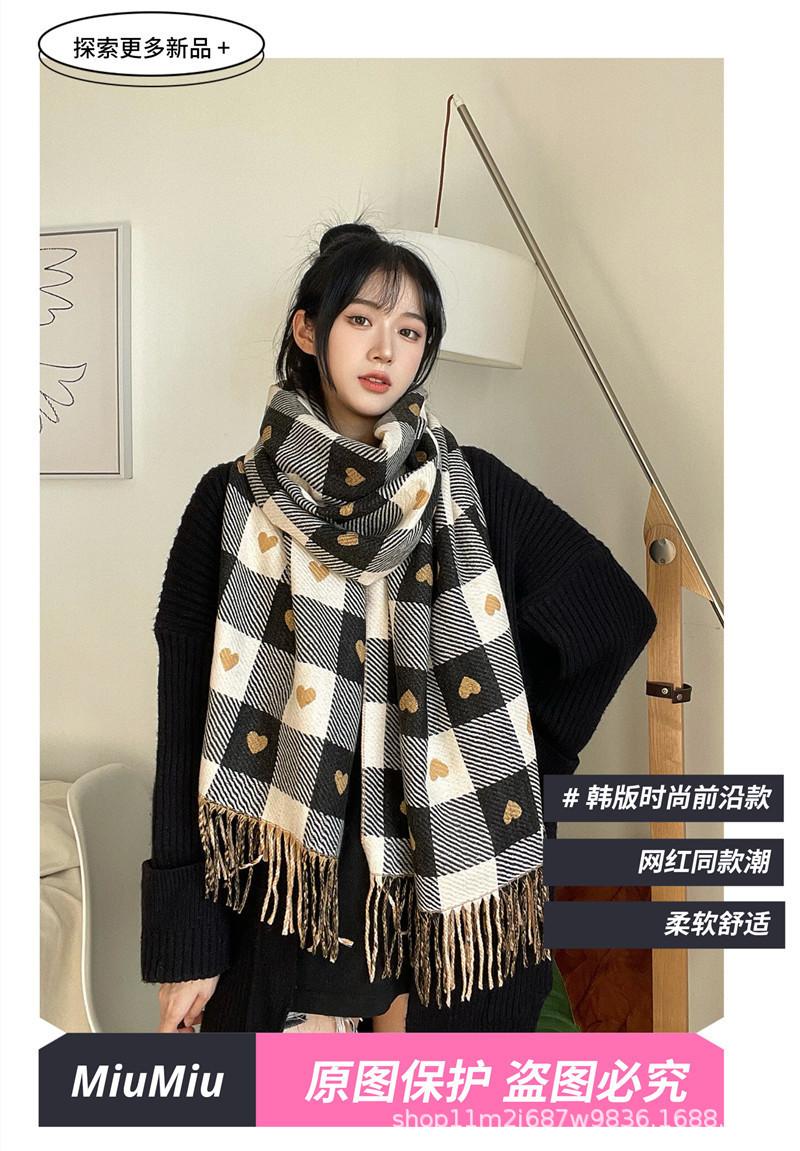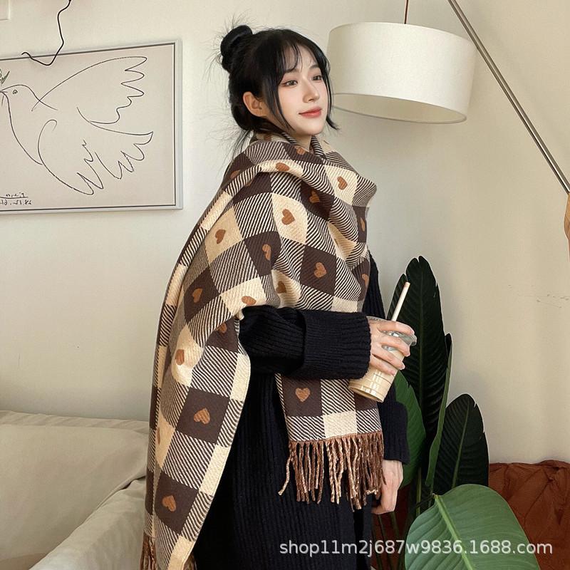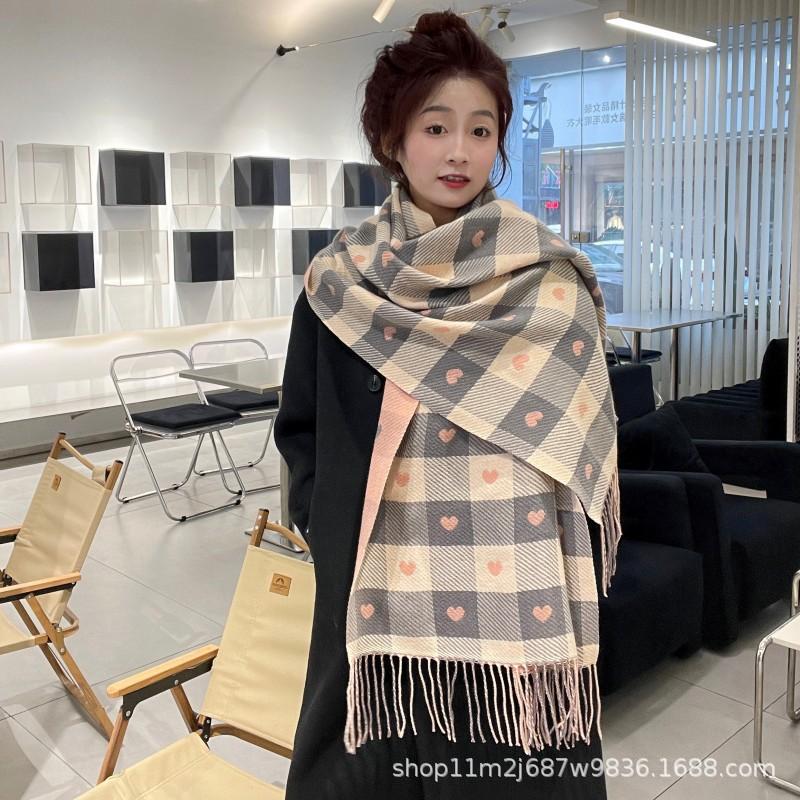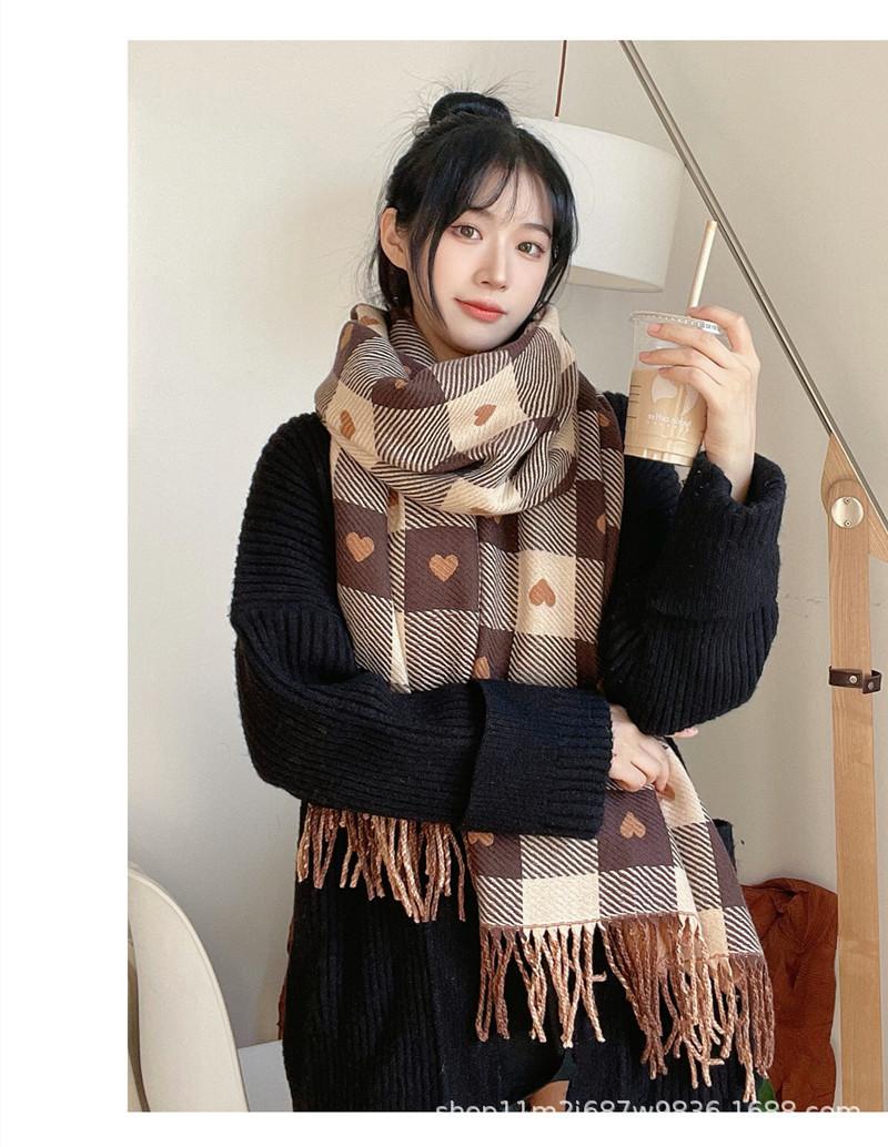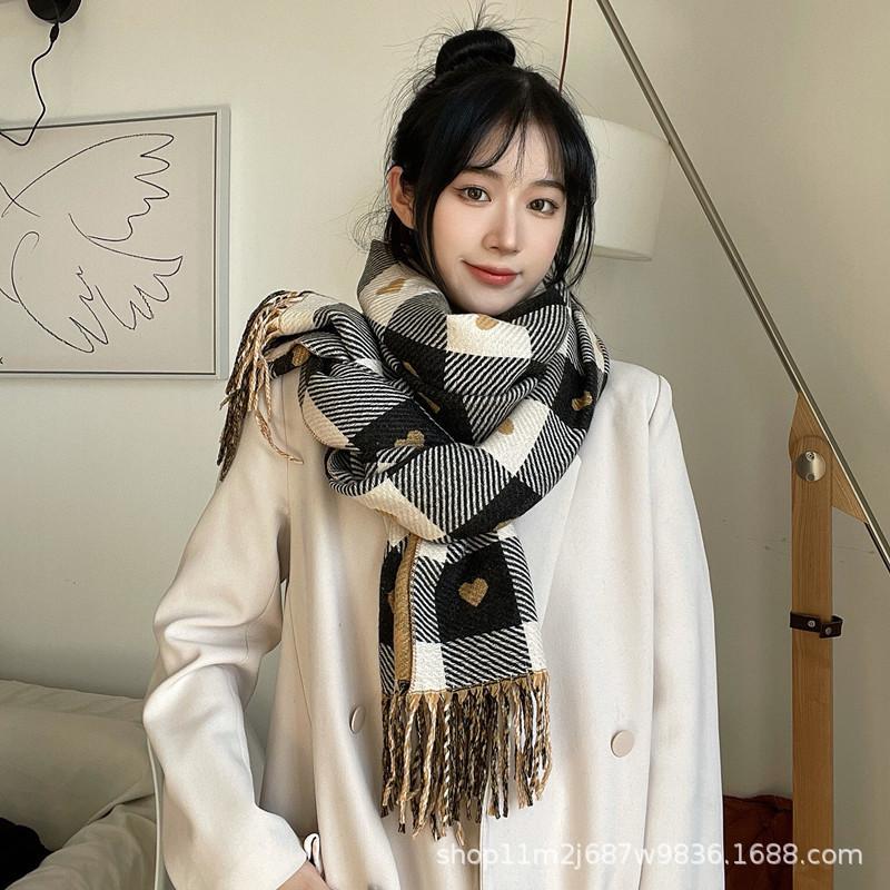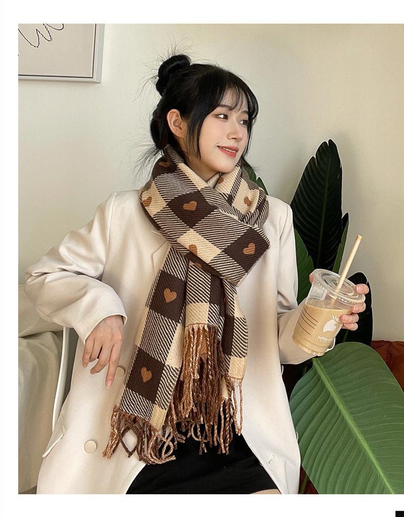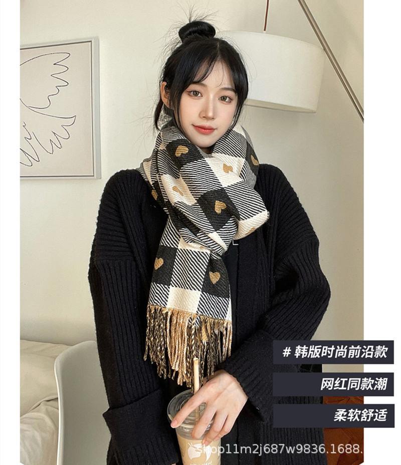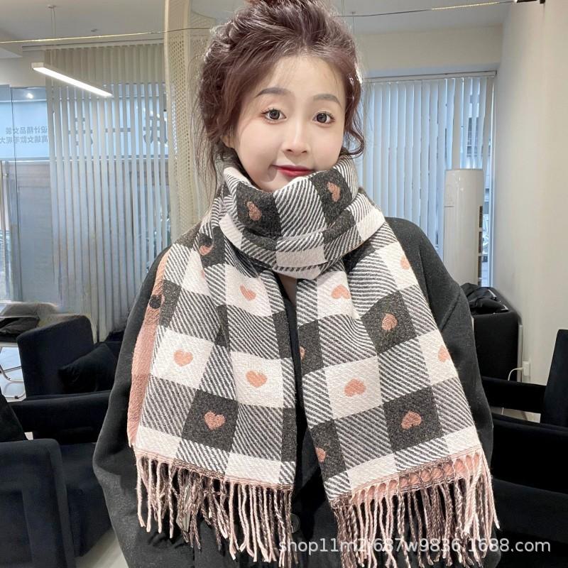 Bufanda de otoño e invierno nueva bufanda de cuadros de amor para mujer estilo coreano versátil celebridad de Internet engrosada estudiante chica chal cálido