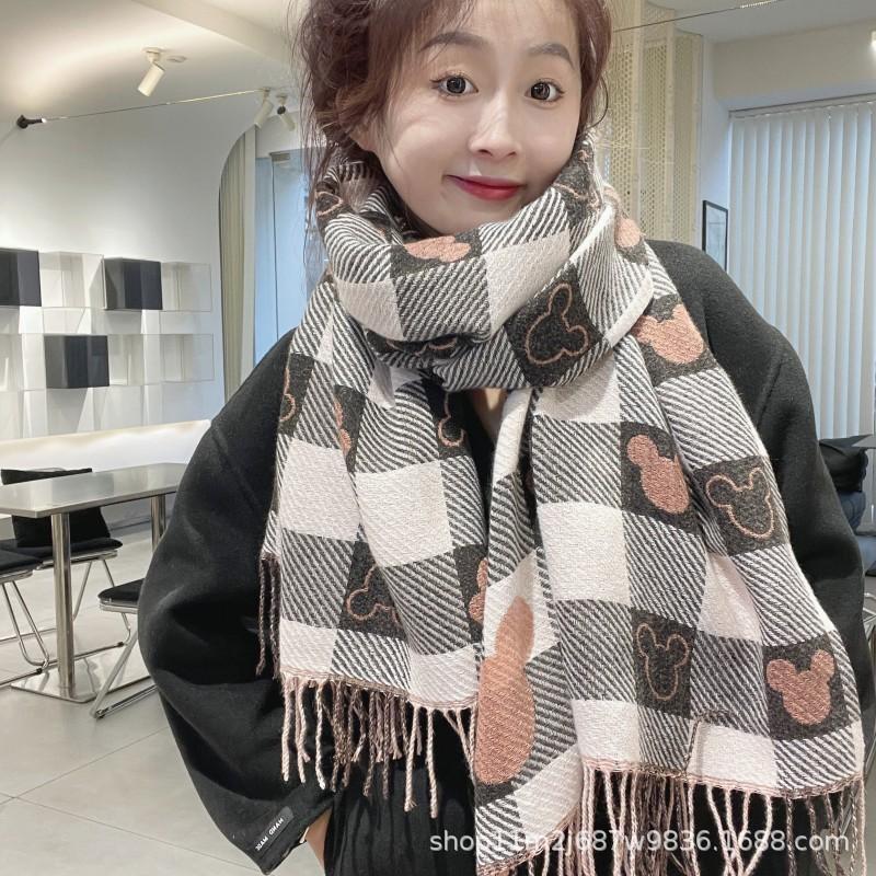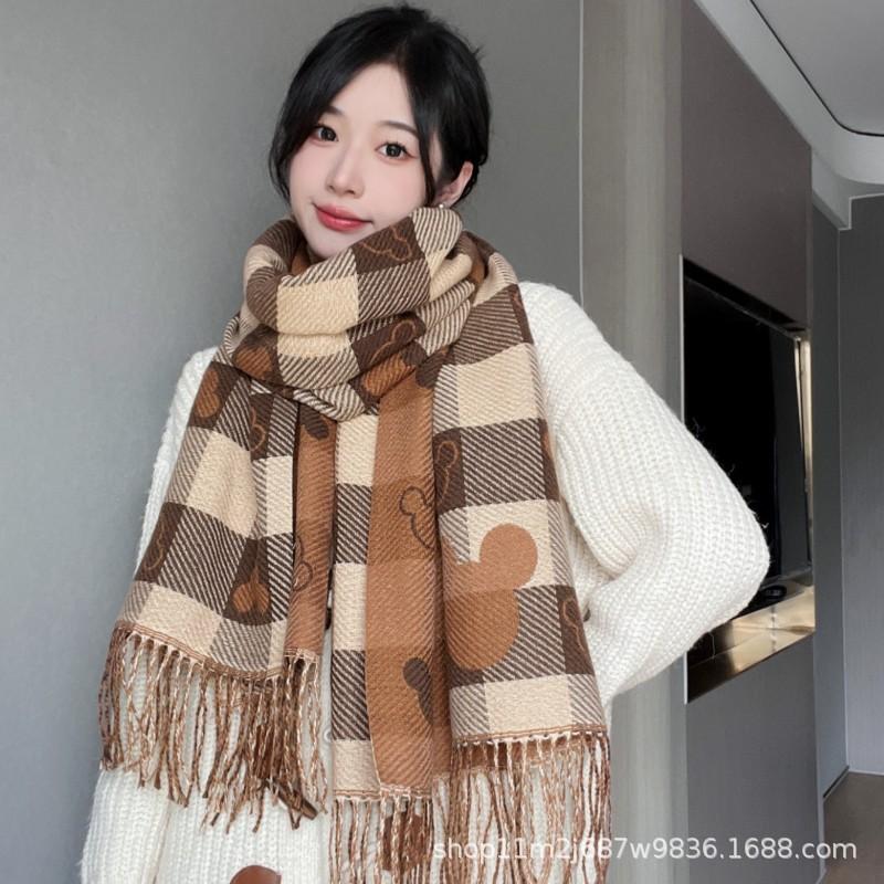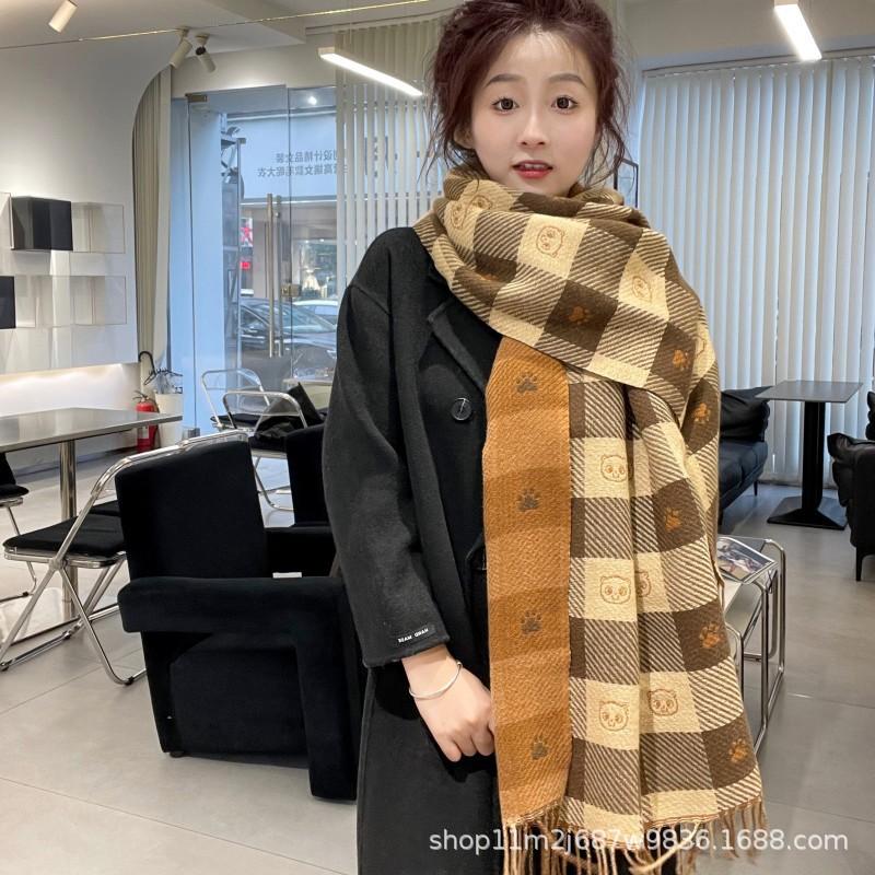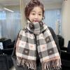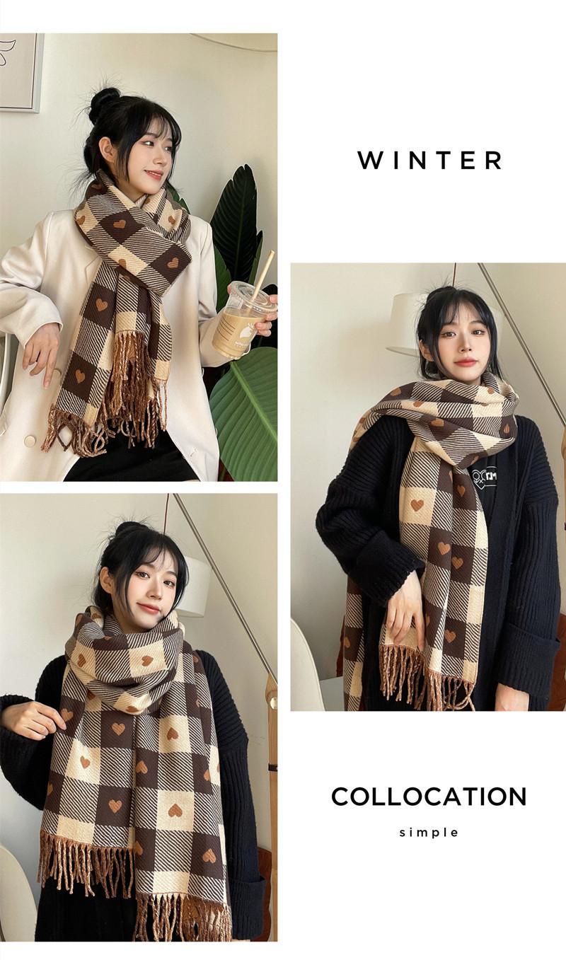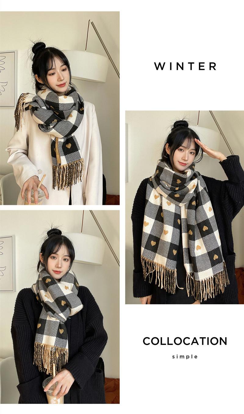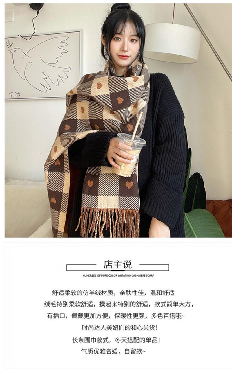 Bufanda de otoño e invierno nueva bufanda de cuadros de amor para mujer estilo coreano versátil celebridad de Internet engrosada estudiante chica chal cálido