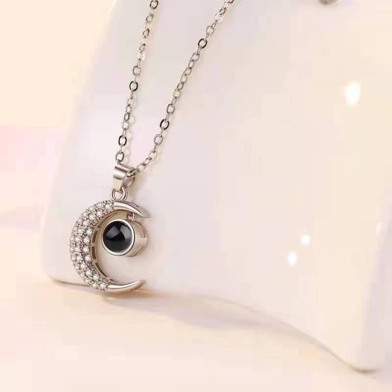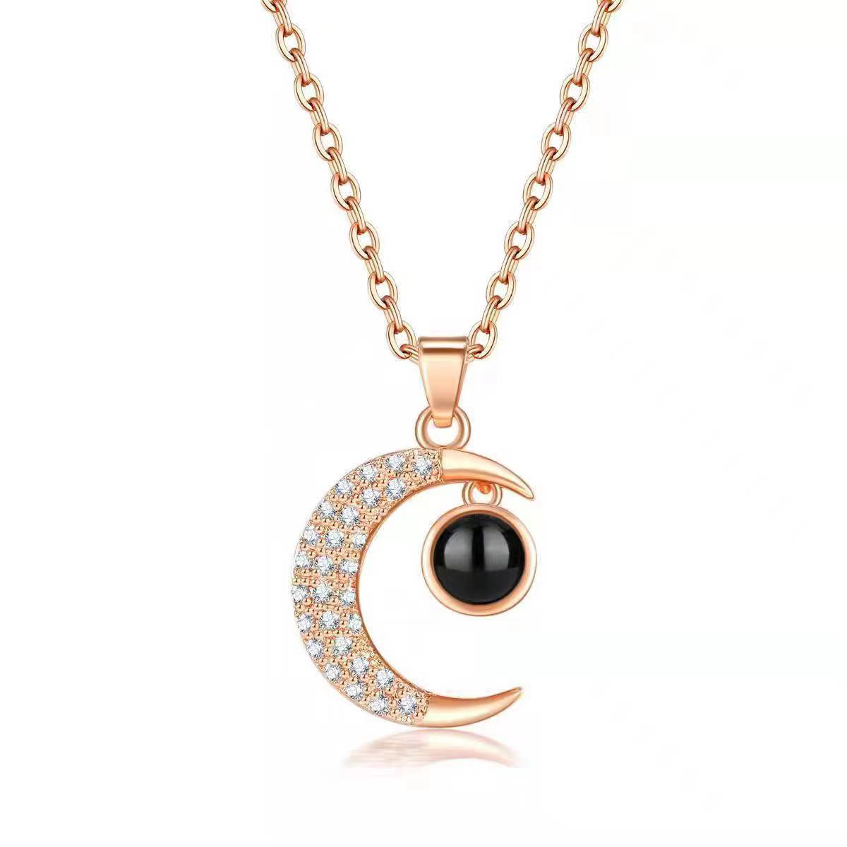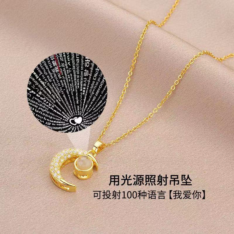 Compra Collar de acero de titanio con proyección de luna "Te amo" en 100 idiomas transfronterizos, cadena de clavícula simple, personalización de imagen al por mayor en Joom.pro