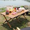 Mesa Plegable de Madera Maciza para Exterior Patio al Aire Libre Camping Autodirigido Mesa Enrollable Tipo Huevo Picnic Portátil Barbacoa Mesa Plegable