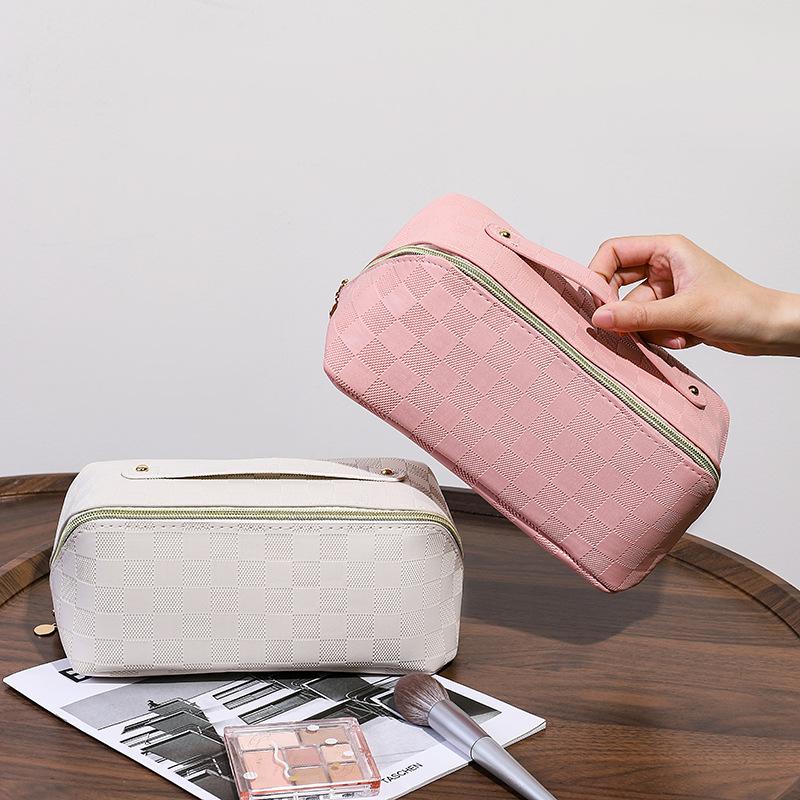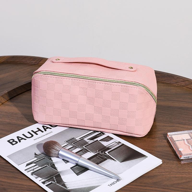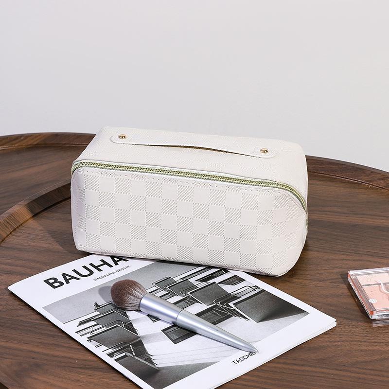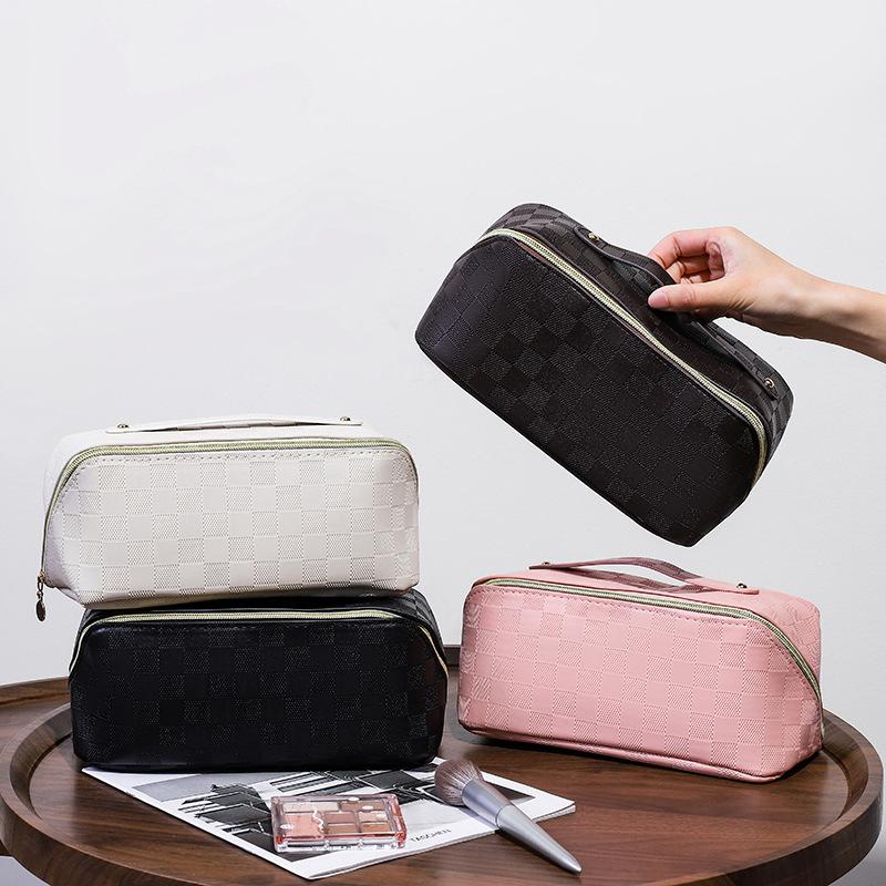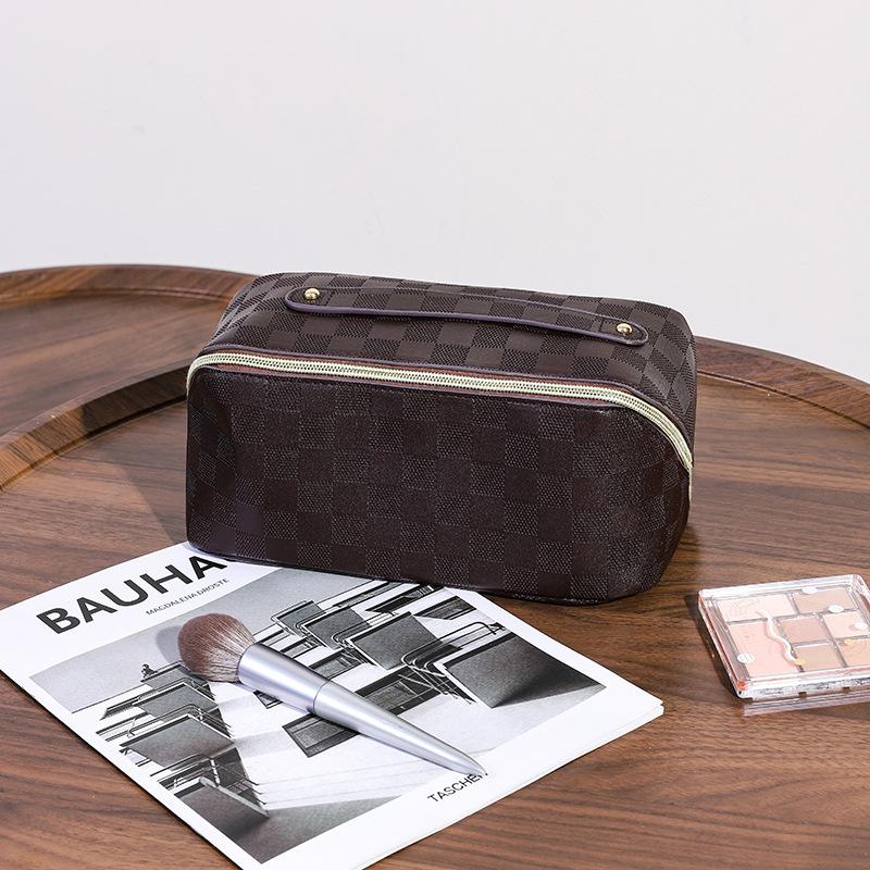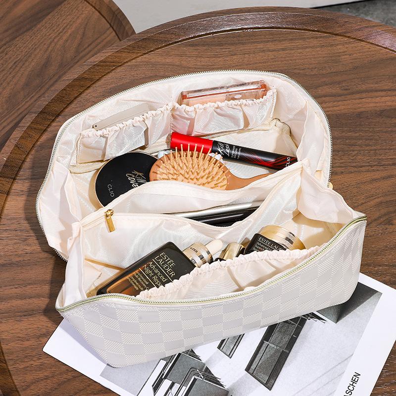 Bolsa de Cosméticos Cuadriculada de Gran Capacidad, Bolsa de Aseo de Viaje, Bolsa de Almacenamiento, Bolsa de Almohada Portátil de Aspecto Elegante, Multifuncional