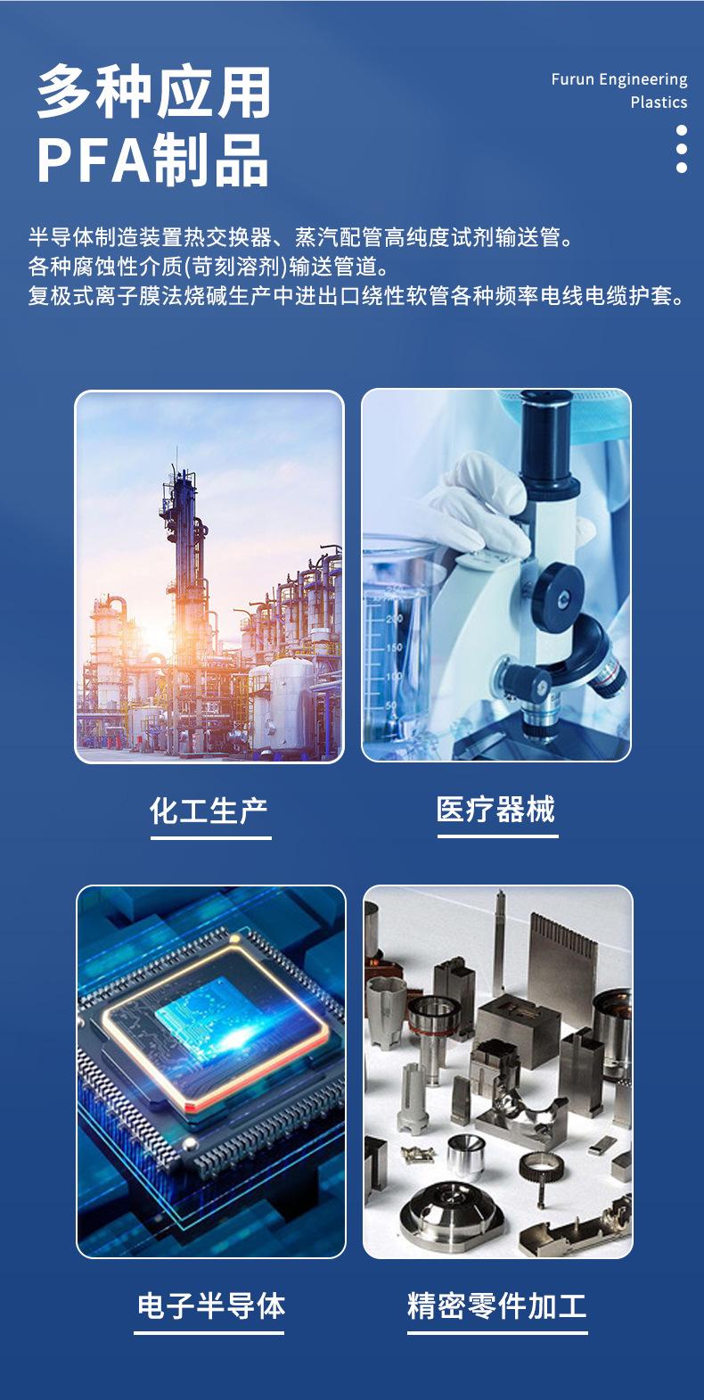 La tubería PFA/F46 es resistente a los ácidos, a los álcalis y a las altas temperaturas, lo que proporciona una varilla para el procesamiento.