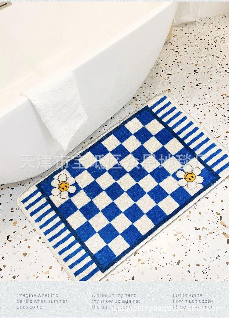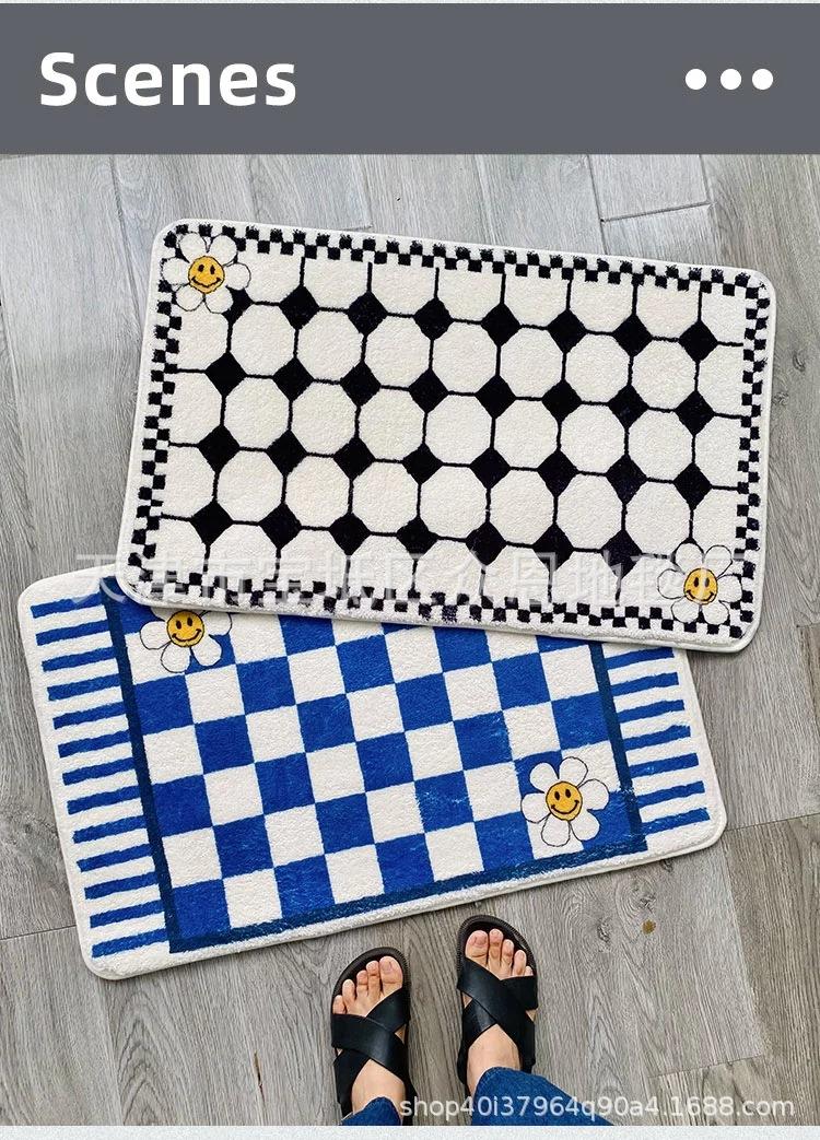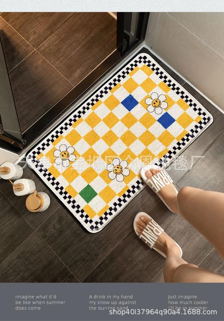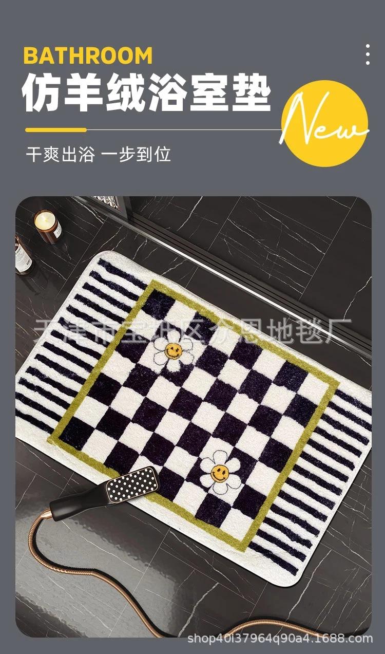 Felpudo de baño moderno y sencillo con imitación de cachemira y diseño de cuadros, absorbente de agua, antideslizante, para uso doméstico transfronterizo