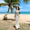 Vestido corto sexy con escote en V y borlas de diamantes de imitación, de lujo, con purpurina y fiesta de celebridades.