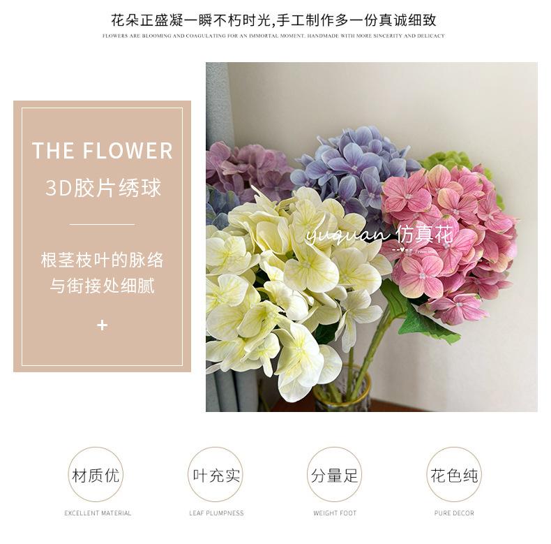 Película 3D de hortensias artificiales para bodas, arreglos florales para bodas, decoración de hoteles, diseño de habitaciones y flores artificiales.