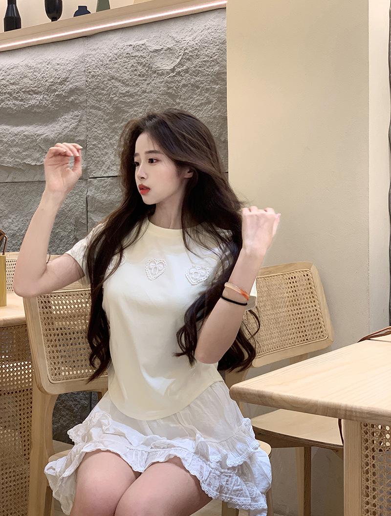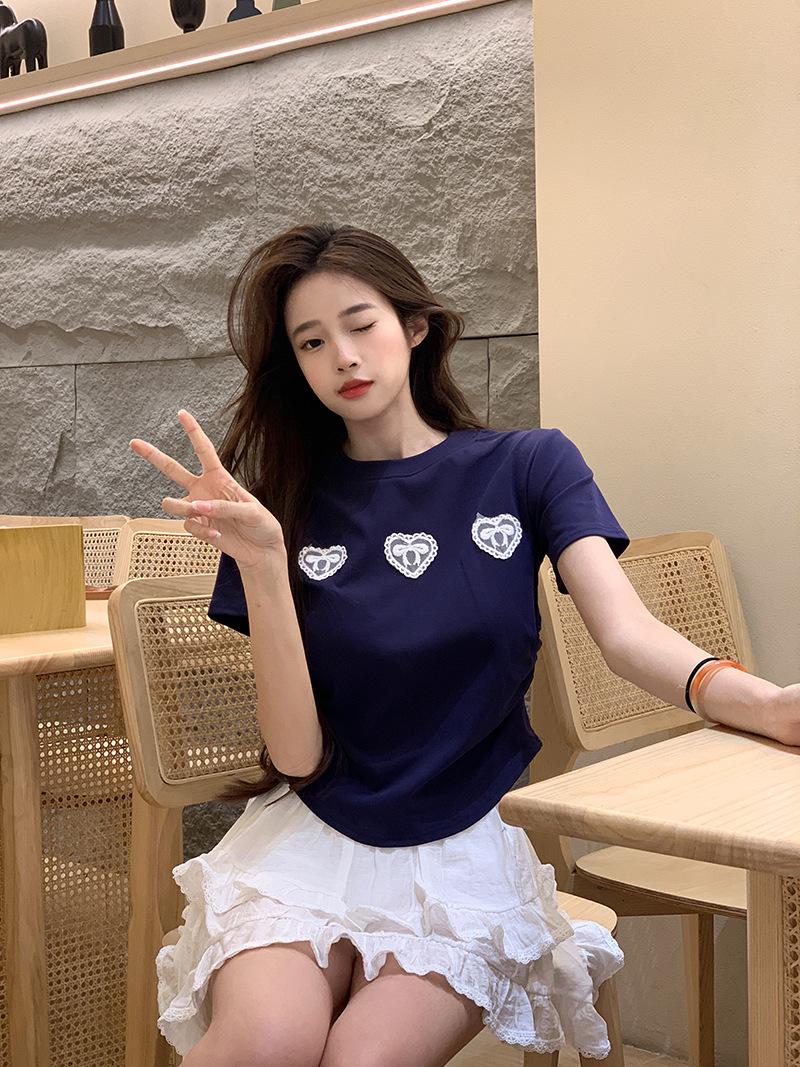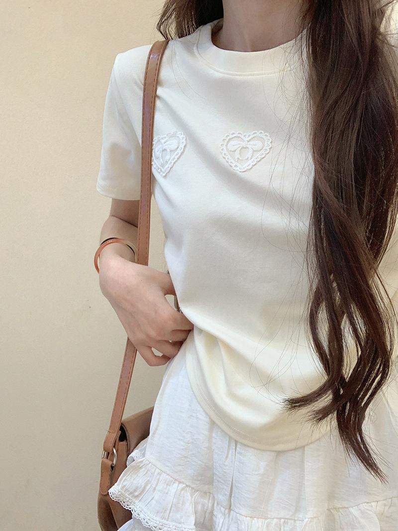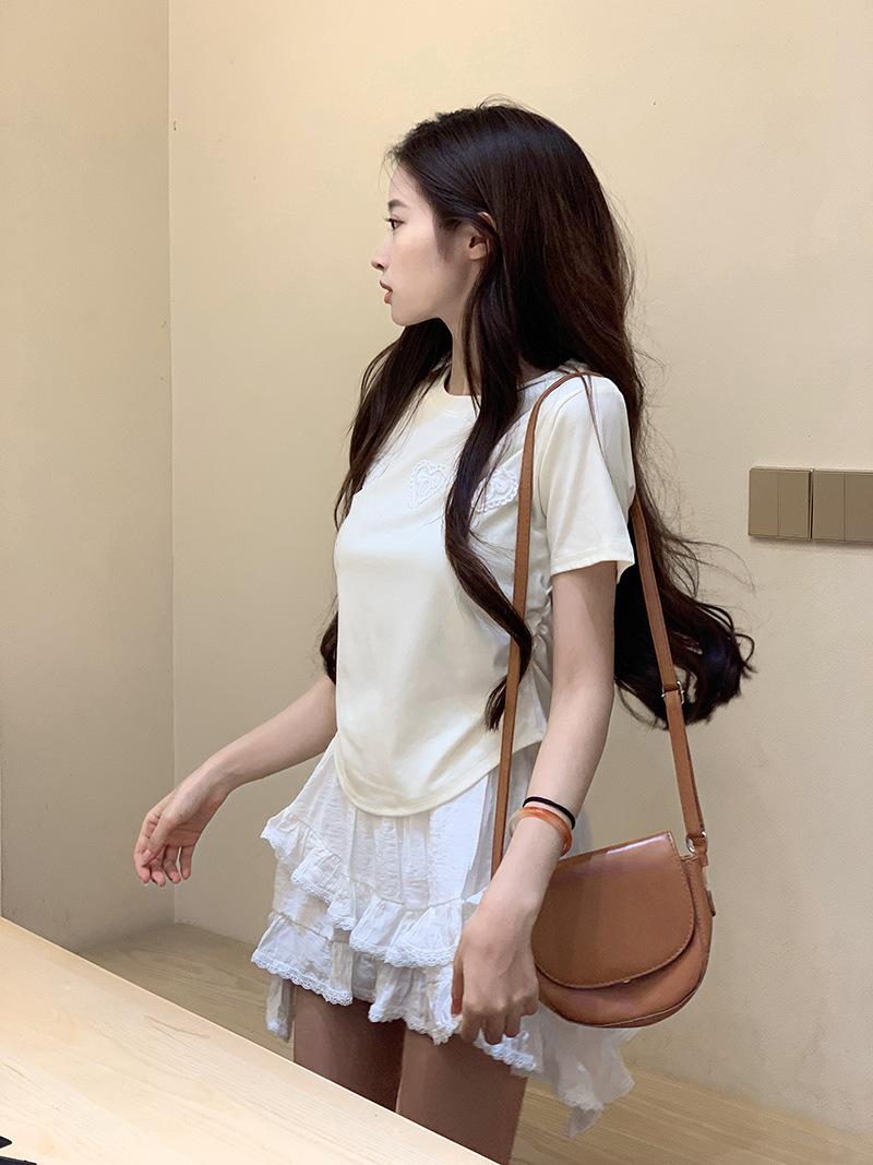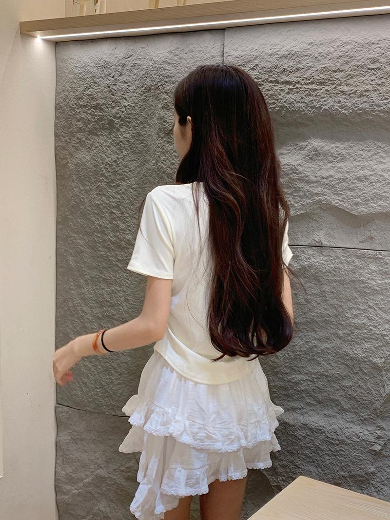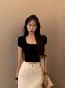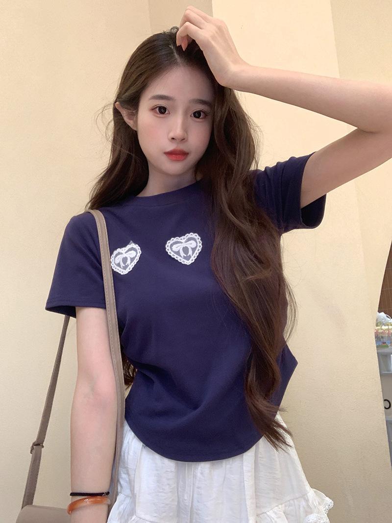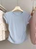 Camiseta de manga corta con lazo en los hombros para mujer, verano 2024, nueva camiseta corta ajustada y adelgazante