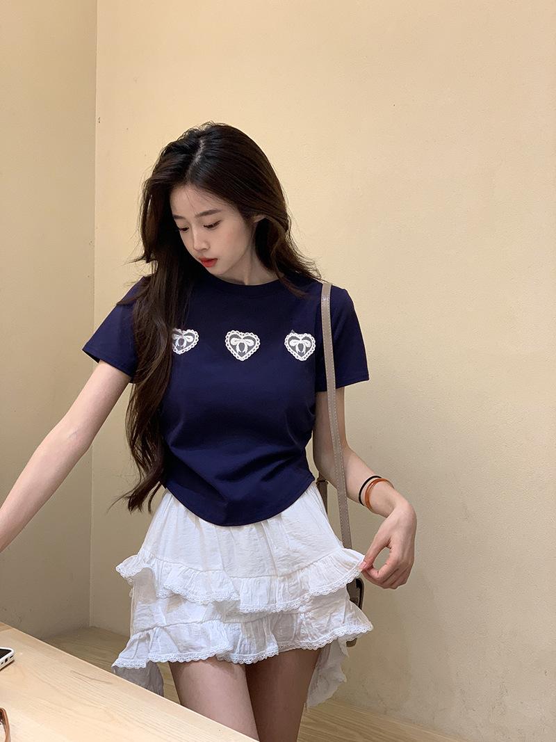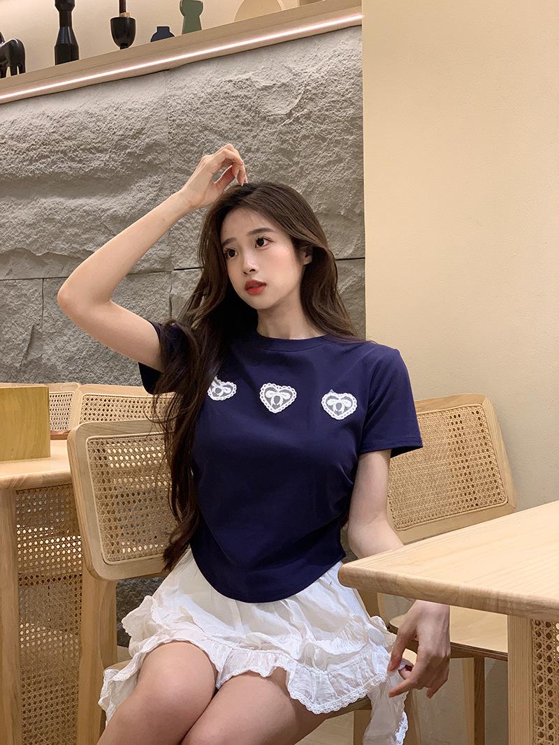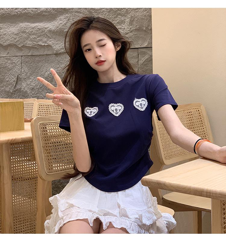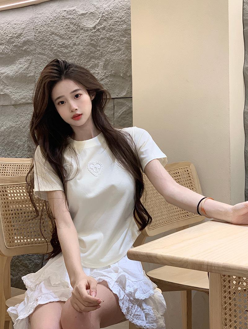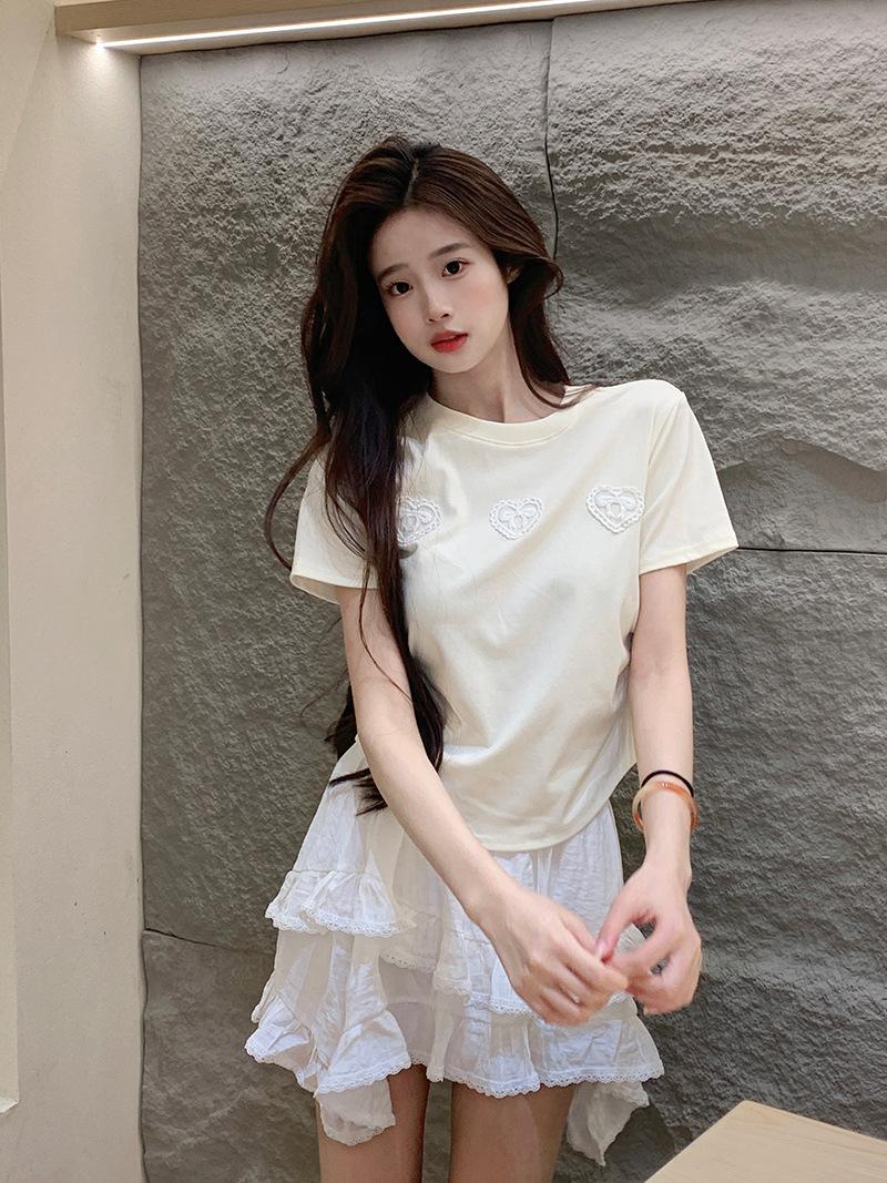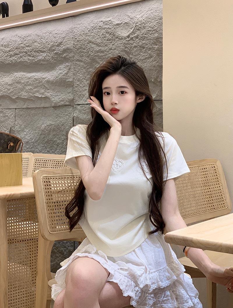 Camiseta de manga corta con lazo en los hombros para mujer, verano 2024, nueva camiseta corta ajustada y adelgazante