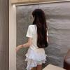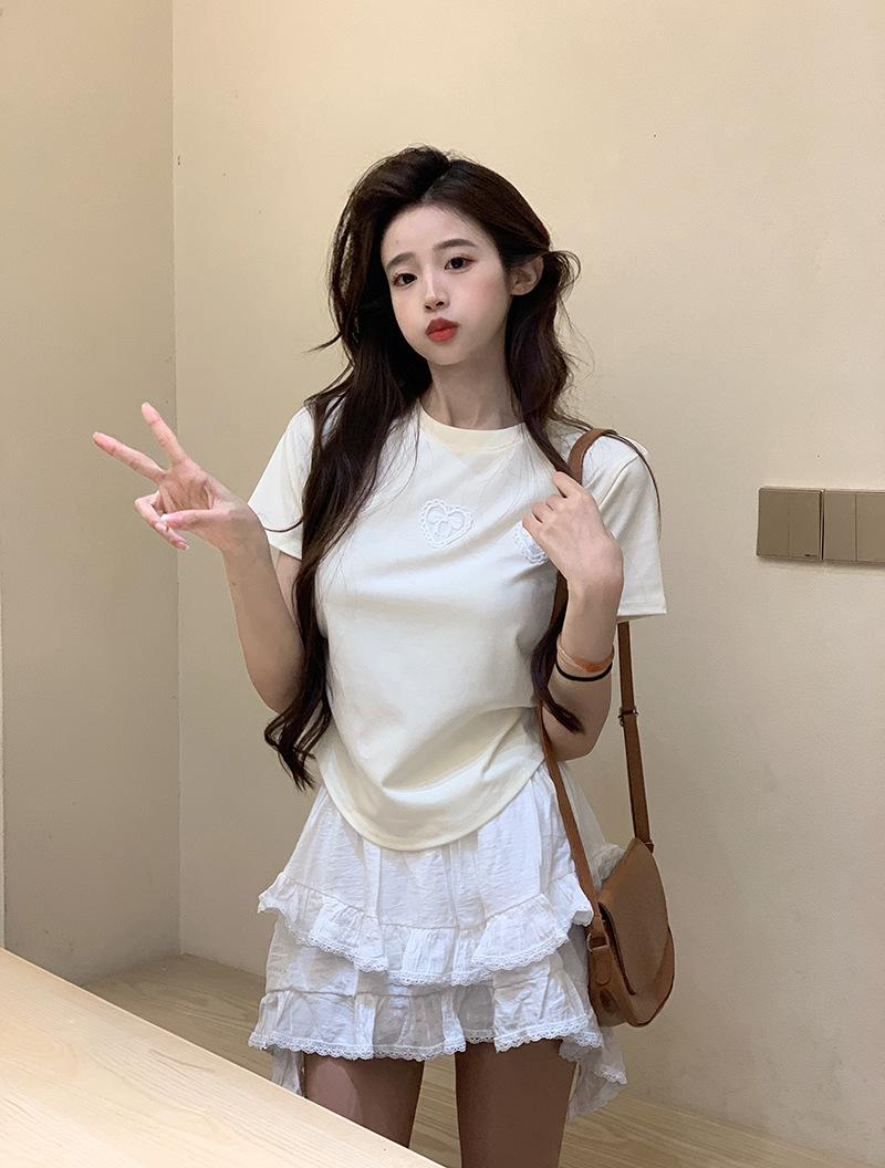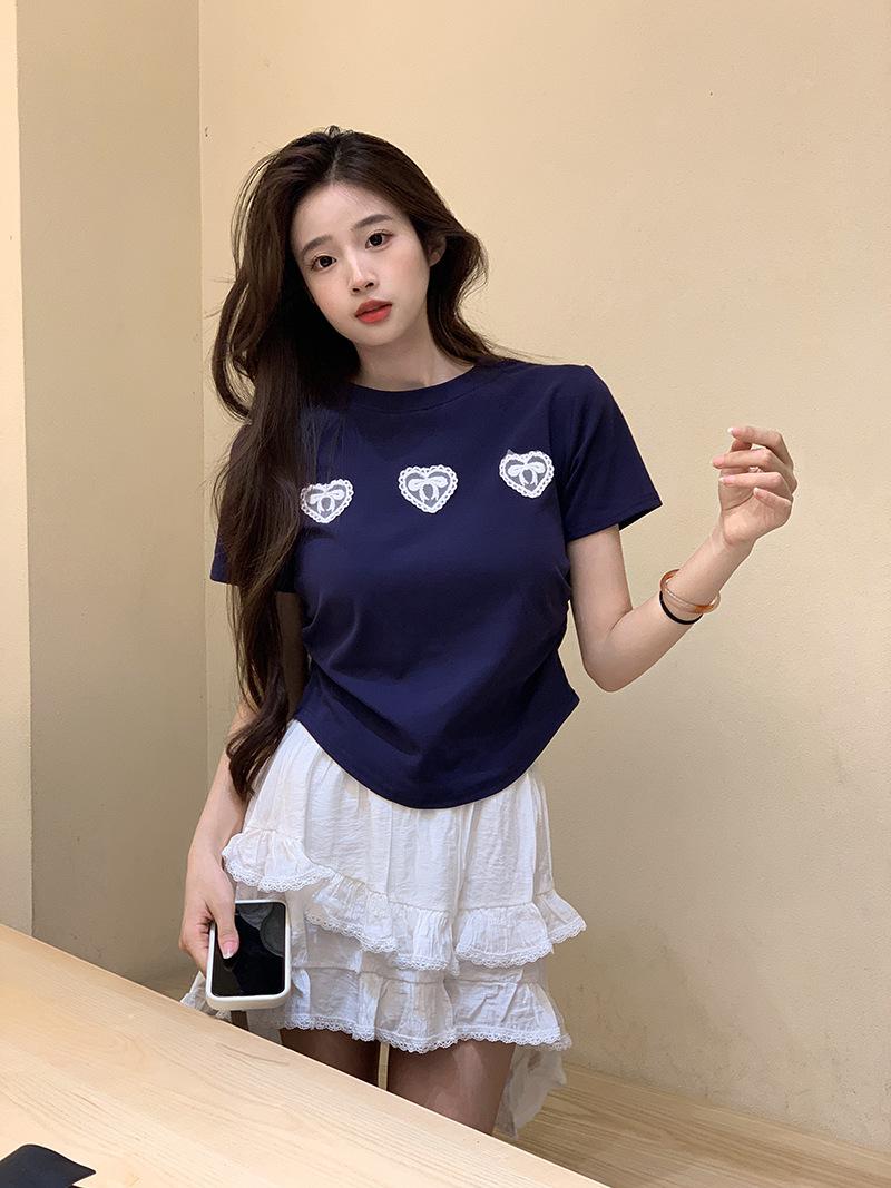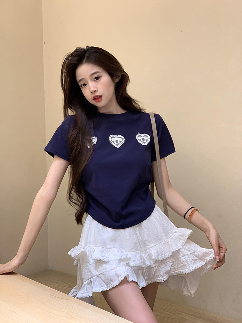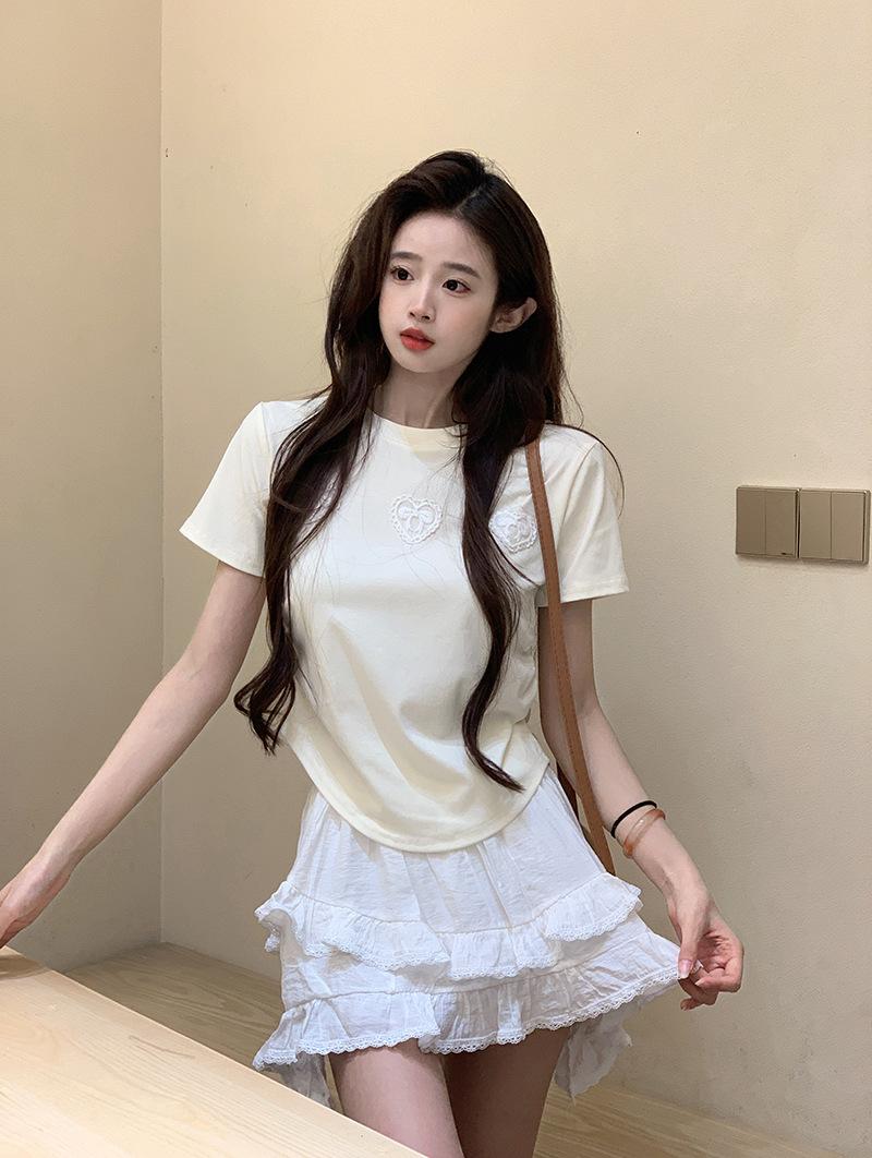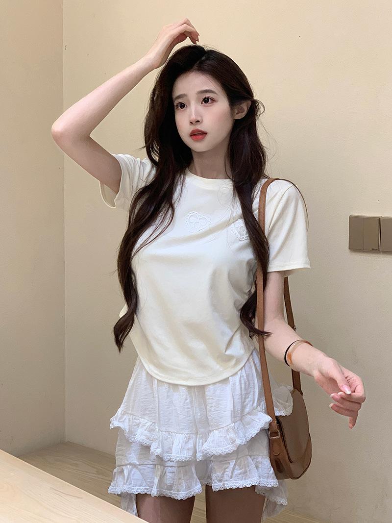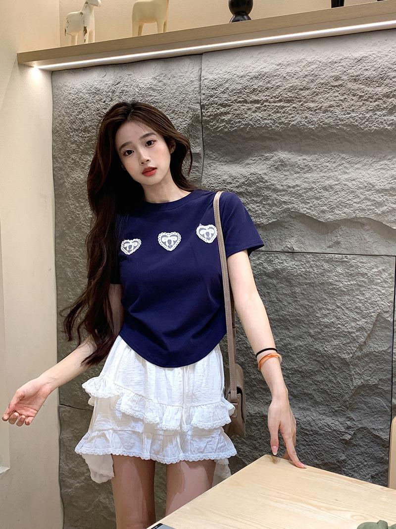 Camiseta de manga corta con lazo en los hombros para mujer, verano 2024, nueva camiseta corta ajustada y adelgazante