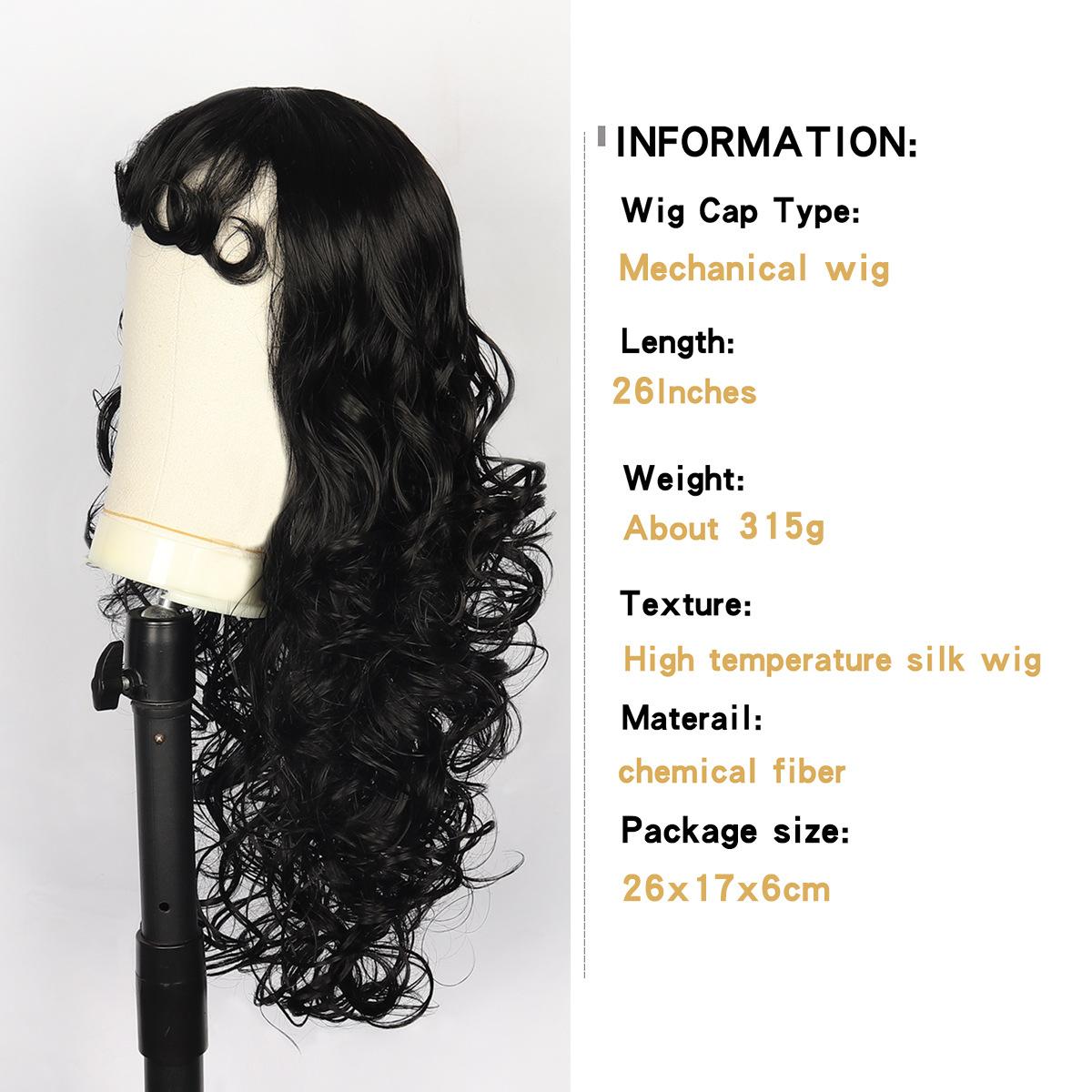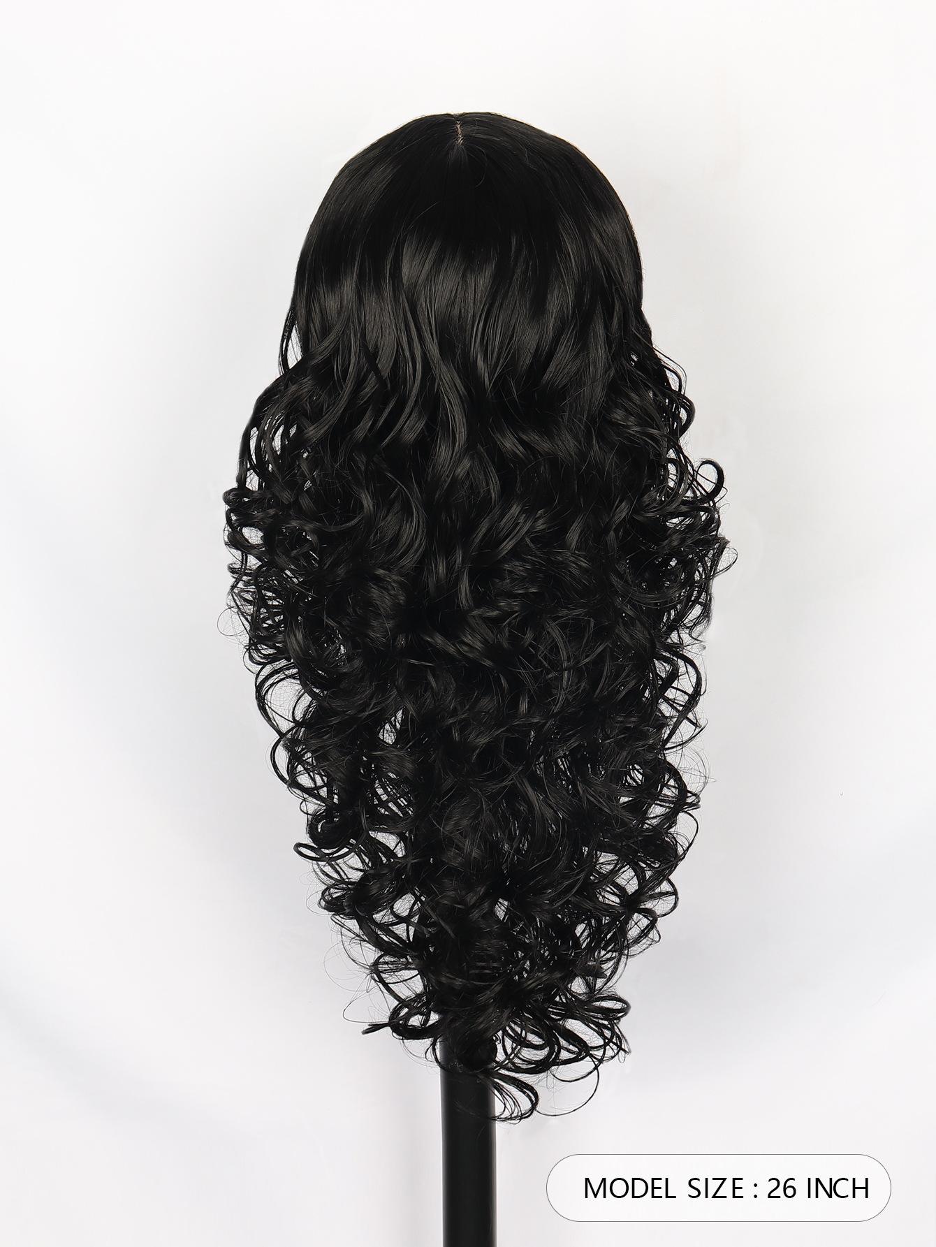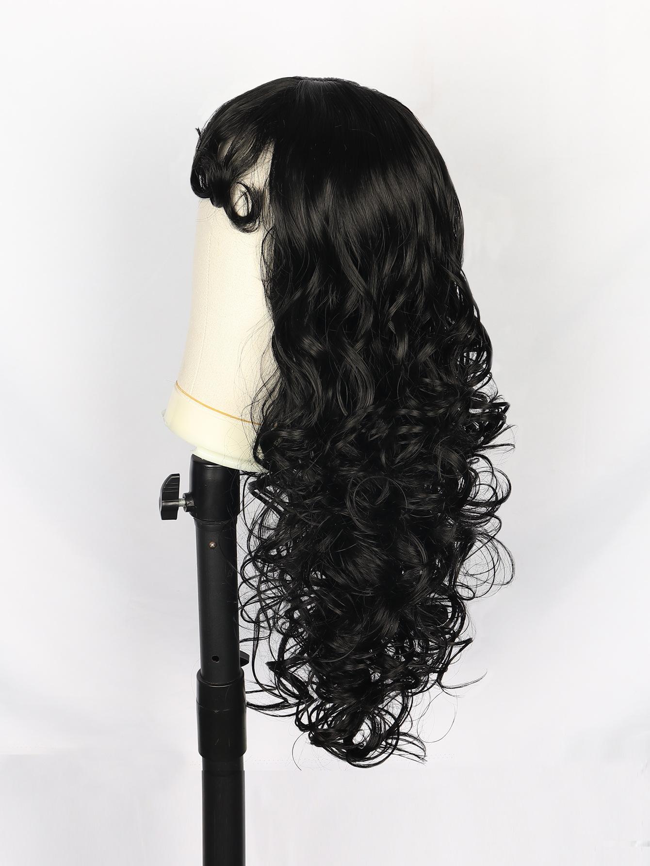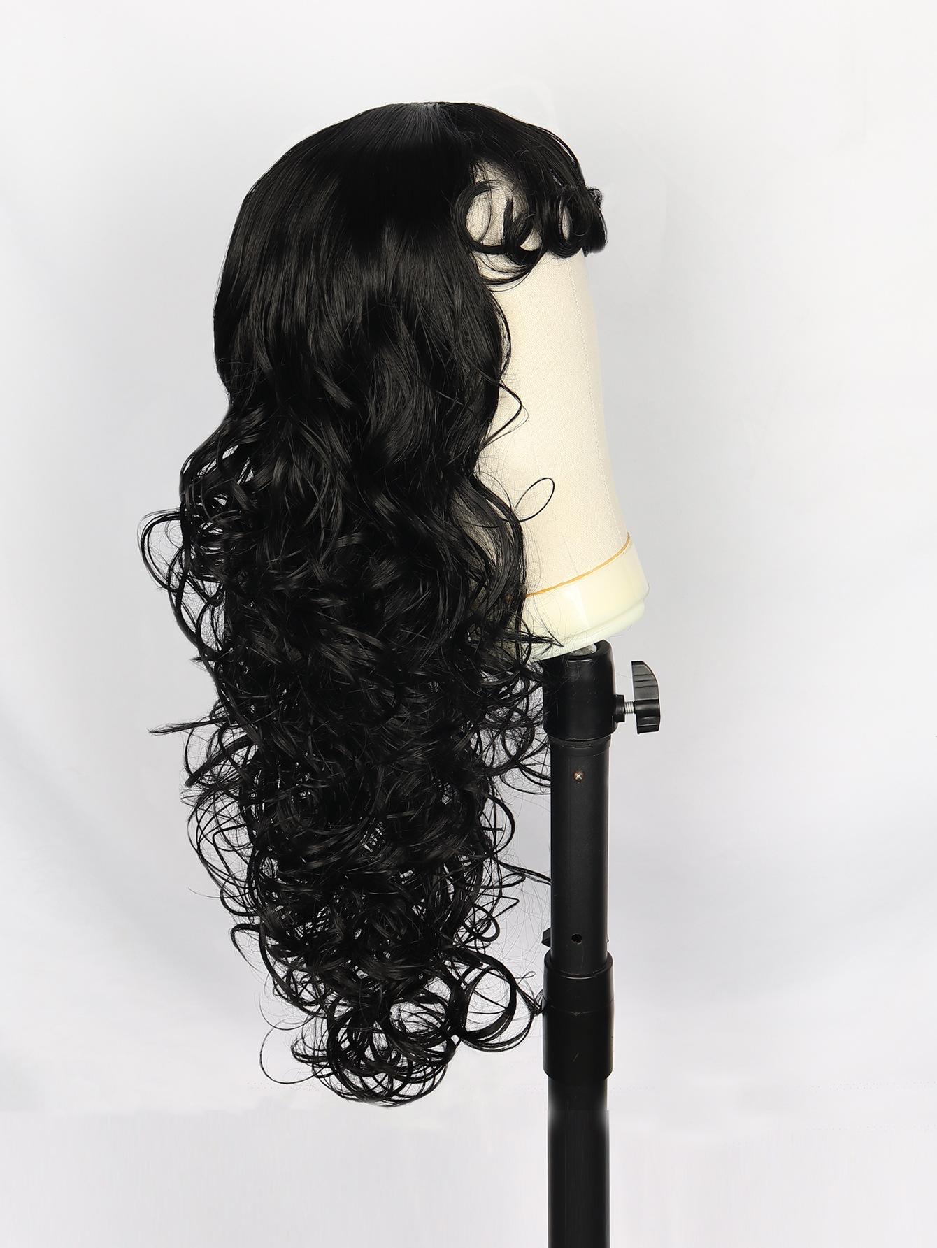 Peluca Amazon Venta Caliente Nueva Negra Larga Rizada Mecanismo Tocado Esponjosa Natural Europea y Americana Peluca pelucas