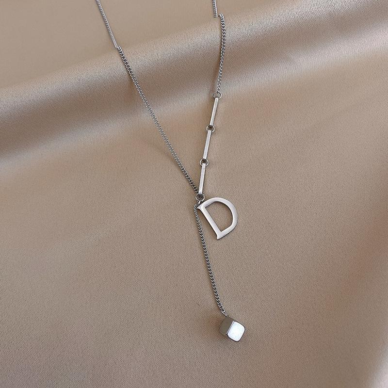 Black square, Golden heart, Letter d geometric necklace (gold), Letter d geometric necklace (silver)