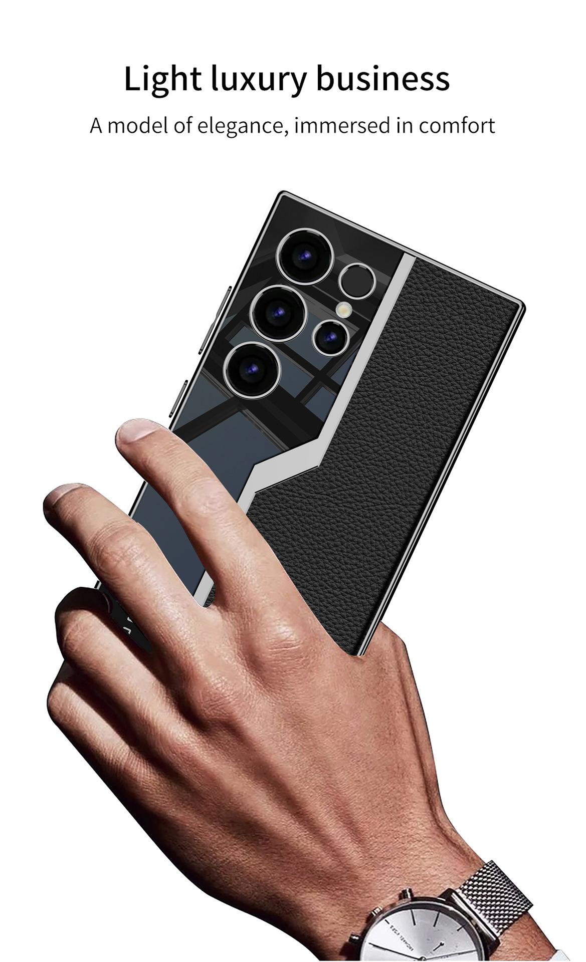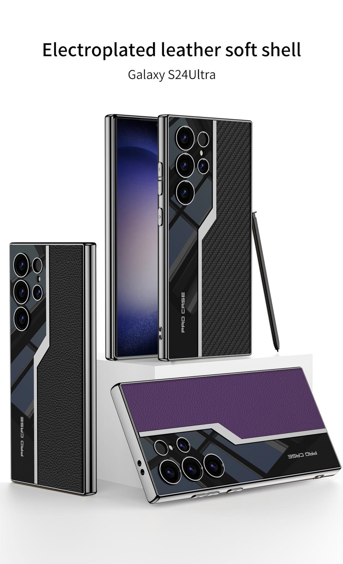 Aplicable a funda para teléfono móvil Samsung S24ultra ultrafina electrochapada de cuero liso espejo S24plus/S24 funda protectora resistente a caídas