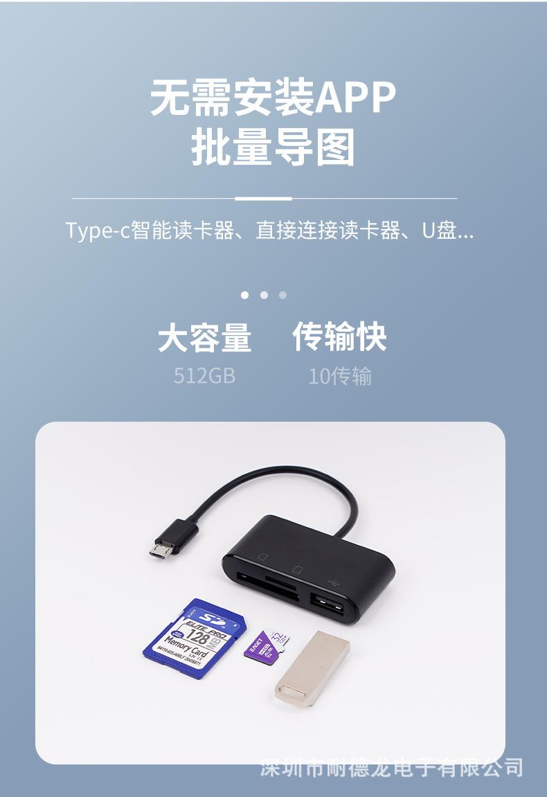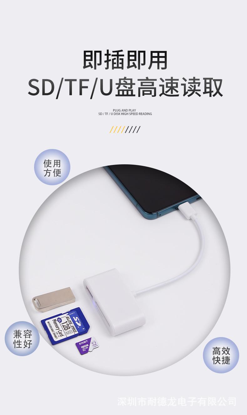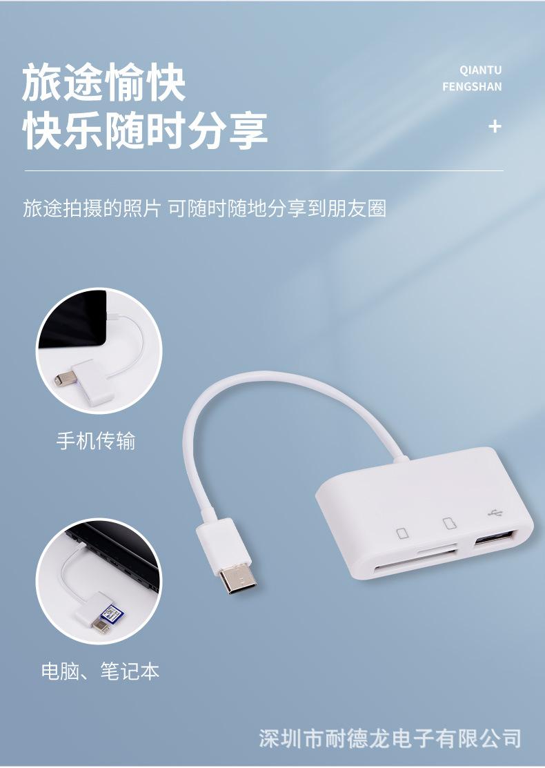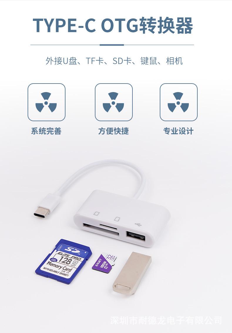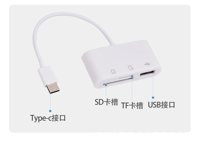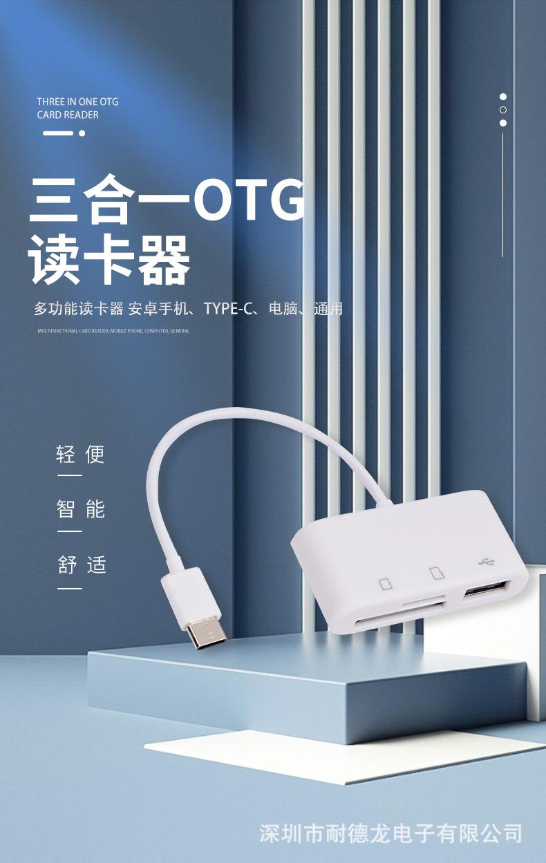 Lector de tarjetas tres en uno Android TIPO C a disco TF/SD/U, periférico, teléfono móvil, computadora, lector de tarjetas OTG con cable