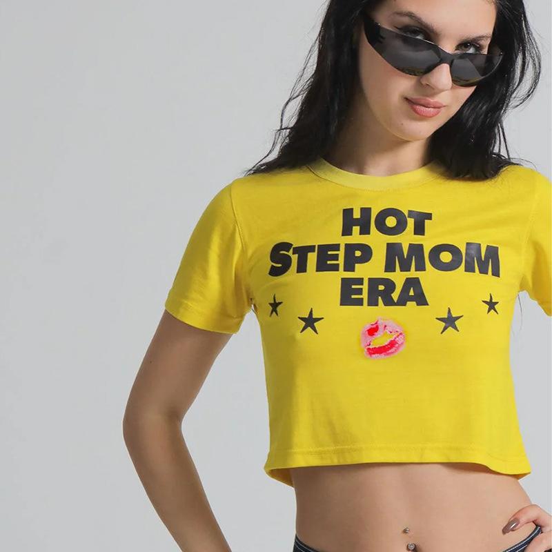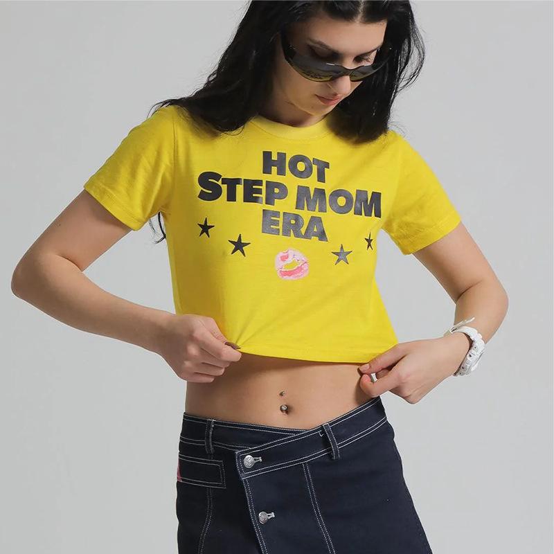 Camiseta de verano para mujer, con estampado de letras y ombligo, de manga corta, estilo urbano europeo y americano, personalizada
