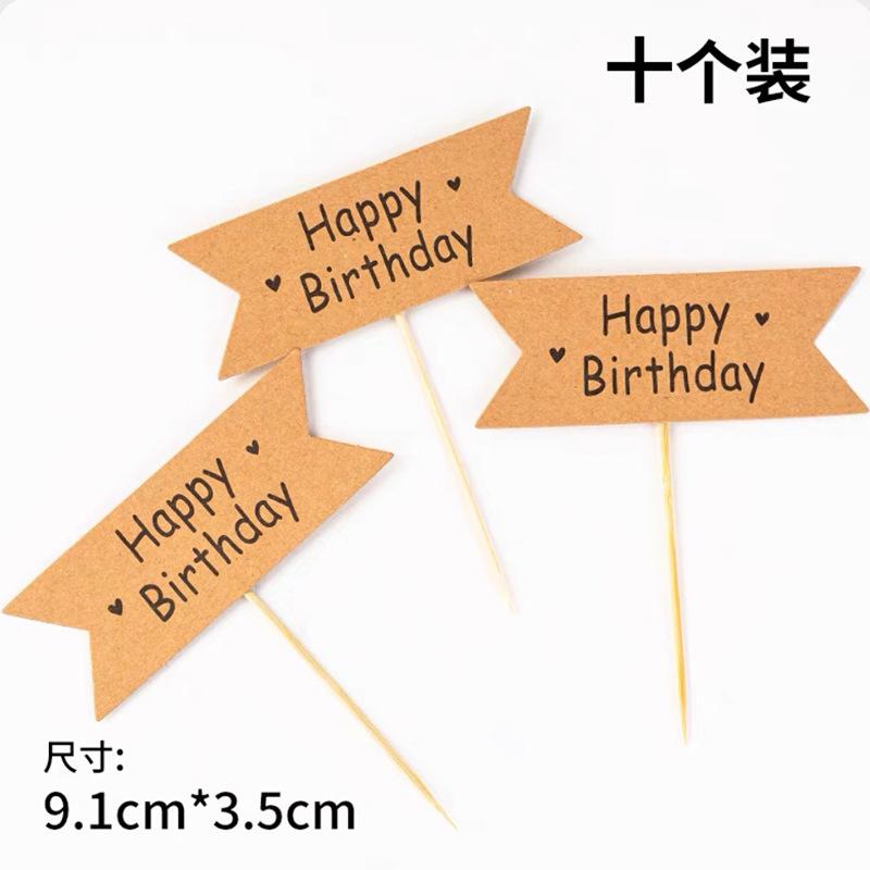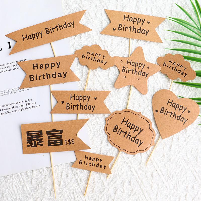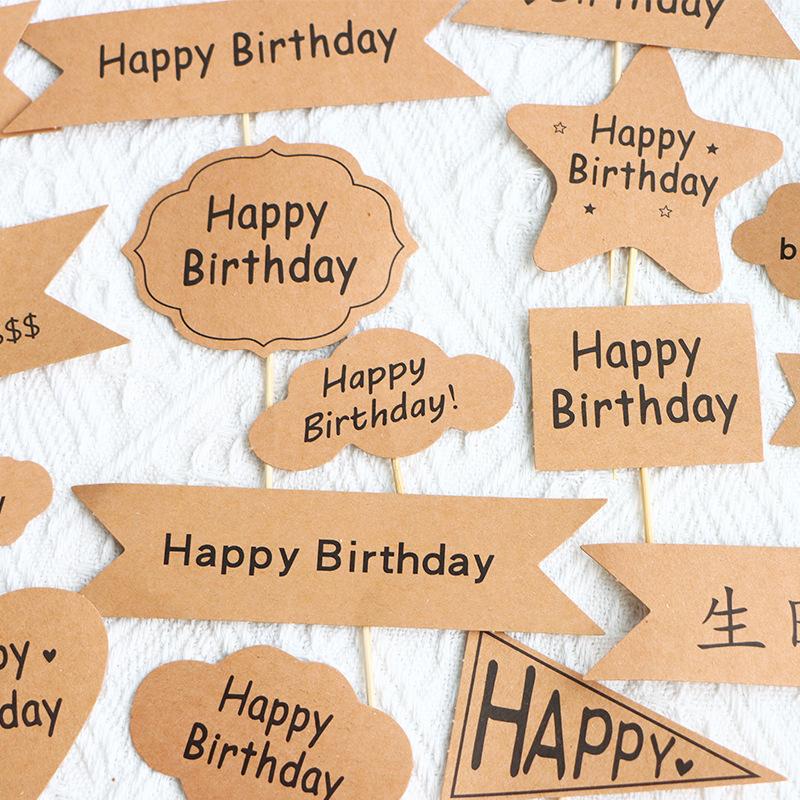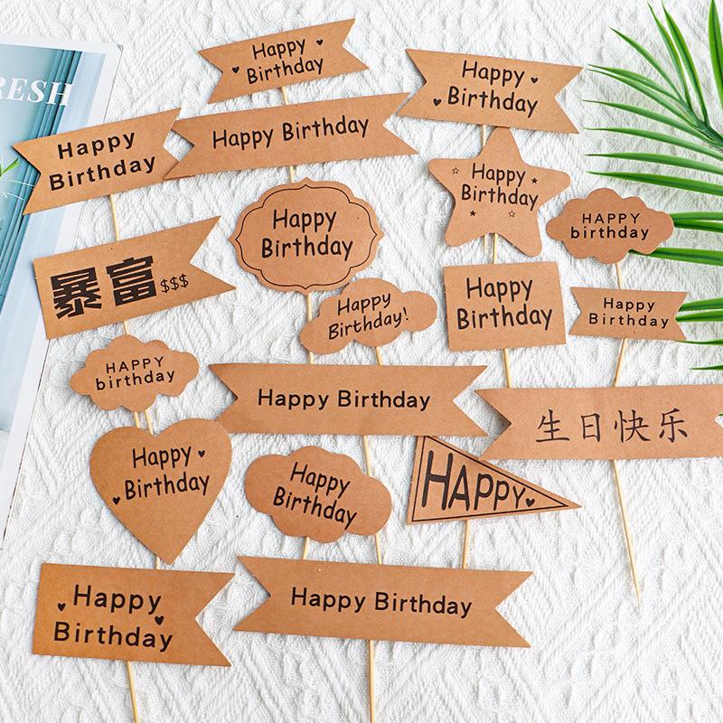 Decoración para pasteles, complementos de estilo kraft, tarjeta de bendición, tarjeta de feliz cumpleaños, bandera, decoración de postres