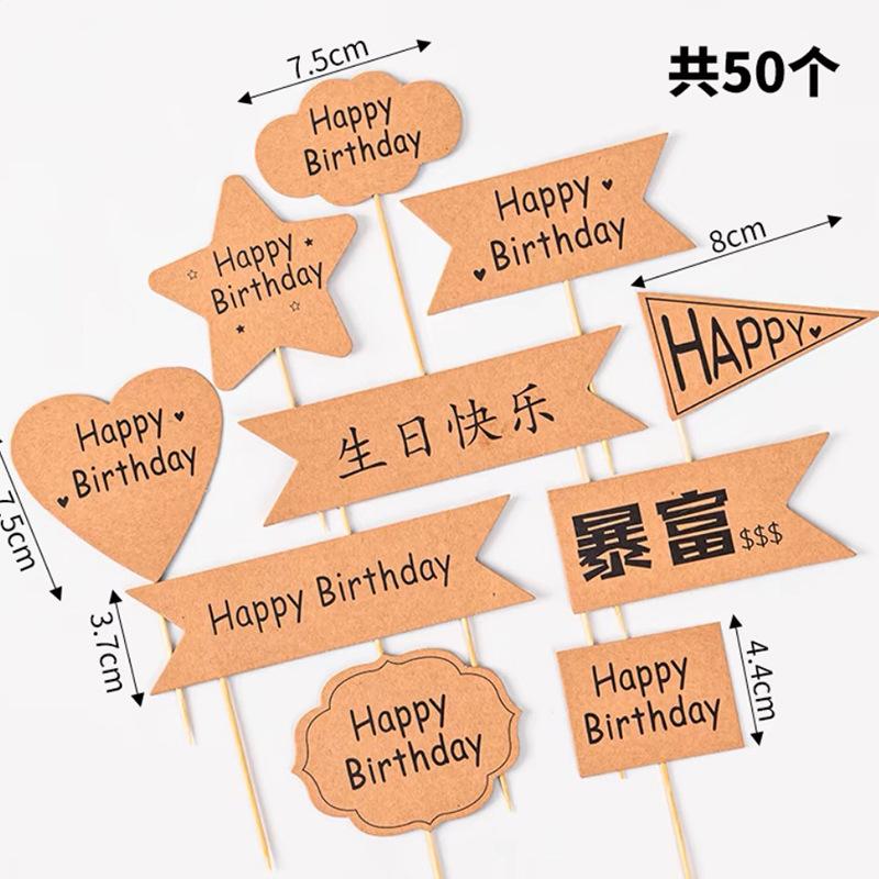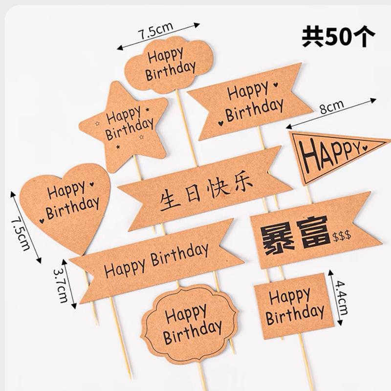 Kraft paper happy birthday set 50 pieces, Insert card kraft paper large double triangle HB ten pieces, Insert ...