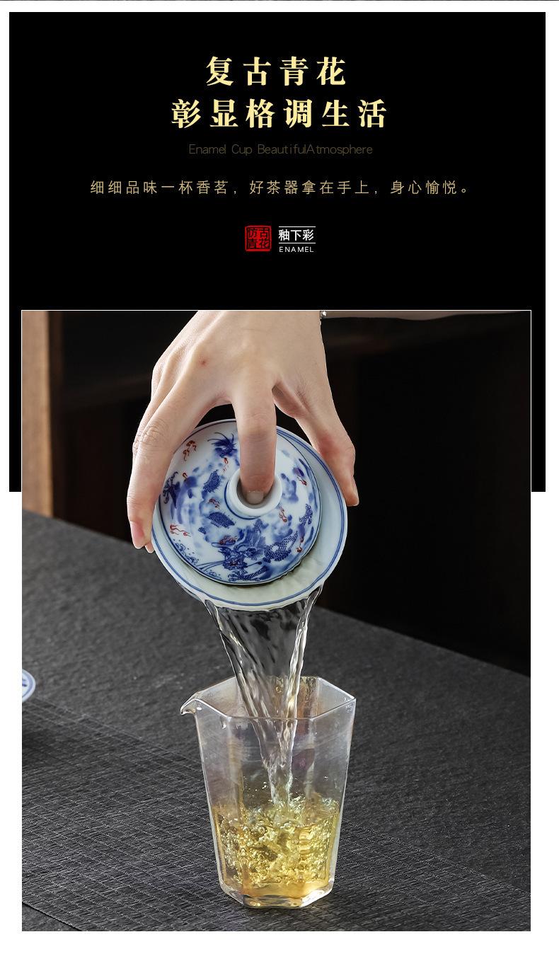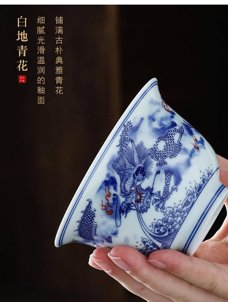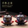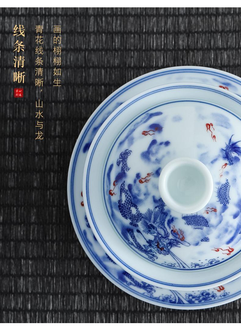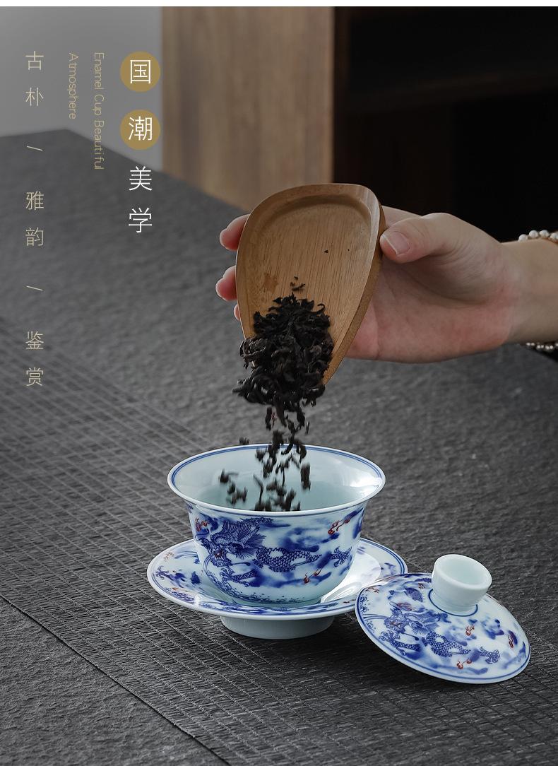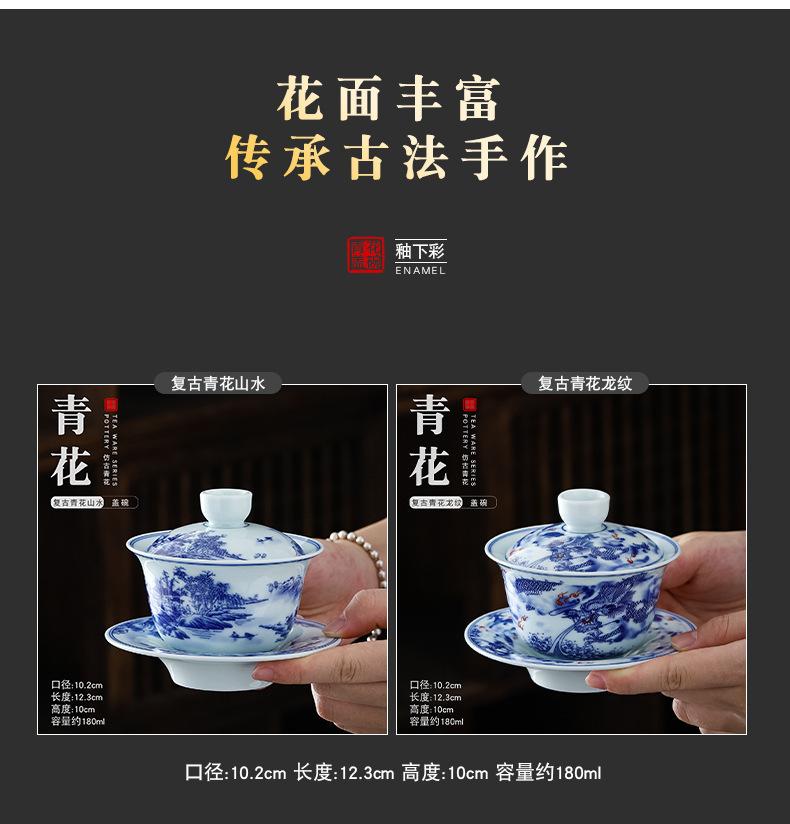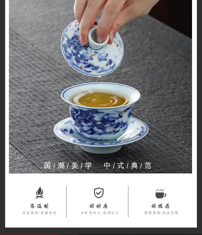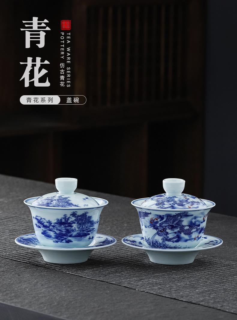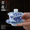 Cuenco de cerámica de porcelana blanca con tapa, cuenco de té de kung fu vintage azul y blanco de tres Cai, cuenco de té verde con sombra, venta al por mayor de fábrica