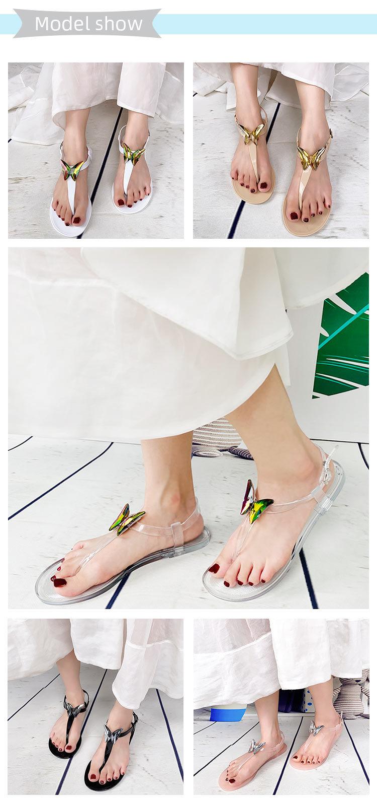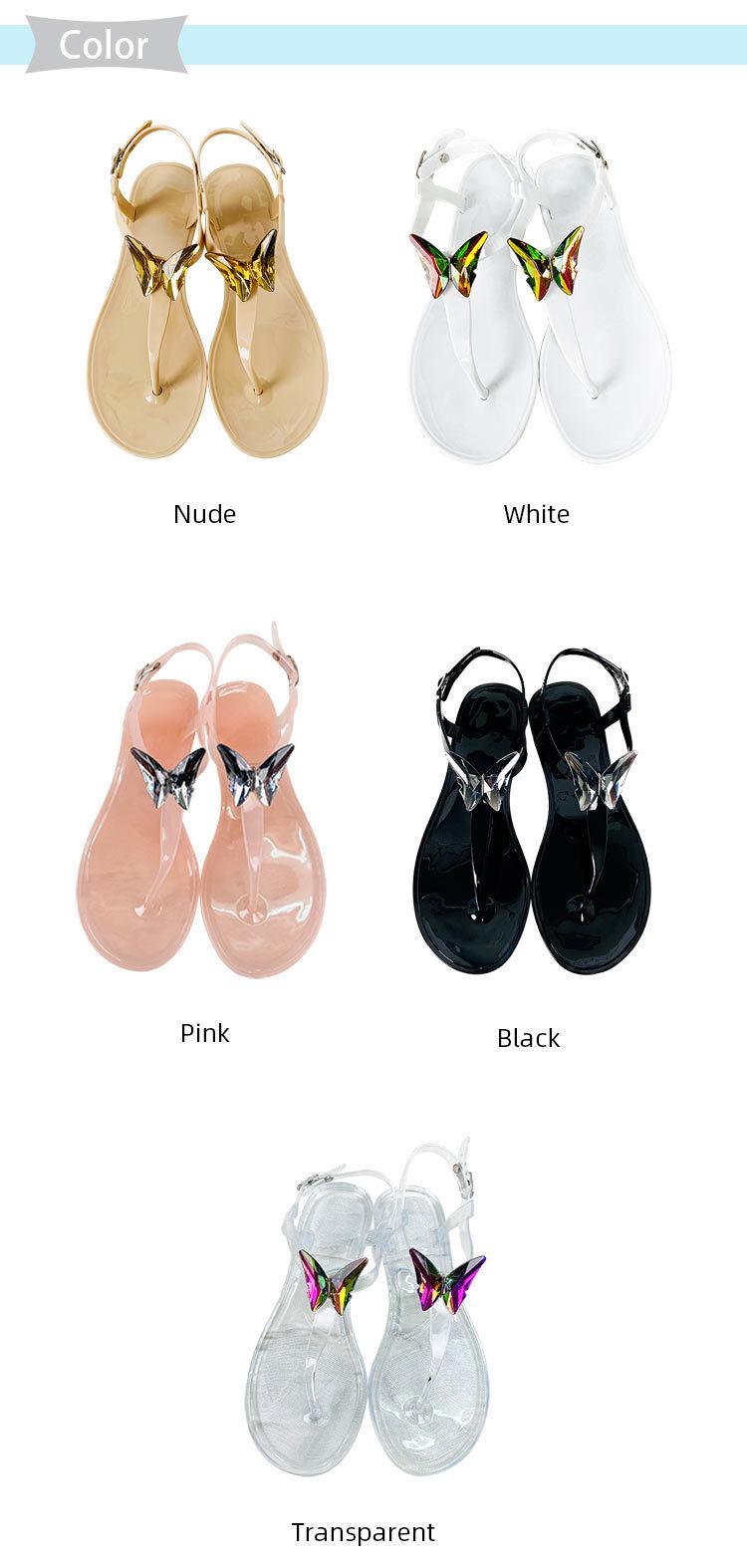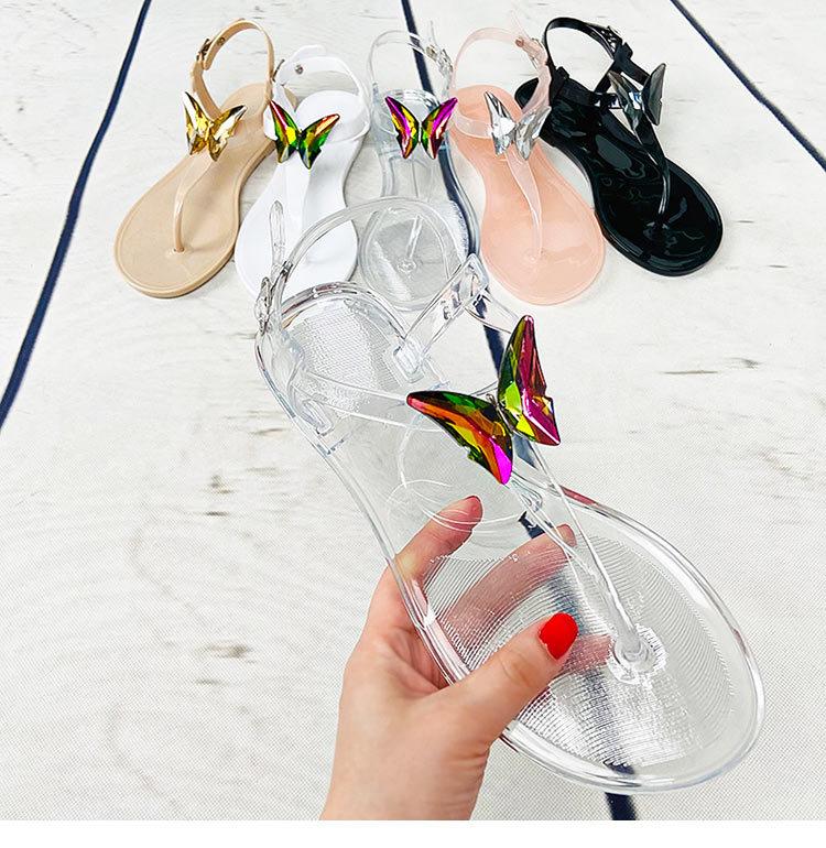 Temuy2 Sandalias Planas de Gelatina de Cristal con Diamantes y Mariposas de Verano para Mujer Mariposa Ladrillo Casual Playa Sandalias Transparentes