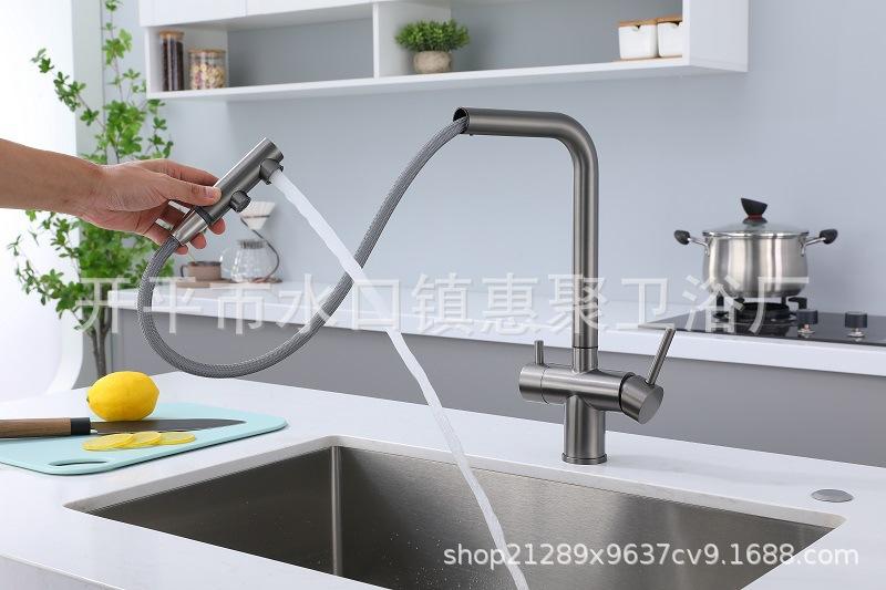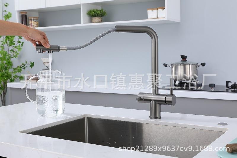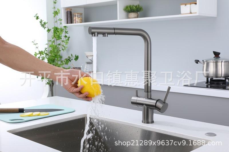 Grifo de cocina extraíble, popular en Rusia, para agua caliente y fría, tres en uno, de doble uso y agua pura.