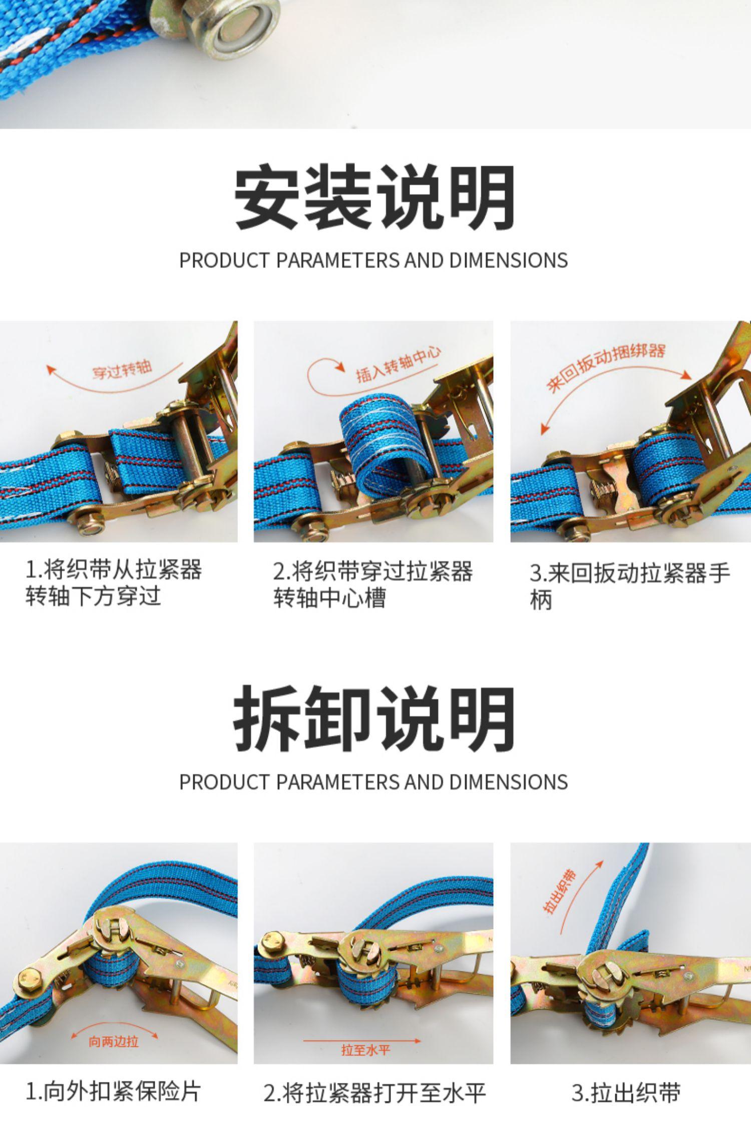 Correa de Amarre para Camión de 6 cm de Ancho Gancho de Carga Tensor Sin Gancho Tensor de Cuerda Trinquete Correa Plana de Polipropileno Fijo