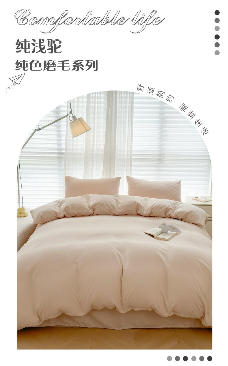 Sencillo Juego de Cuatro Piezas de Color Sólido Serie Lijada Funda de Edredón Sábana Dormitorio Individual Tres Piezas Ropa de Cama Suave Agradable a la Piel