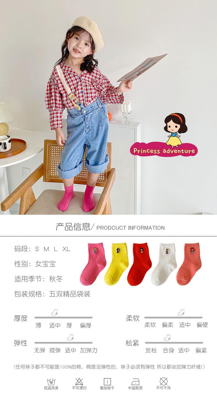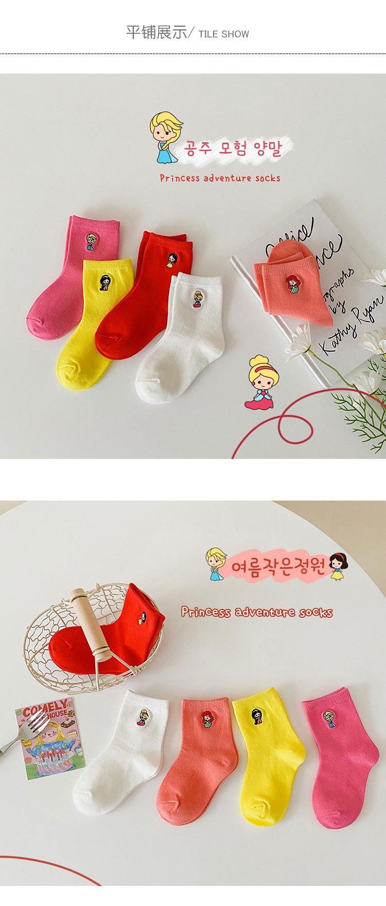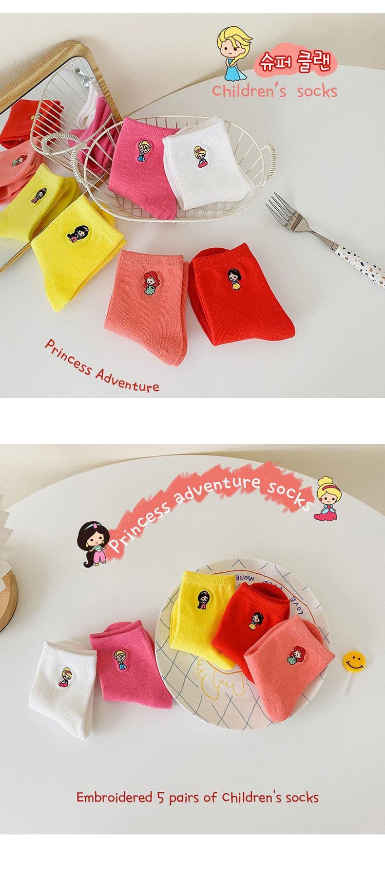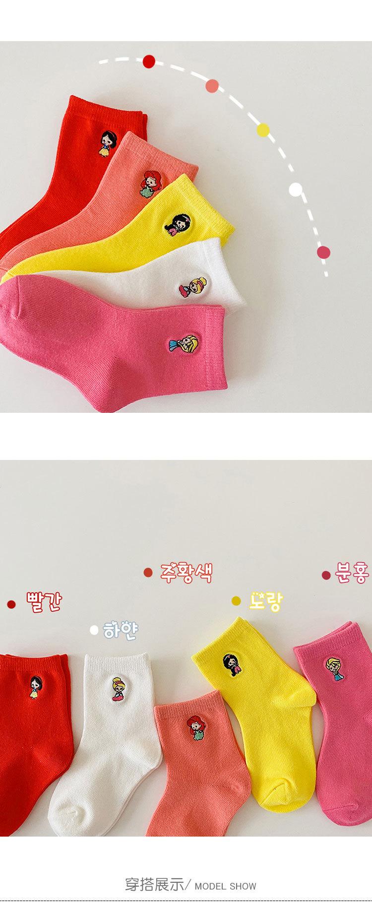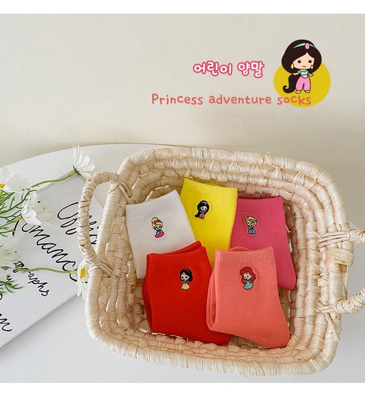 Calcetines para Niños 24 Otoño Ins Calcetines de Estudiante Bordado de Princesa Niña Dibujos Animados Cortos Algodón Súper Lindos