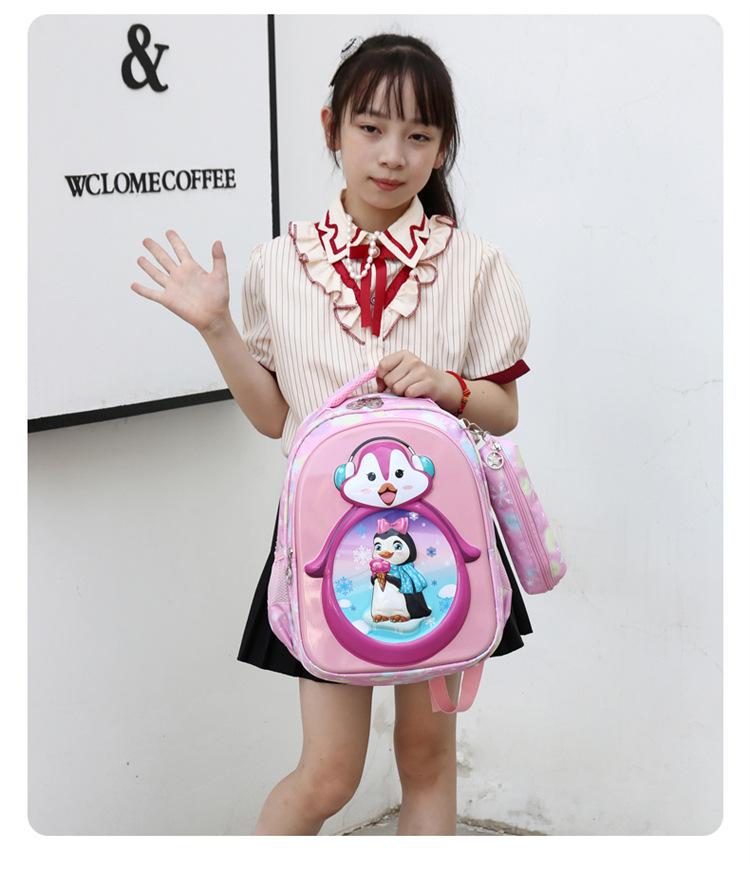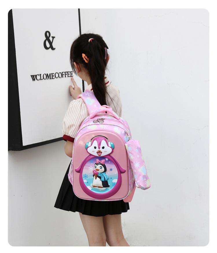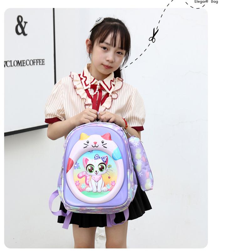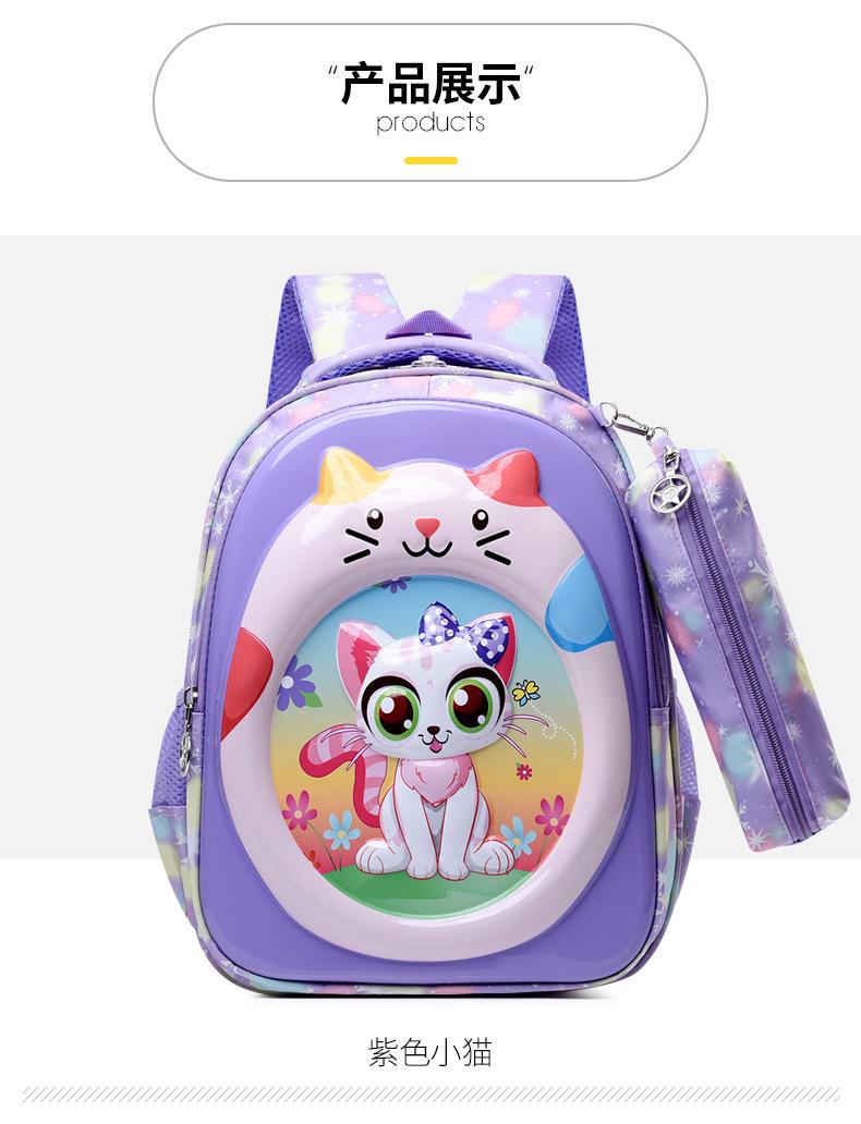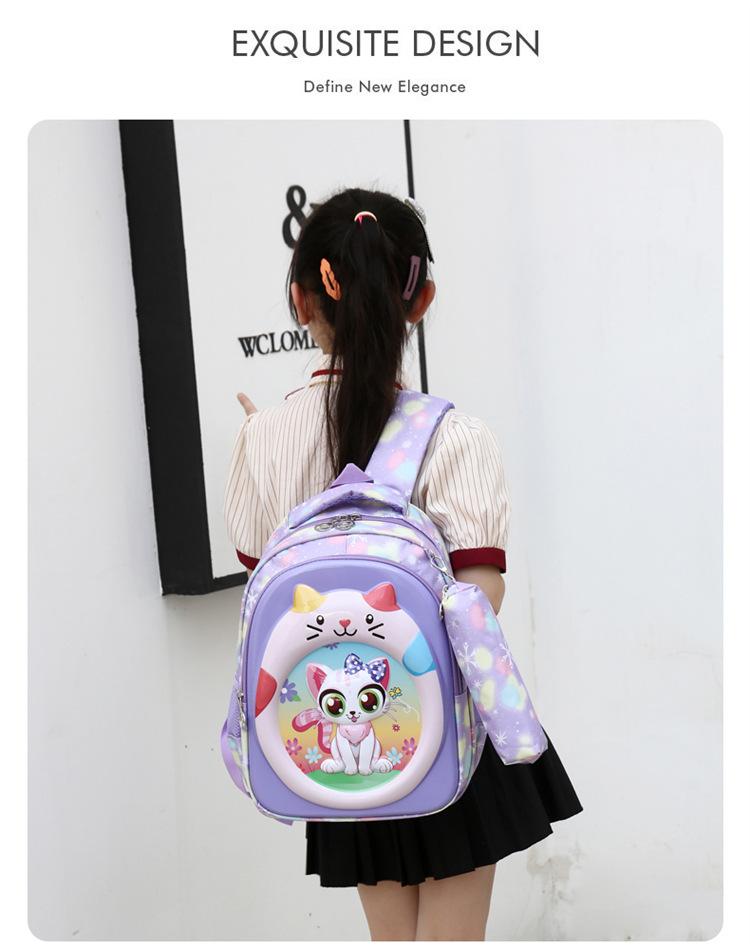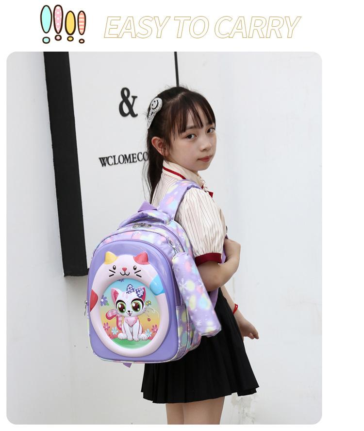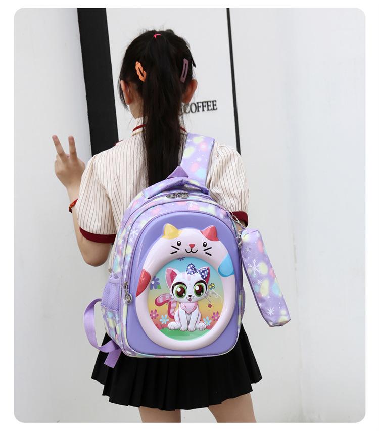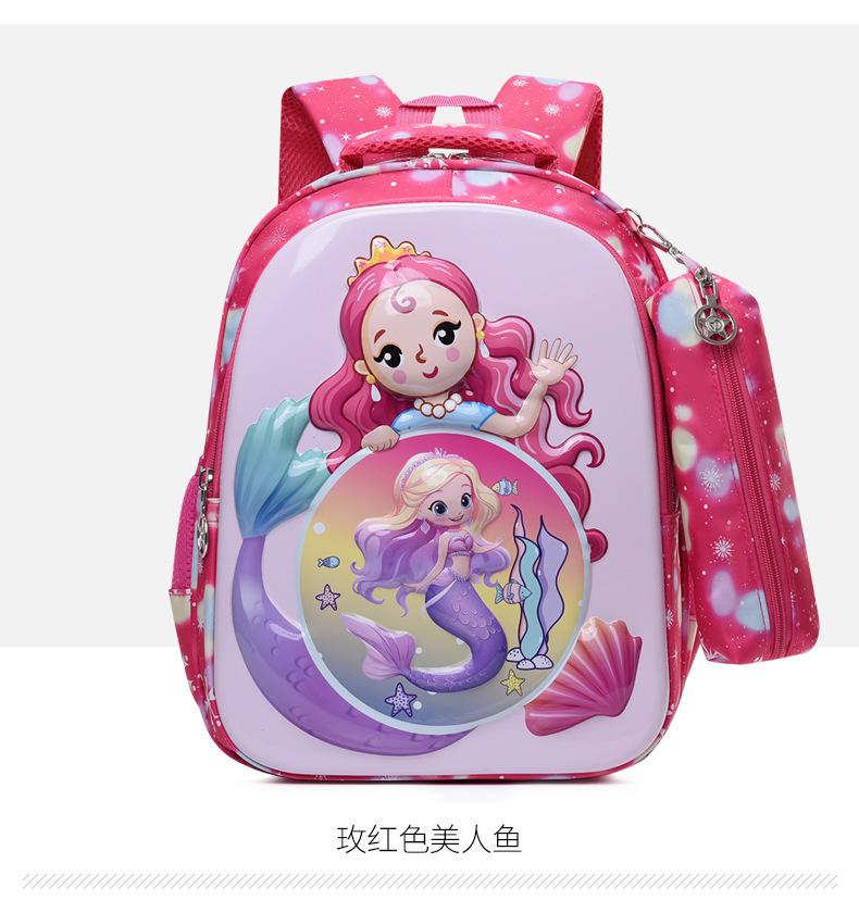 Mochila escolar para niñas, jardín de infantes, clases medias y grandes, primer y segundo grado, mochila de dibujos animados, ligera, con protección de cresta, mochila para niños con estuche para lápices