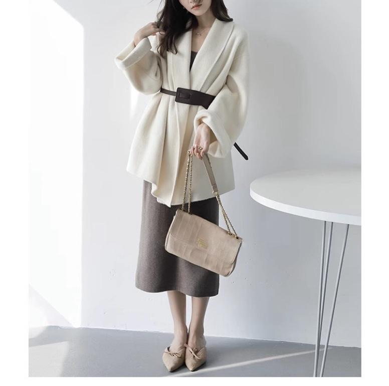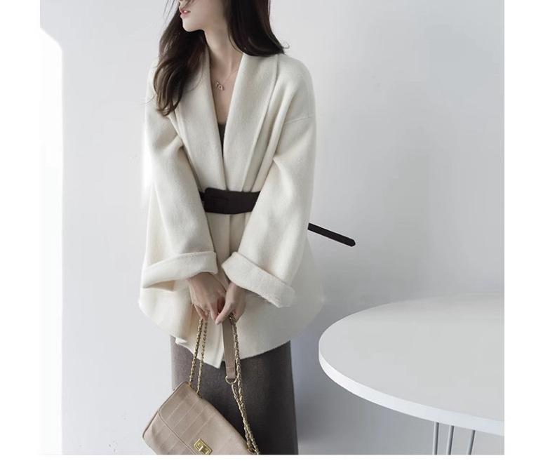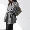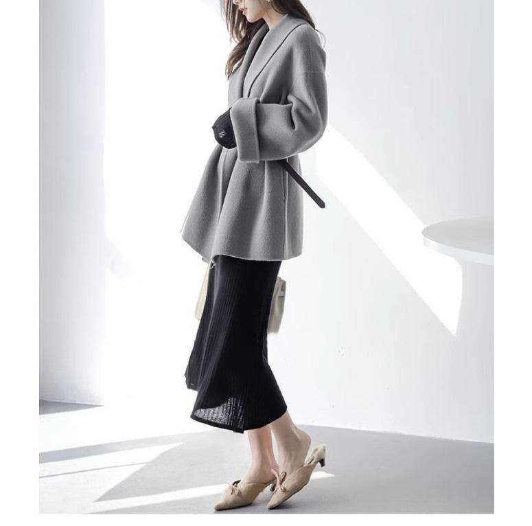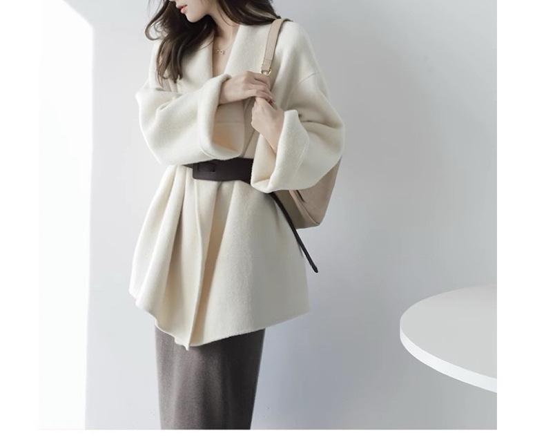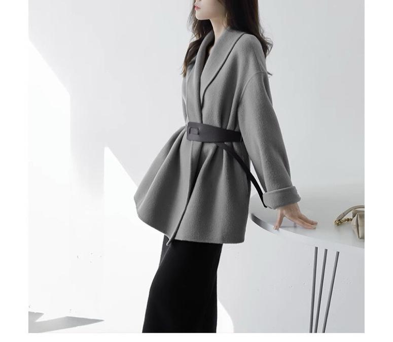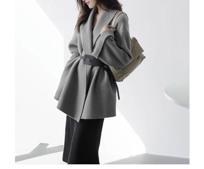 Abrigo de lana de doble cara en stock, abrigo de lana corto de temperamento invernal para mujer